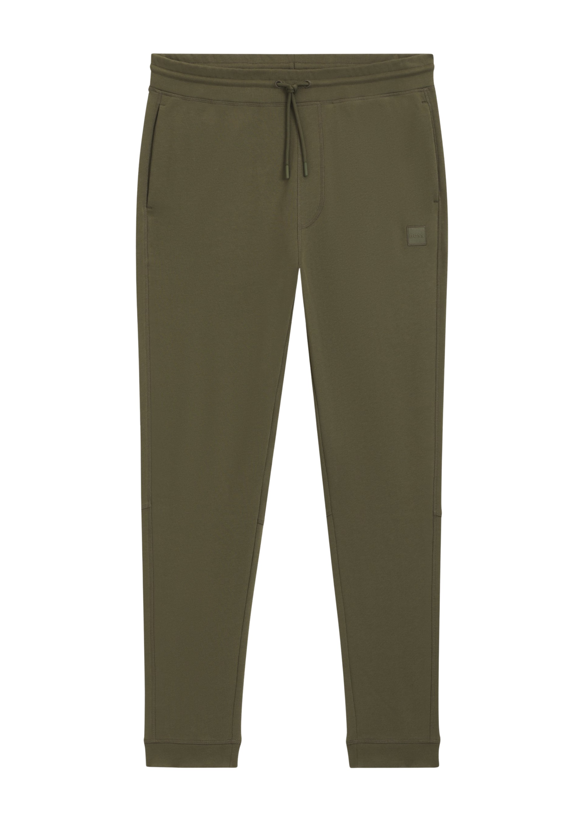 Брюки‑трёнеры BOSS из мягкого хлопкового терри, с продуманной отделкой — логотип‑патч в тон и манжеты по низу. Регулярная посадка и эластичный пояс со шнурком обеспечивают удобство и свободу движений. Универсальный крой легко сочетается с худи, свитшотами или лёгкими трикотажными свитерами BOSS, формируя расслабленный, но собранный спортивно‑городской образ.