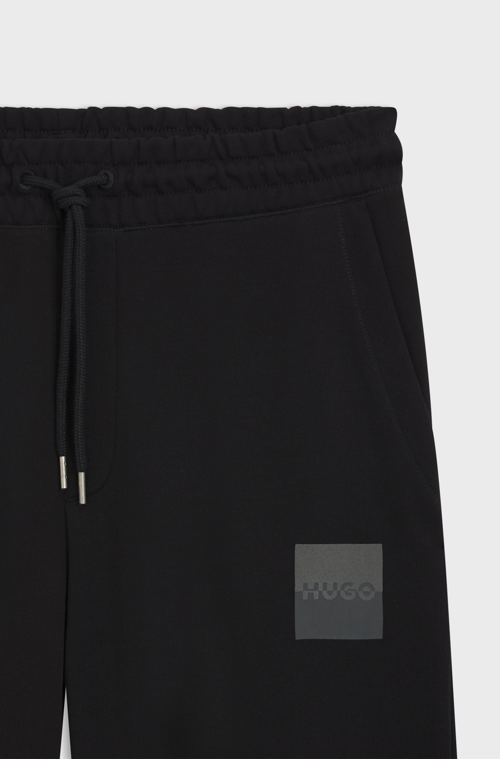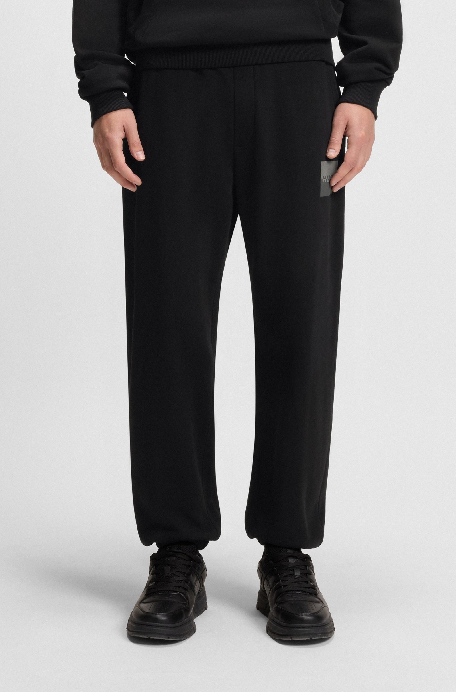 Спортивные брюки HUGO в чёрном оттенке выполнены из хлопковой махровой ткани, что обеспечивает мягкость, комфорт и естественную воздухопроницаемость. Relaxed-fit фасон с эластичным поясом и завязками позволяет регулировать посадку, а манжеты на щиколотках удерживают форму. Боковые карманы и крупный split-logo добавляют стильную динамику. Эти брюки HUGO станут идеальным выбором для повседневных образов — сочетайте с худи или футболкой для расслабленного, но аккуратного стиля.