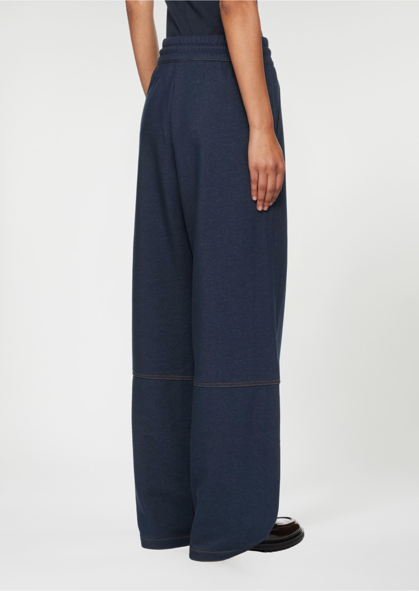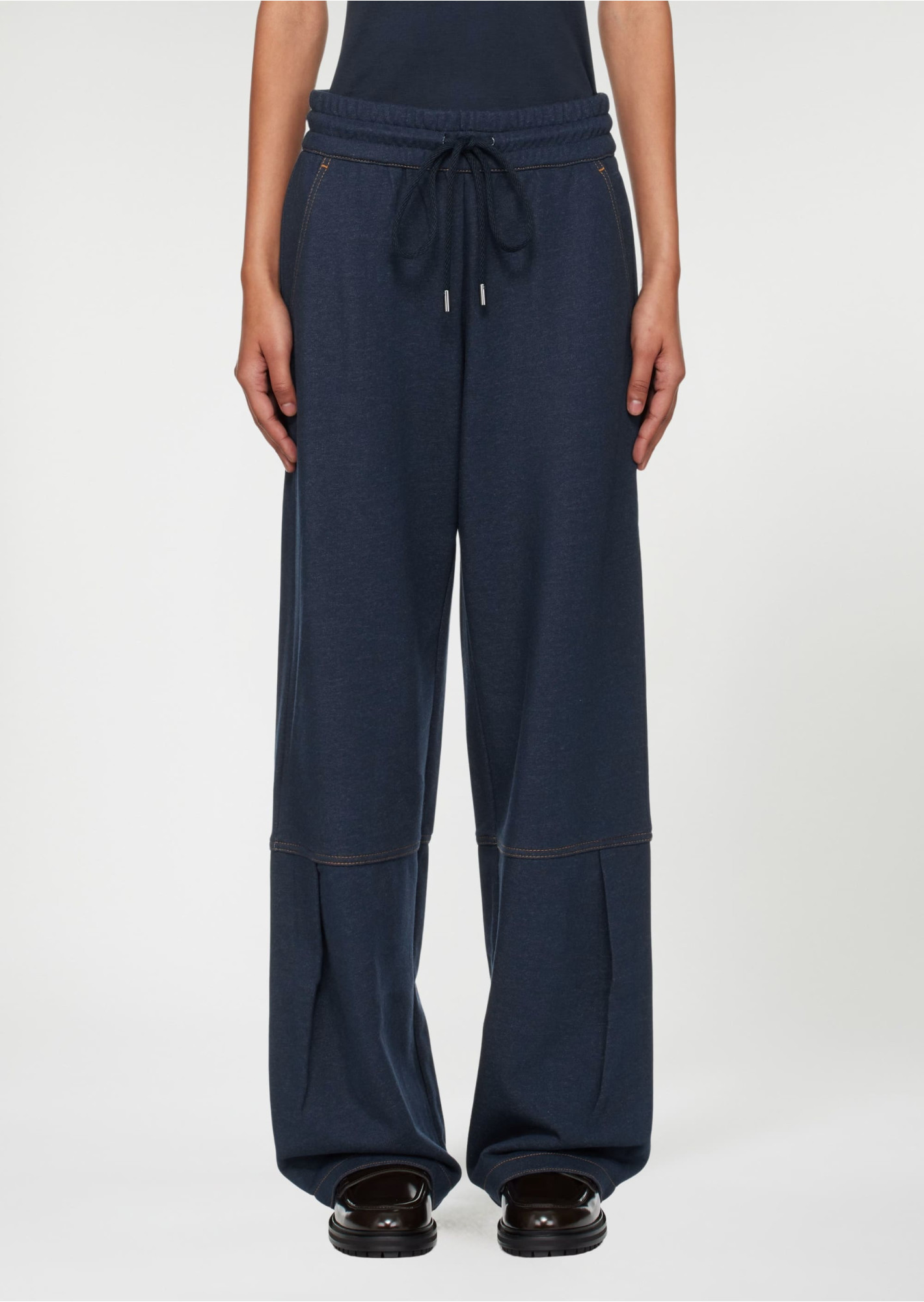 Брюки Max Mara из мягкого трикотажа обеспечивают комфорт и идеальную посадку. Прямой крой и эластичный пояс создают удобство и свободу движений. Глубокий синий оттенок подчёркивает современный стиль и универсальность модели.