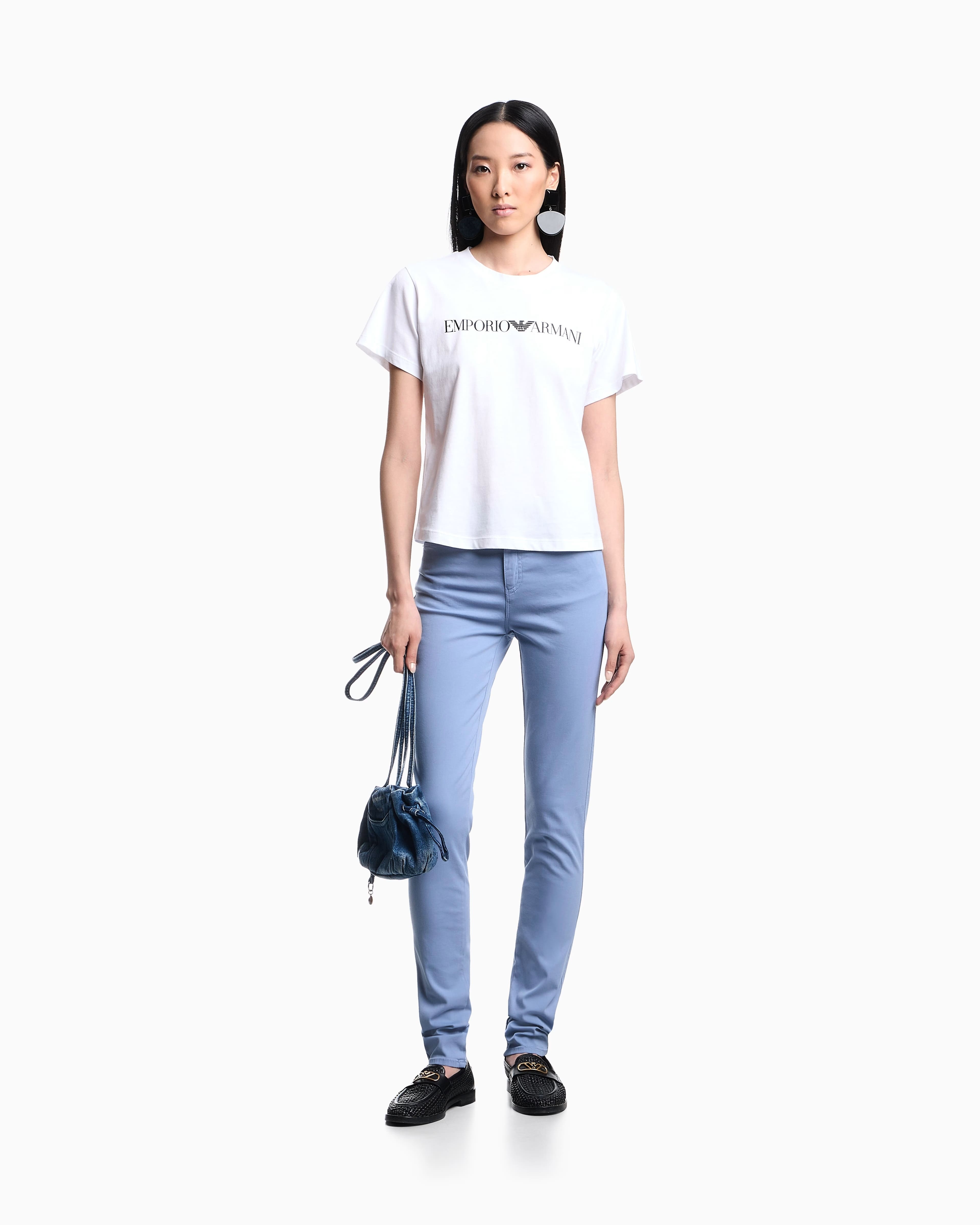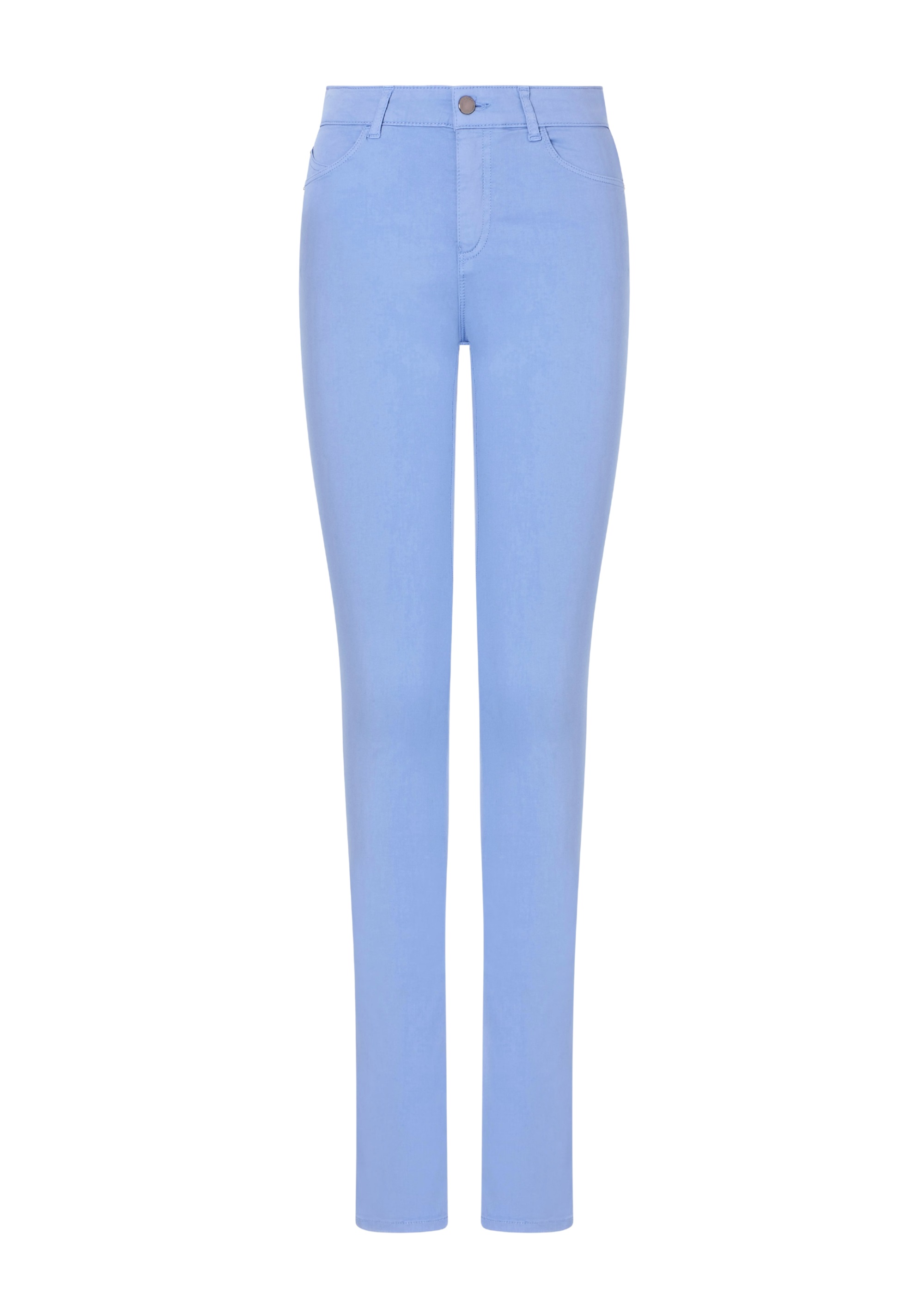 Тёмно-синие джинсы выполнены из эластичного денима с добавлением хлопка. Прямой крой, средняя посадка, классическая пятиточечная конструкция и застёжка на молнию. Лаконичный дизайн без лишнего декора подчёркивает универсальность изделия. Сочетаются с футболками, топами, сорочками и жакетами. Подходят для повседневных, городских и кэжуальных образов.