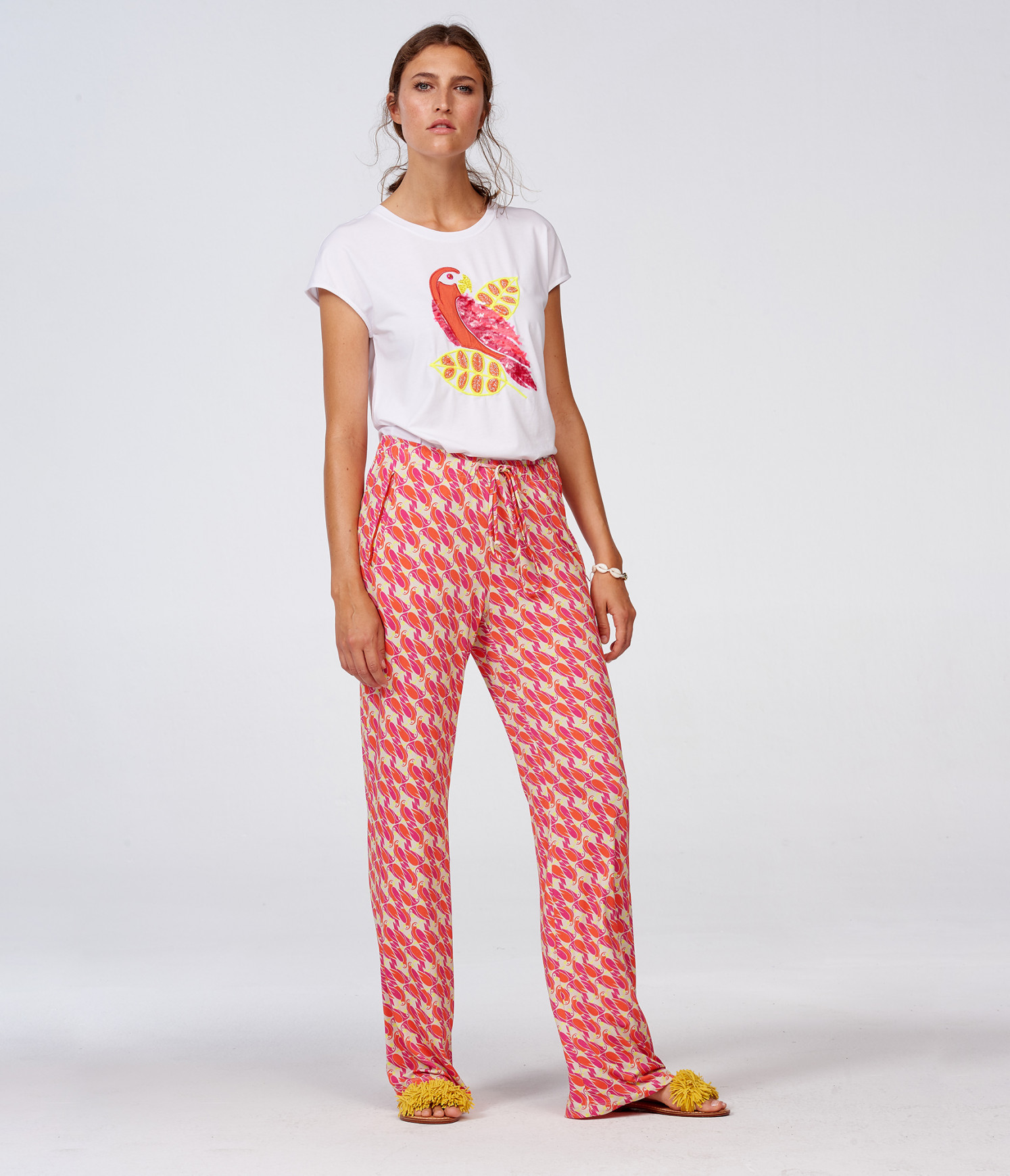 Брюки Laurel с ярким принтом из высококачественного материала с лёгкой текстурой. Модель с классическим прямым кроем и средней посадкой обеспечивает комфорт и свободу движений. Идеально сочетаются с рубашками, блузами и жакетами светлых оттенков, создавая стильный летний образ.