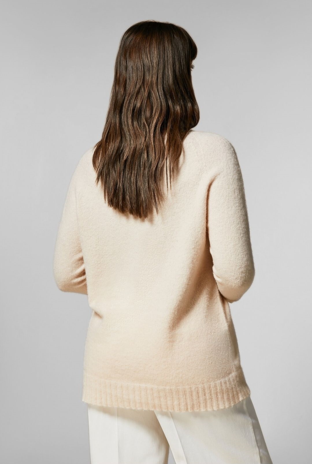Джемпер прямого кроя из эластичной смесовой альпаки простой вязки. Широкий круглый вырез горловины, длинные рукава реглан, отделка в рубчик. Это изделие является частью коллекции Marina Sport.