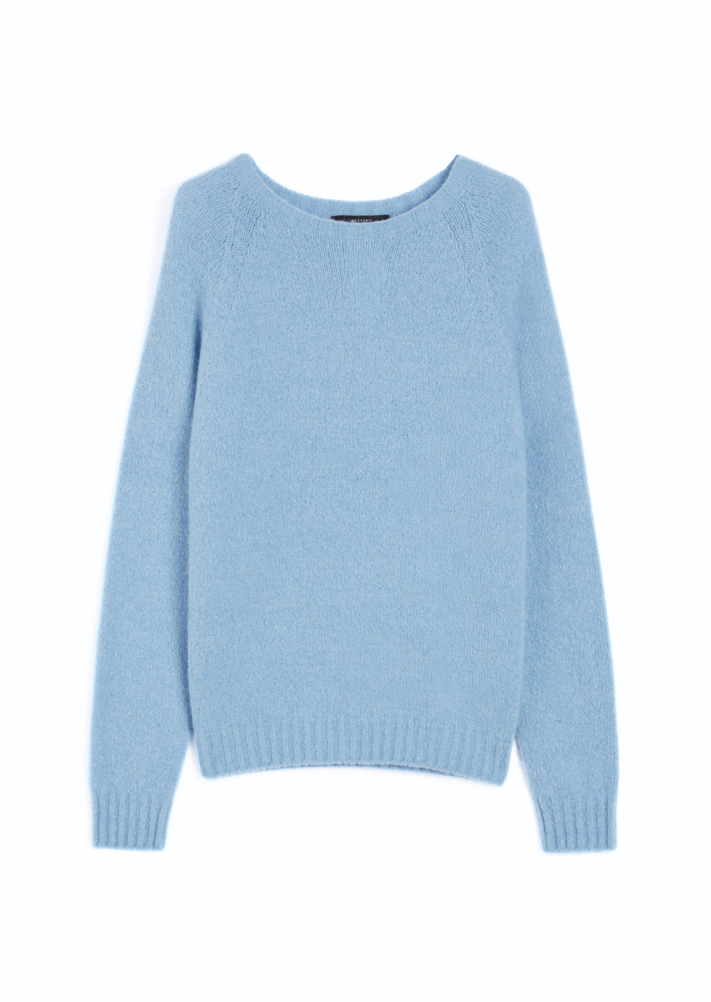 Голубой джемпер Weekend Max Mara из пряжи с альпакой и хлопком. Мягкий и тактильно приятный, он выполнен в расслабленном крое с круглым вырезом и длинными рукавами-реглан, что придаёт образу непринуждённость. Средняя длина делает модель универсальной для многослойных сочетаний. Изделие гармонирует с джинсами, брюками из шерсти и юбками прямого кроя. Этот свитер — воплощение повседневной мягкости и лаконичного стиля Weekend Max Mara, созданного для комфорта в деталях.