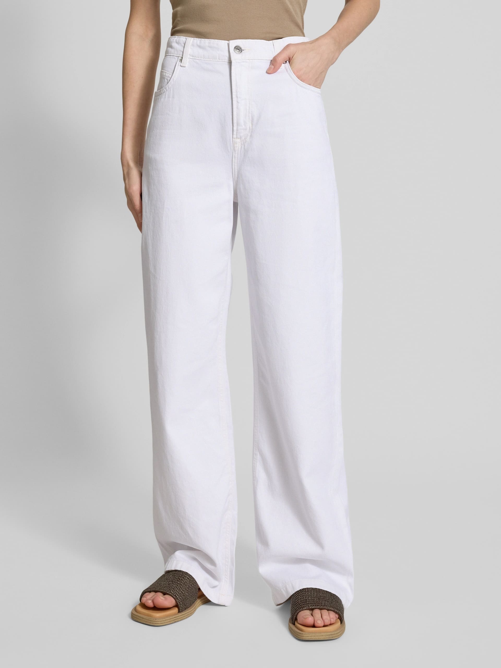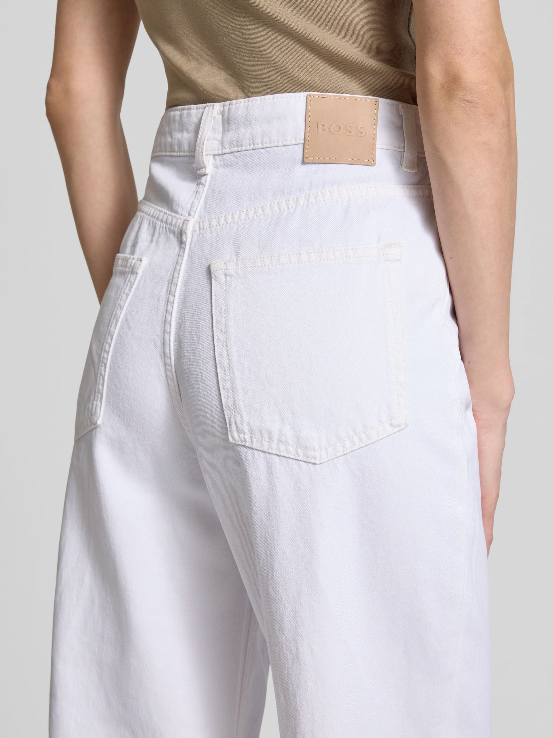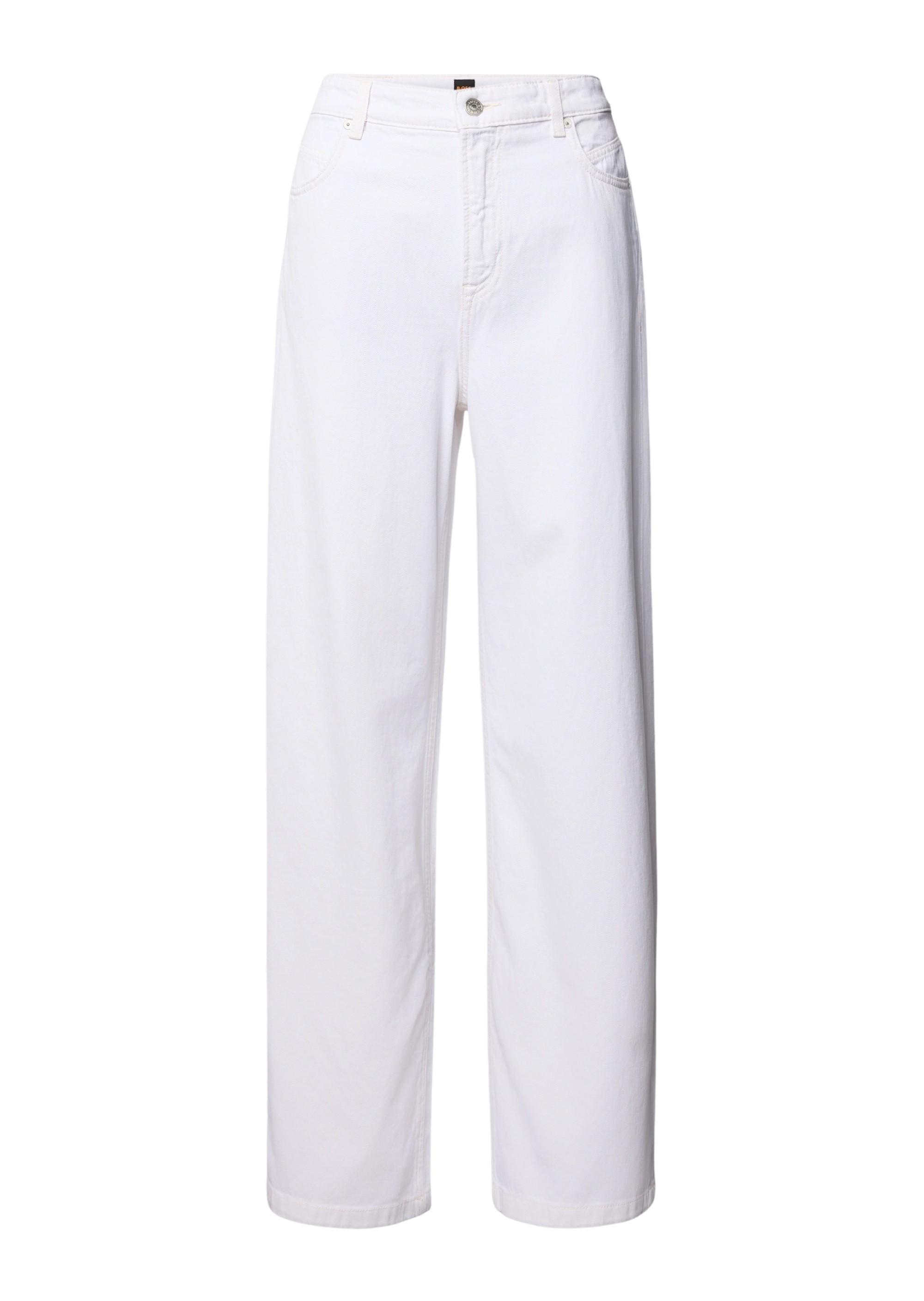 Джинсы BOSS из плотного хлопкового денима с добавлением эластана обеспечивают комфорт и износостойкость. Классический прямой крой с традиционной посадкой создает чистый и аккуратный силуэт. Белый цвет придает изделию свежесть и универсальность для разнообразных образов. Сочетаются с рубашками и легкими жакетами в стиле смарт-кэжуал, формируя элегантные повседневные комплекты. Идеальное сочетание комфорта и современного стиля для обновления гардероба.