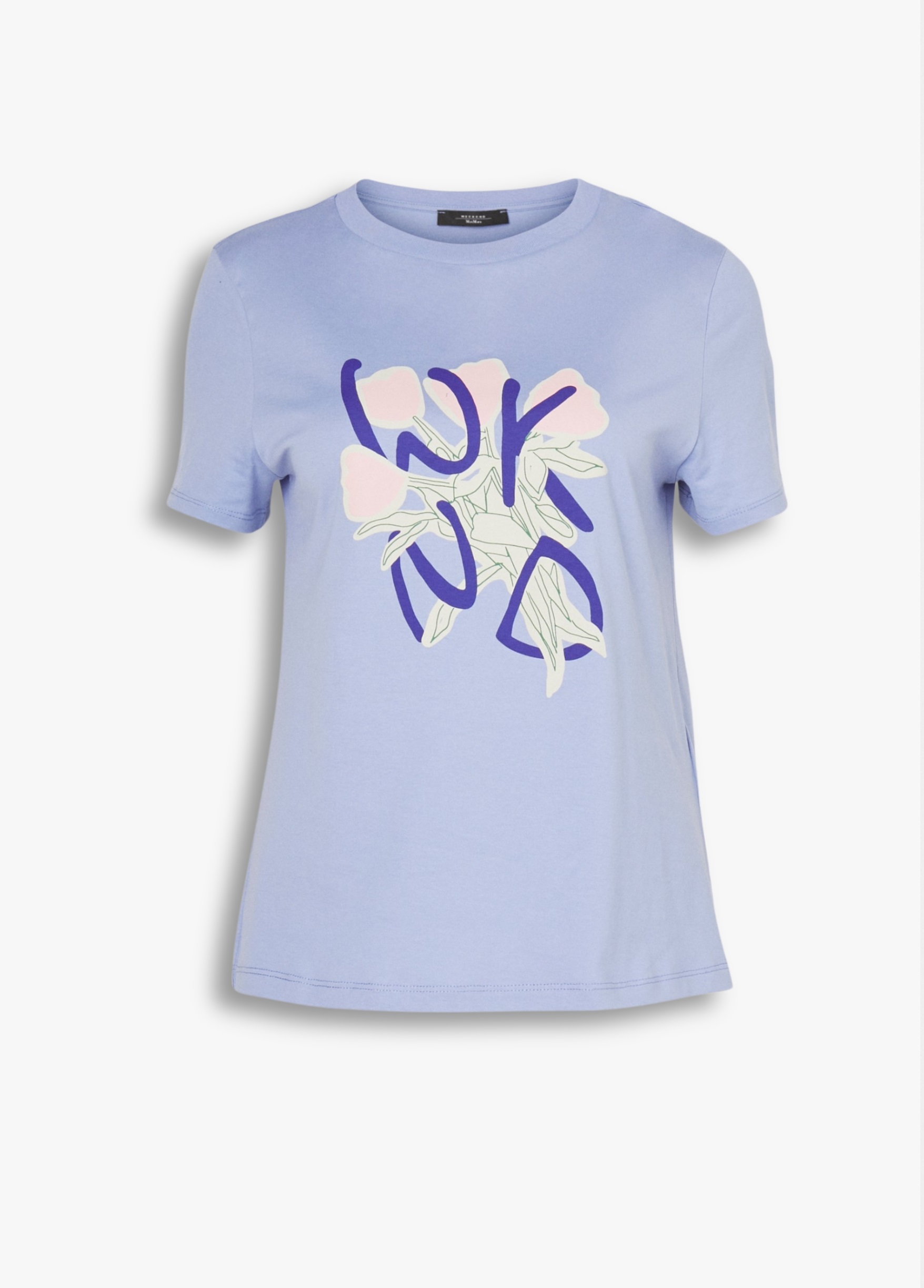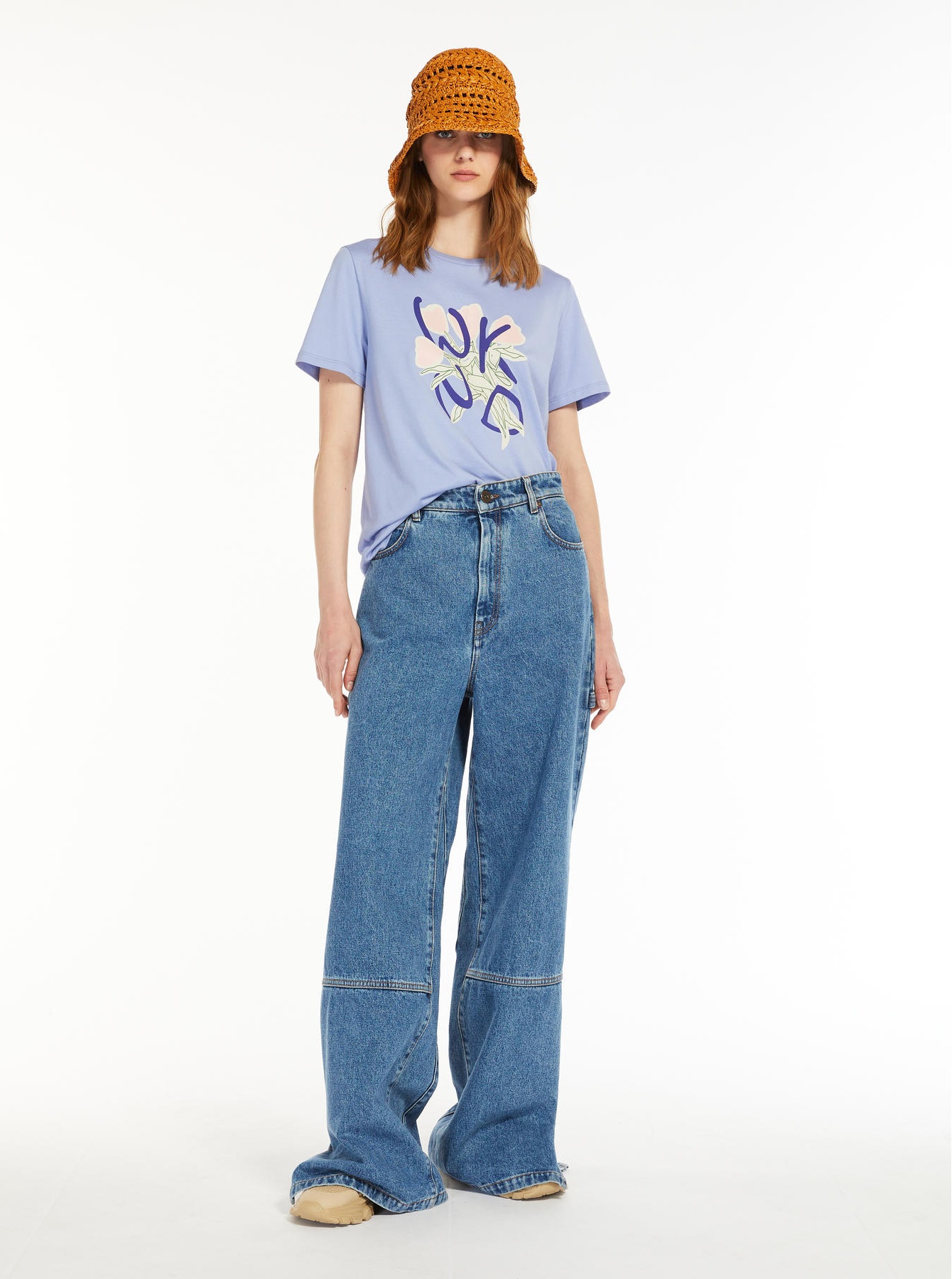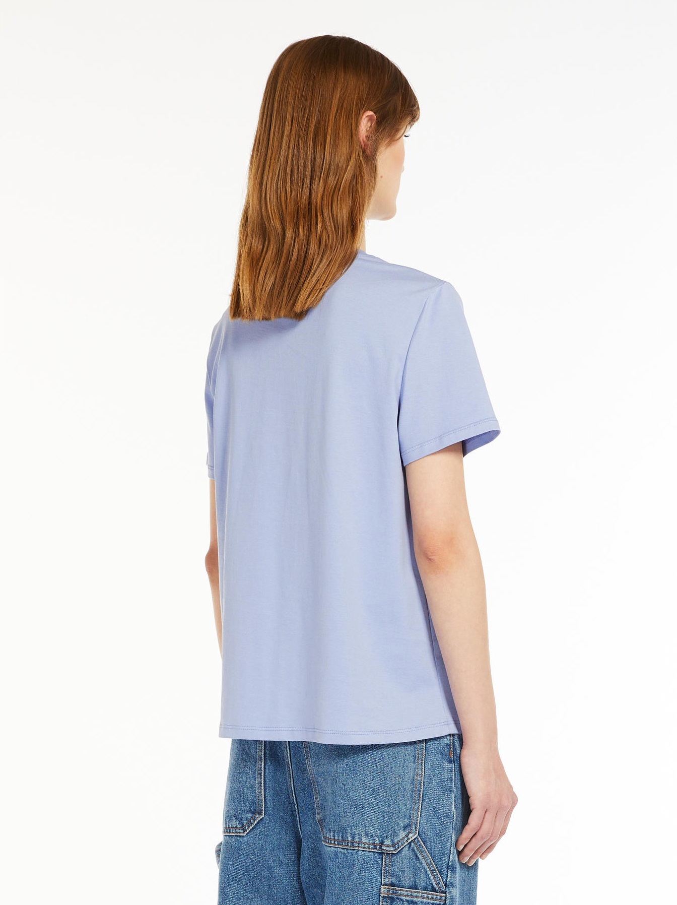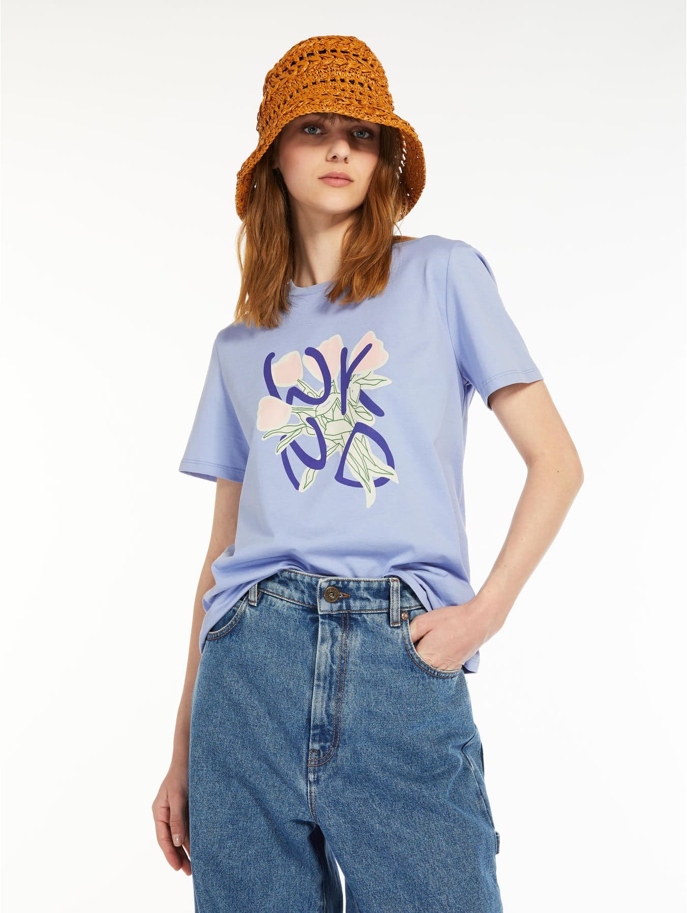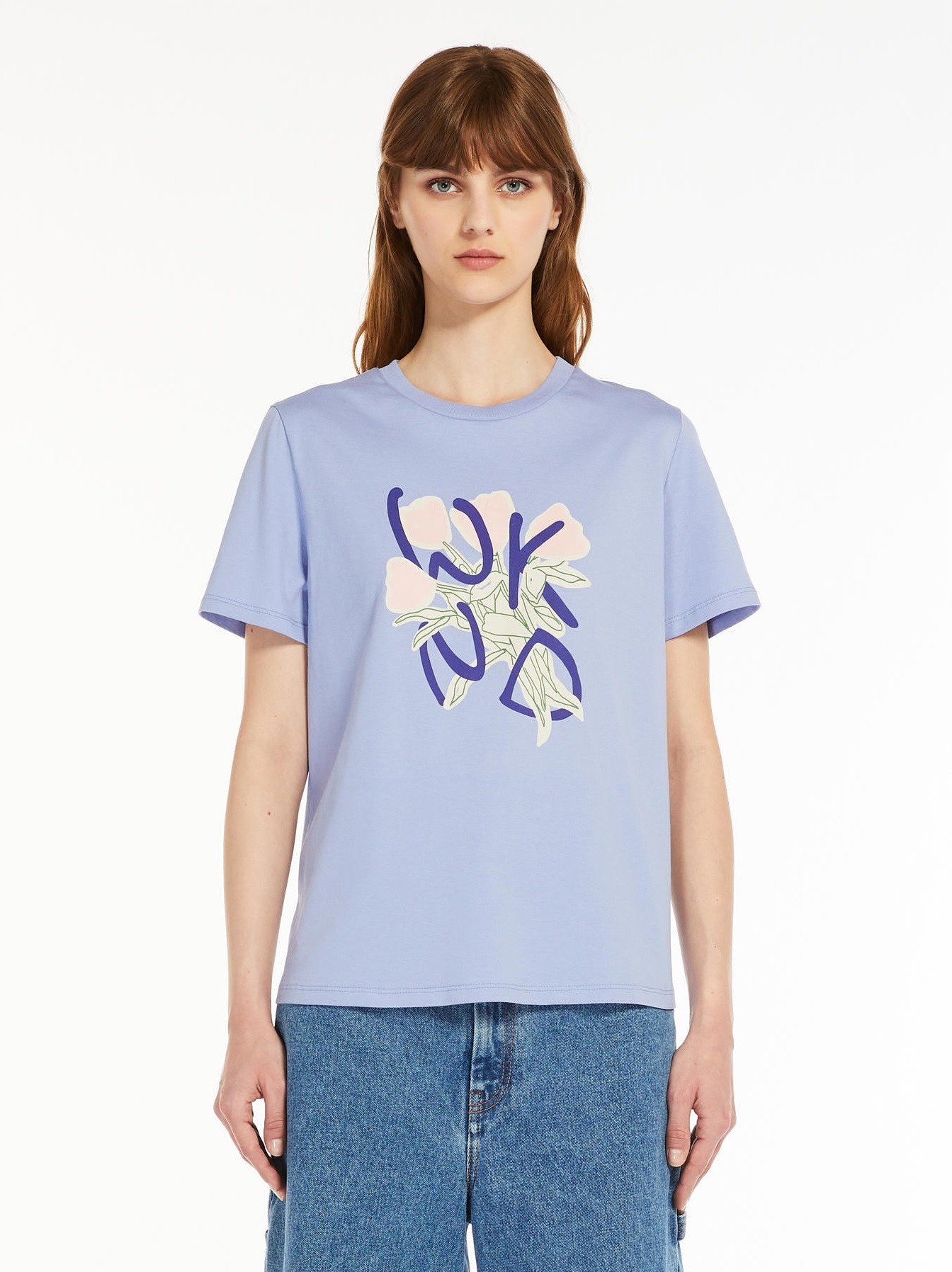 Футболка с короткими рукавами из мягкого хлопкового трикотажа. Базовая модель прямого кроя имеет вышитый принт спереди и принт логотипа на задней части горловины