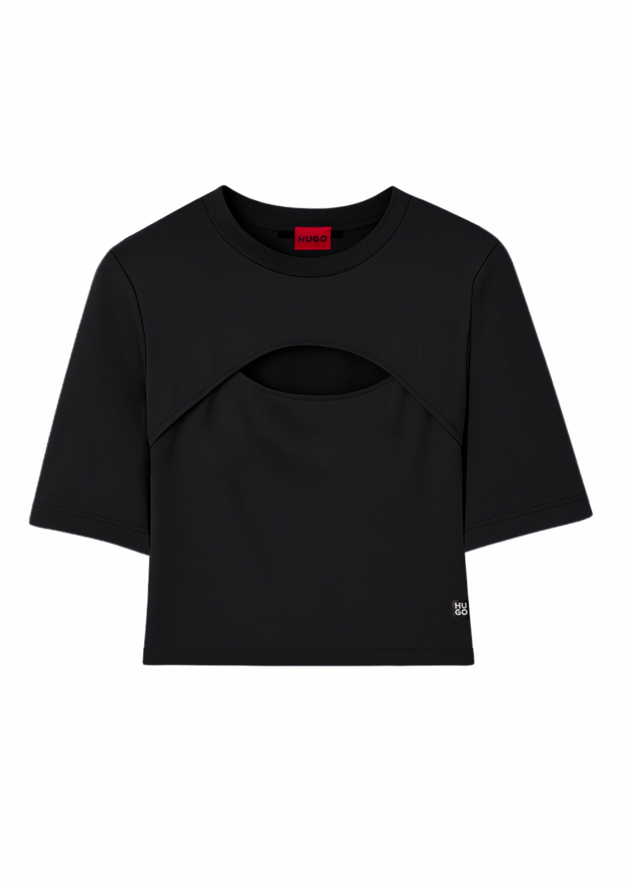 Женская укороченная футболка HUGO в черном цвете – современная интерпретация базового элемента гардероба. Модель изготовлена из мягкой хлопковой ткани с добавлением эластана, что обеспечивает комфортную посадку и приятное чувство на теле. Короткий крой, полуприлегающий силуэт и вырез придают образу легкой дерзости и женственности. Стильная нашивка с логотипом HUGO – акцент, подчеркивающий фирменную эстетику бренда. Футболка легко комбинируется с денимом, спортивными брюками или юбками с высокой посадкой – как для повседневного обихода, так и для стильных streetstyle-выходов. Идеальный выбор для тех, кто ценит сочетание минимализма, комфорта и трендового кроя.