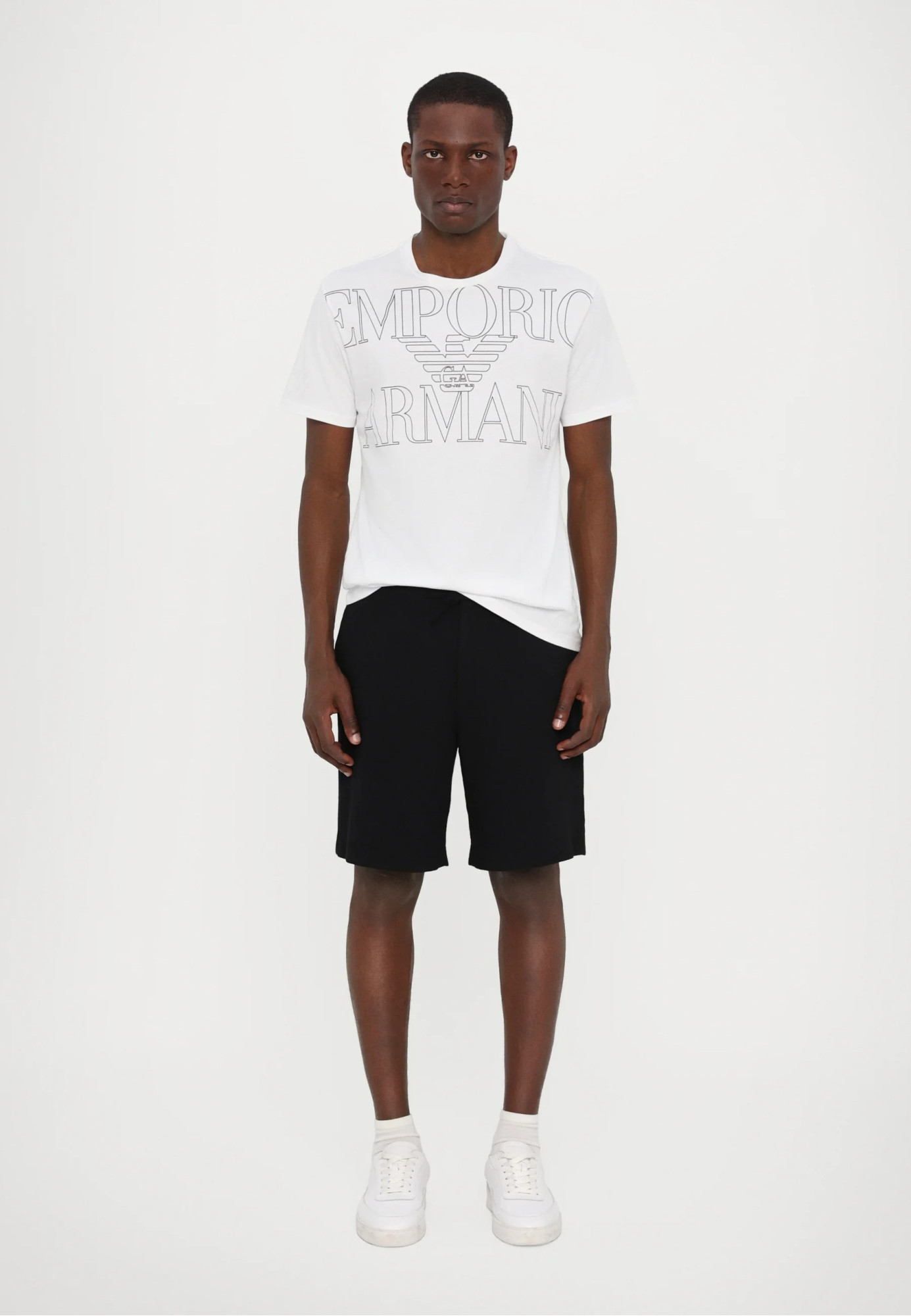 Пляжная футболка Emporio Armani выполнена из мягкого и лёгкого хлопка, обеспечивая комфорт даже в жаркую погоду. Белый цвет подчёркивает свежесть и универсальность изделия. Классический крой с короткими рукавами и круглым вырезом дополнен крупным логотипом бренда спереди. Сочетается с плавками-шортами, льняными брюками или спортивными шортами. Идеальна для пляжного отдыха и неформальных летних образов.