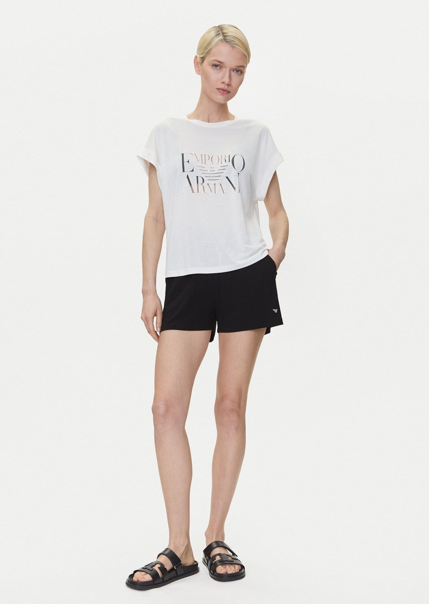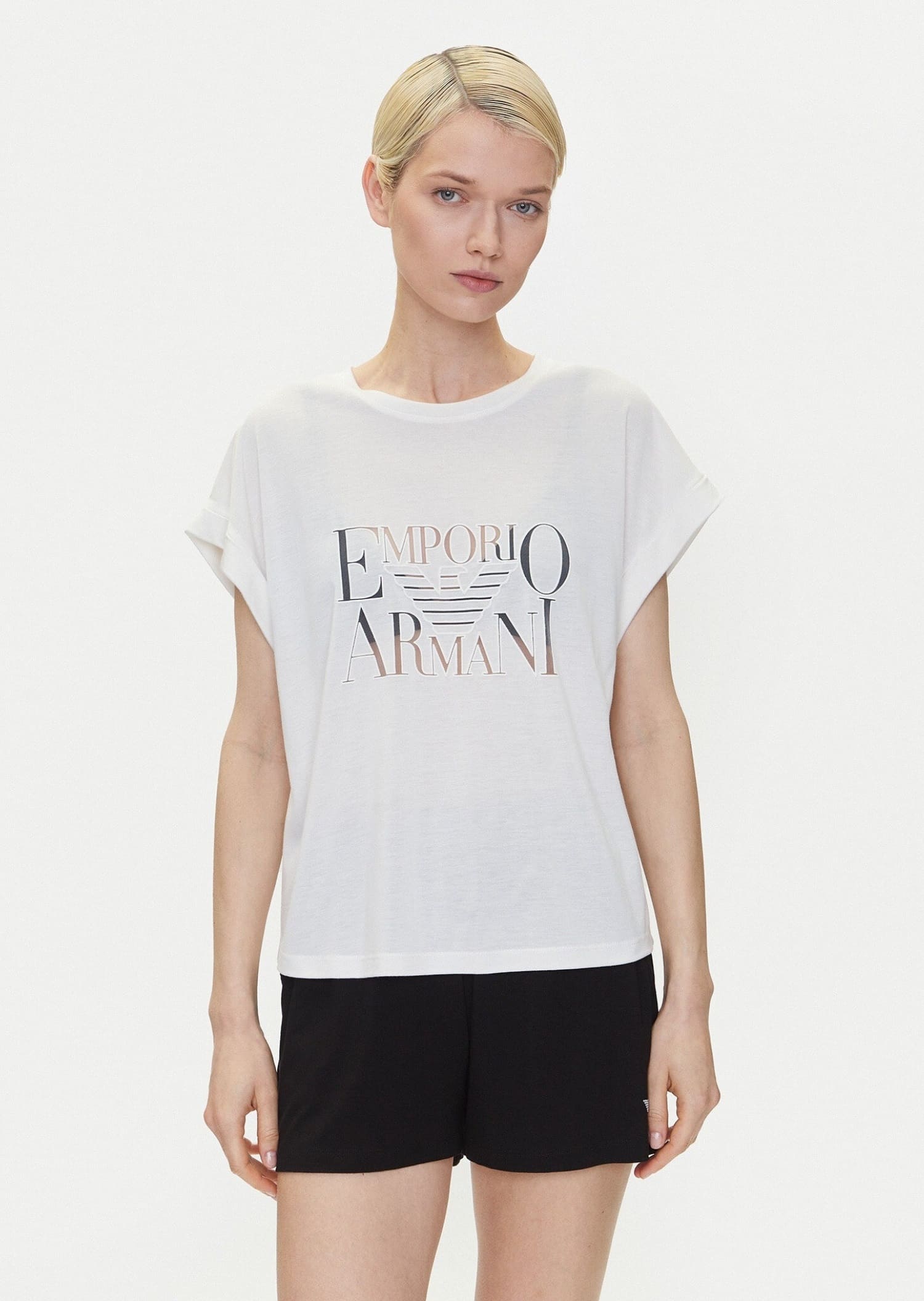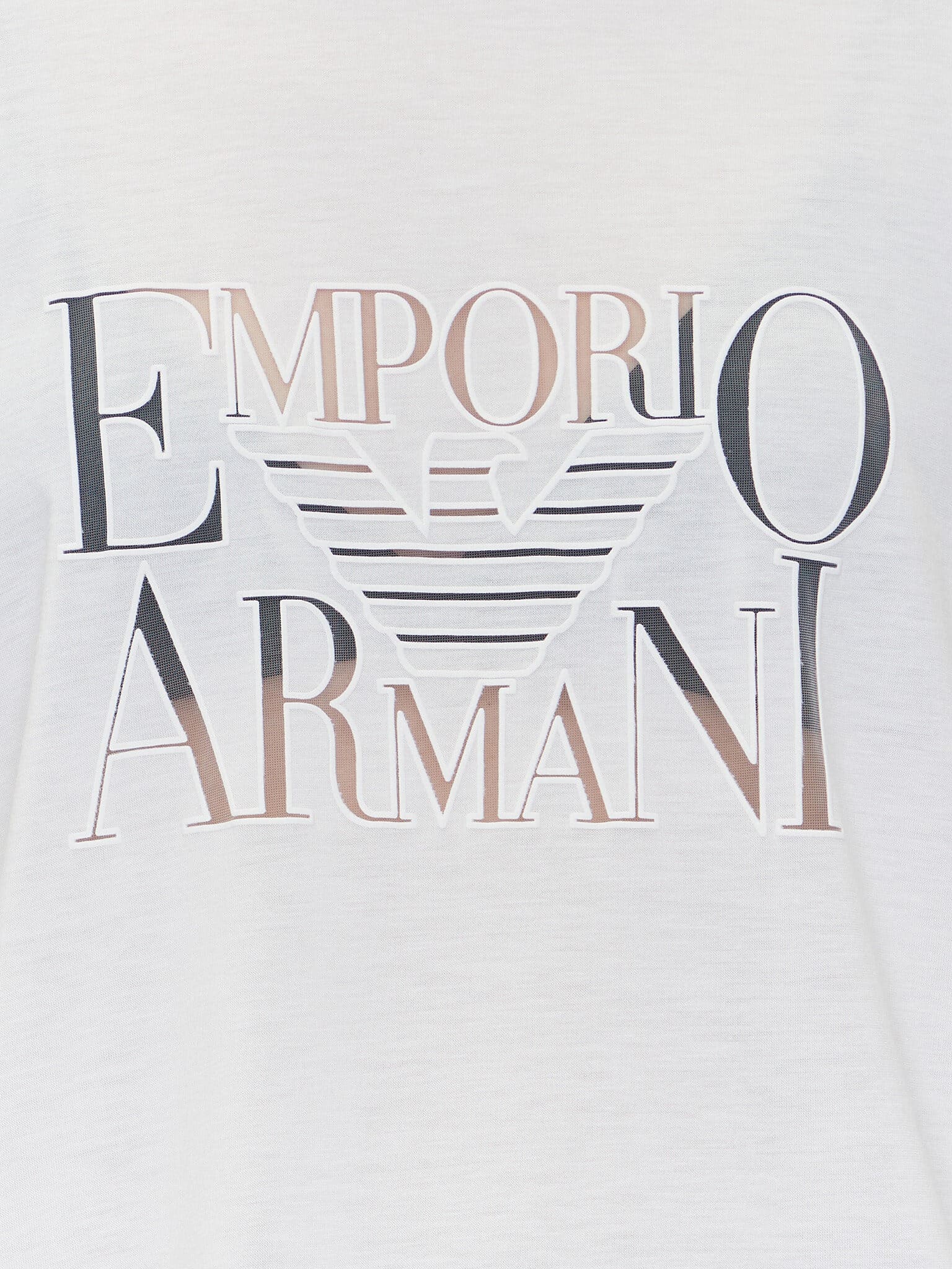 Пляжная футболка Emporio Armani в белом цвете — идеальный выбор для жарких летних дней. Легкий и дышащий материал обеспечивает комфорт, а свободный крой придает изделию легкость и непринужденность. Круглый вырез и короткие рукава делают футболку универсальной для любого пляжного гардероба. Логотип бренда на груди добавляет элегантный акцент. Белый цвет позволяет легко сочетать футболку с различными элементами пляжного и повседневного стиля, создавая свежий и стильный образ. Эта футболка — отличное дополнение к летнему гардеробу, идеально сочетается с шортами, брюками или купальником.