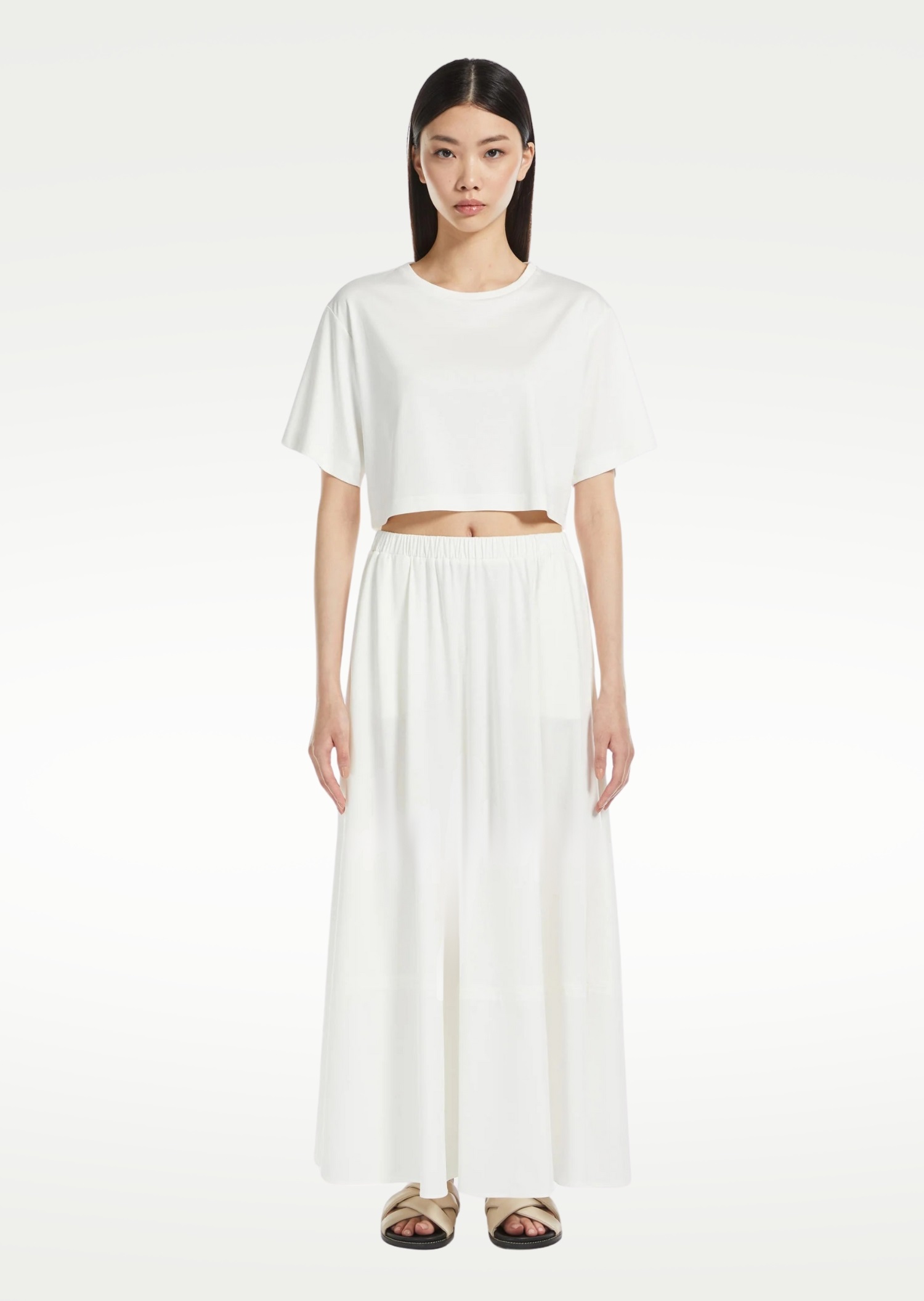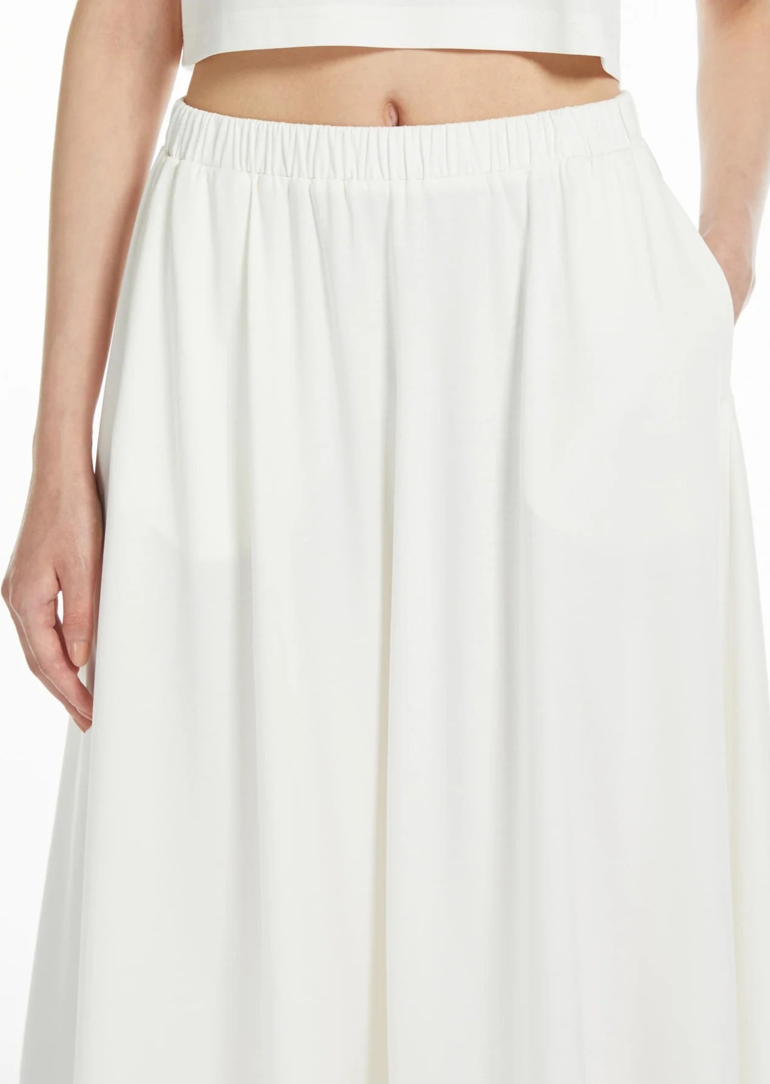 Прямая юбка изо льна с разрезом спереди и скрытой застёжкой на молнию. Лаконичный силуэт подчёркивается натуральной фактурой ткани, создающей ощущение лёгкости. Классический белый цвет сочетается с рубашками, топами или жакетами в нейтральной палитре. Подходит для летнего делового гардероба, городских образов и повседневной элегантности.