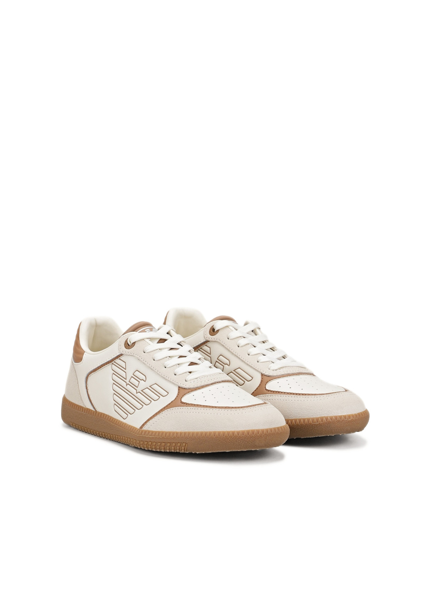 Женские кеды EA7 Emporio Armani в бежевом оттенке выполнены из натуральной кожи с мягкой фактурой, которая подчёркивает премиальное качество материала. Современный силуэт с лаконичными линиями дополнен прочной подошвой, обеспечивающей комфорт и долговечность в повседневной носке. Нейтральный беж легко вписывается в базовый гардероб и гармонично сочетается с джинсами, брюками и лёгкими спортивными ансамблями. Эта пара EA7 Emporio Armani становится стильным акцентом образа, объединяя практичность и актуальный спортивный характер бренда.