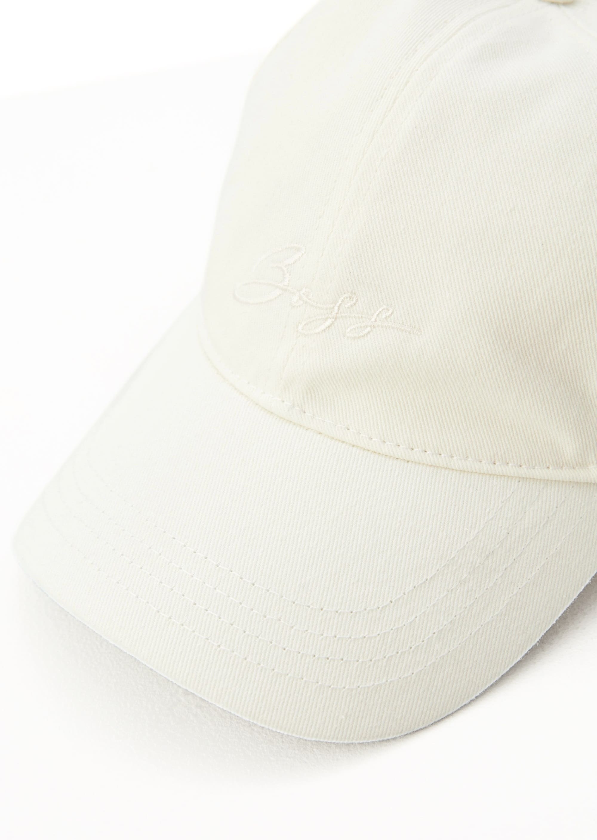 Кепка BOSS из хлопкового габардина в белом цвете. Классическая форма с изогнутым козырьком, шести панелями, люверсами и регулируемой застёжкой. Вышитый логотип спереди подчёркивает чистый и аккуратный силуэт. Уместна в повседневных образах, в поездках и в рамках неформального гардероба. Актуальный аксессуар в стиле смарт-кежуал.