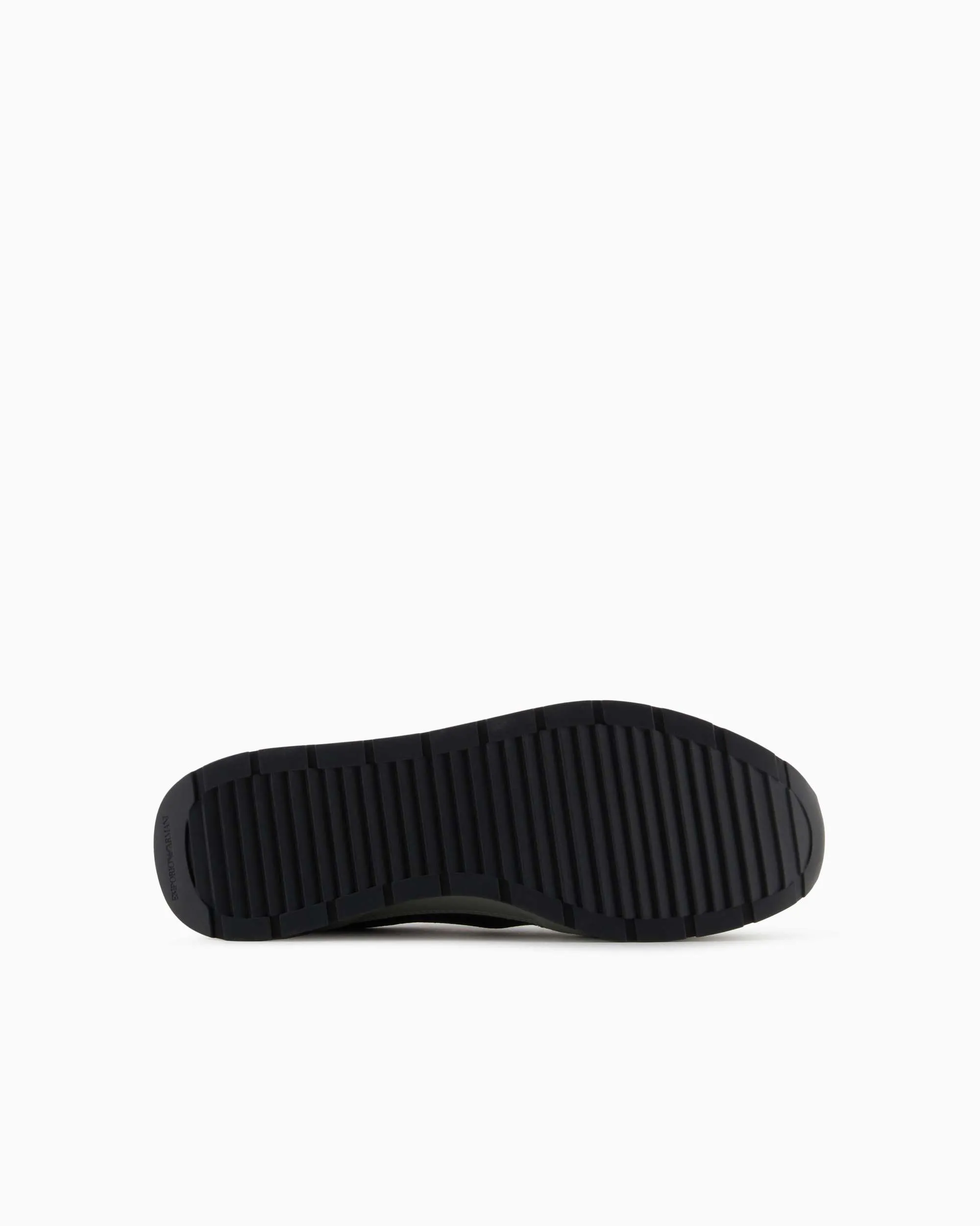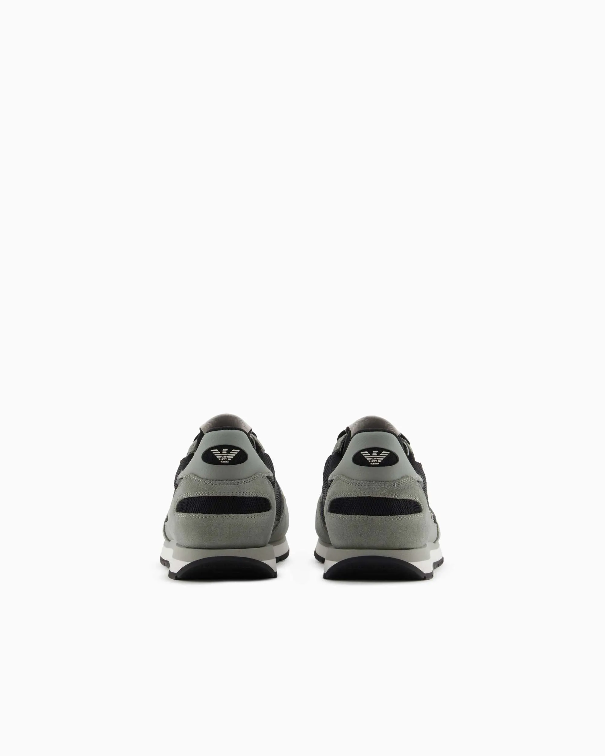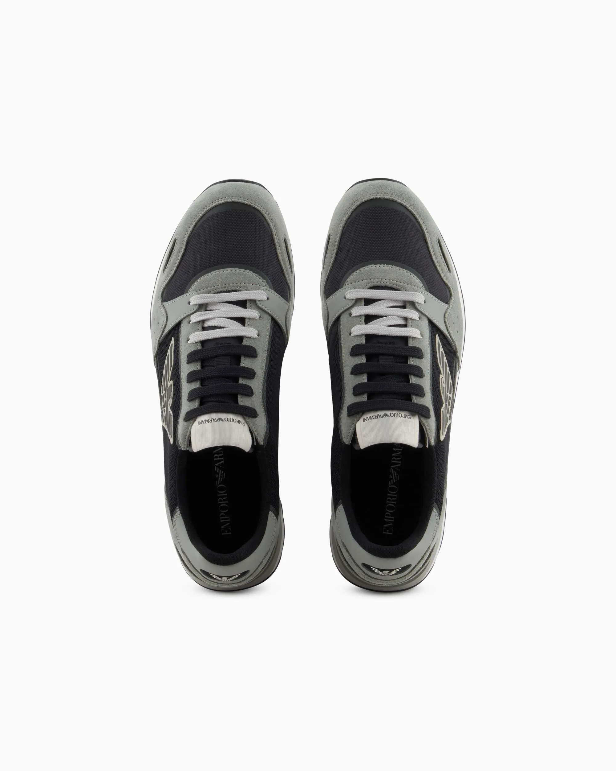 Кроссовки из сетки и замши, со шнуровкой и логотипом сзади. Боковая нашивка с большим орлом Emporio Armani. Подошва изготовлена из 100% резины с индивидуальным протектором. Благодаря экспертному сочетанию материалов эти многофактурные кроссовки имеют смелый, современный стиль. Обувь добавляет непринужденную привлекательность классическим образам.