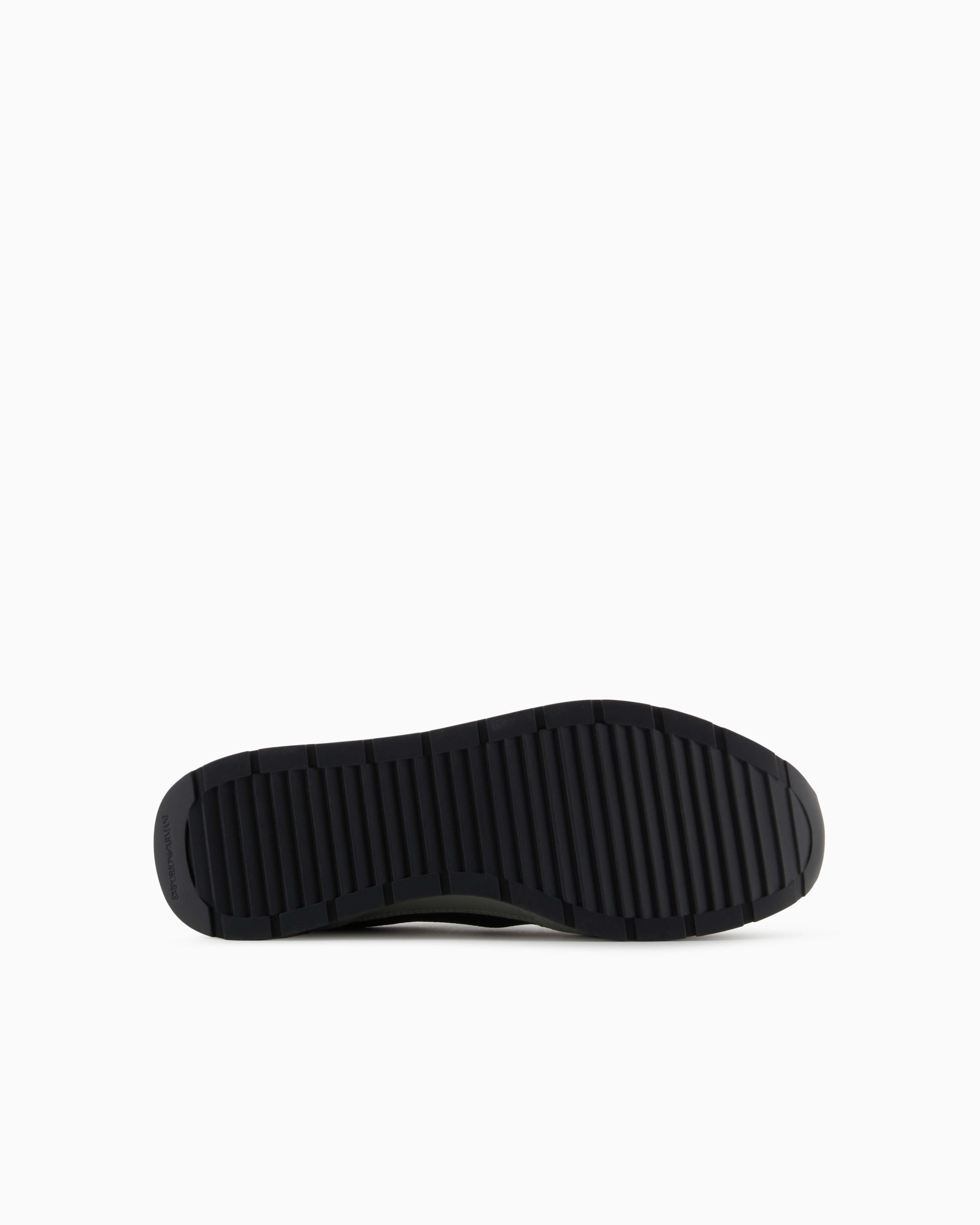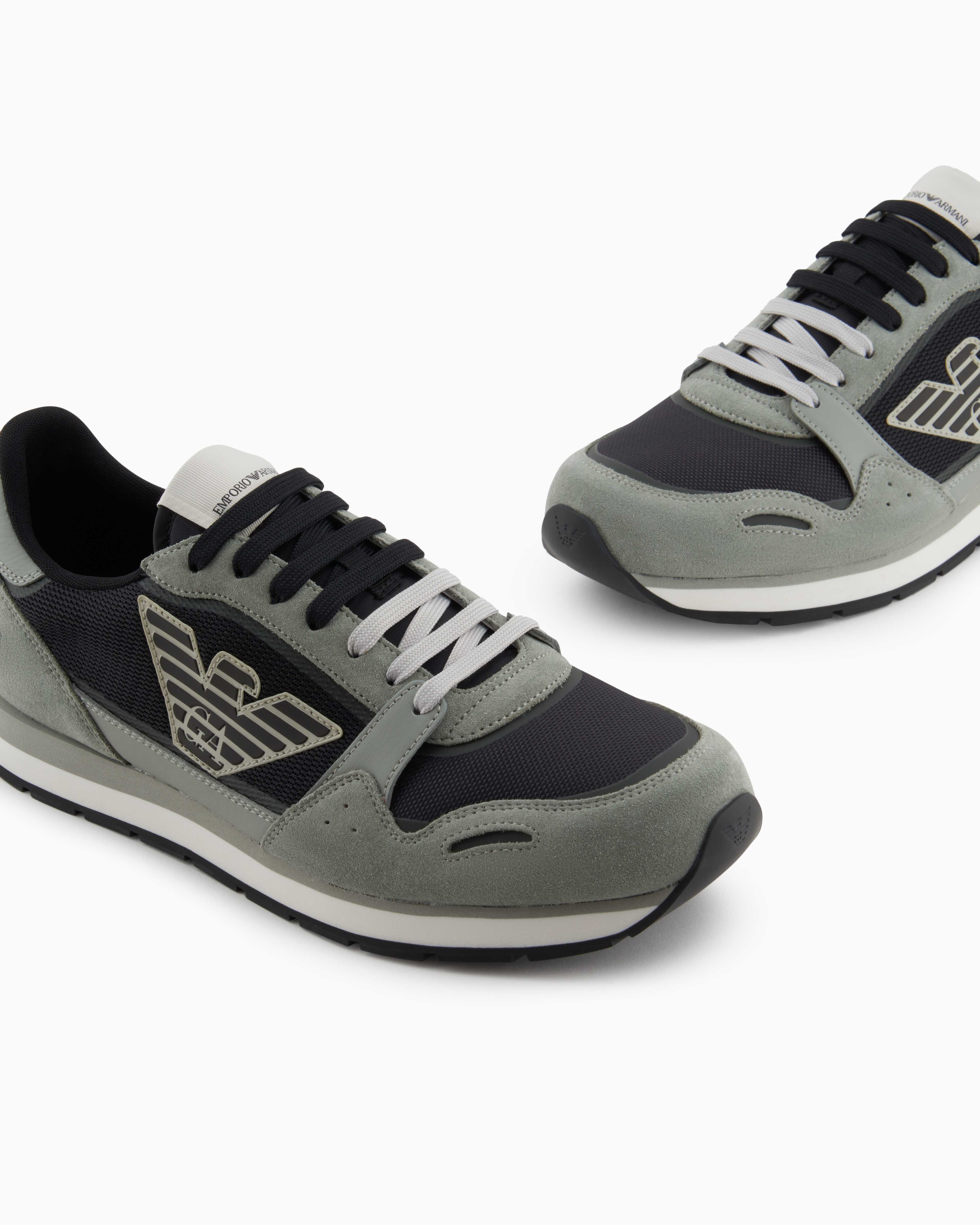Кроссовки из сетки и замши, со шнуровкой и логотипом сзади. Боковая нашивка с большим орлом Emporio Armani. Подошва изготовлена из 100% резины с индивидуальным протектором. Благодаря экспертному сочетанию материалов эти многофактурные кроссовки имеют смелый, современный стиль. Обувь добавляет непринужденную привлекательность классическим образам.