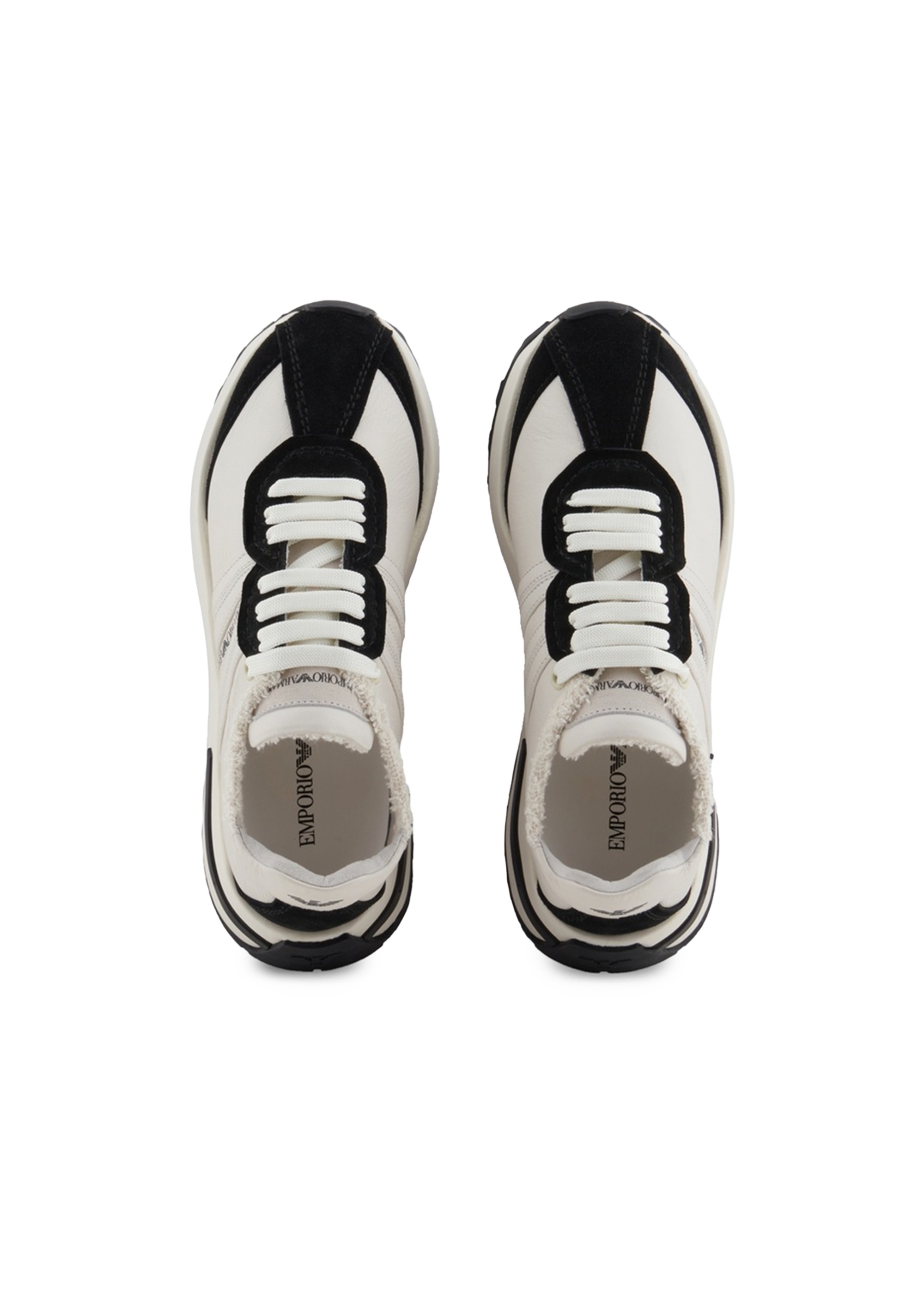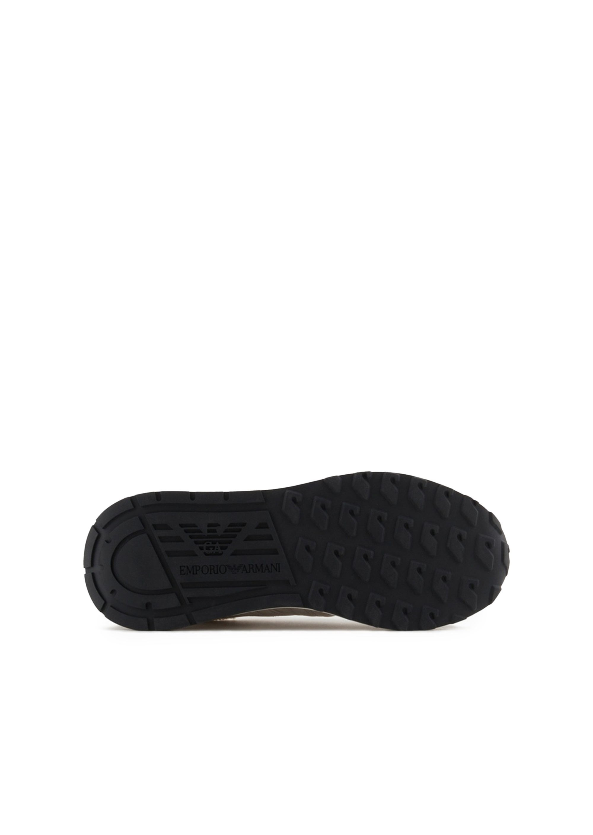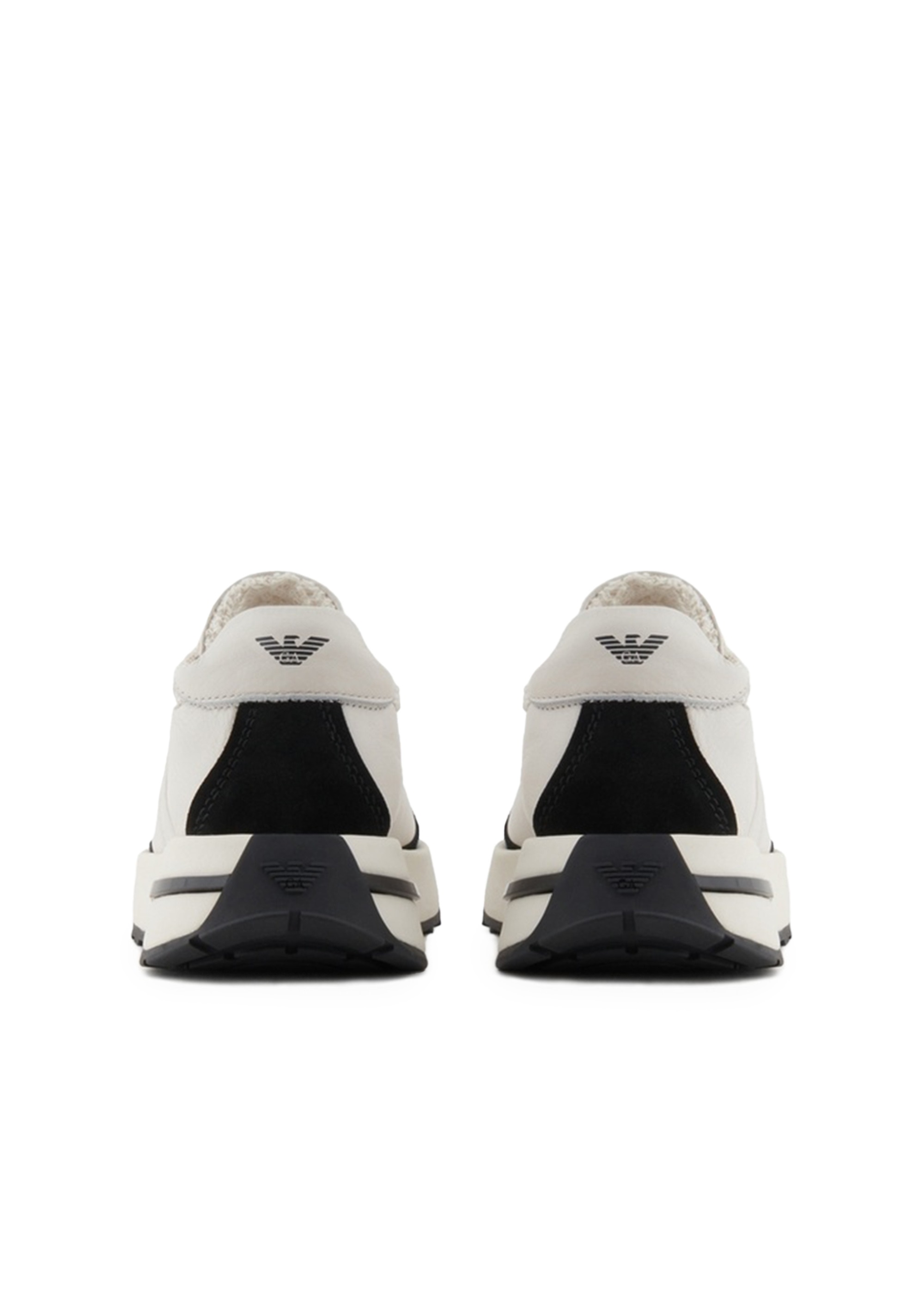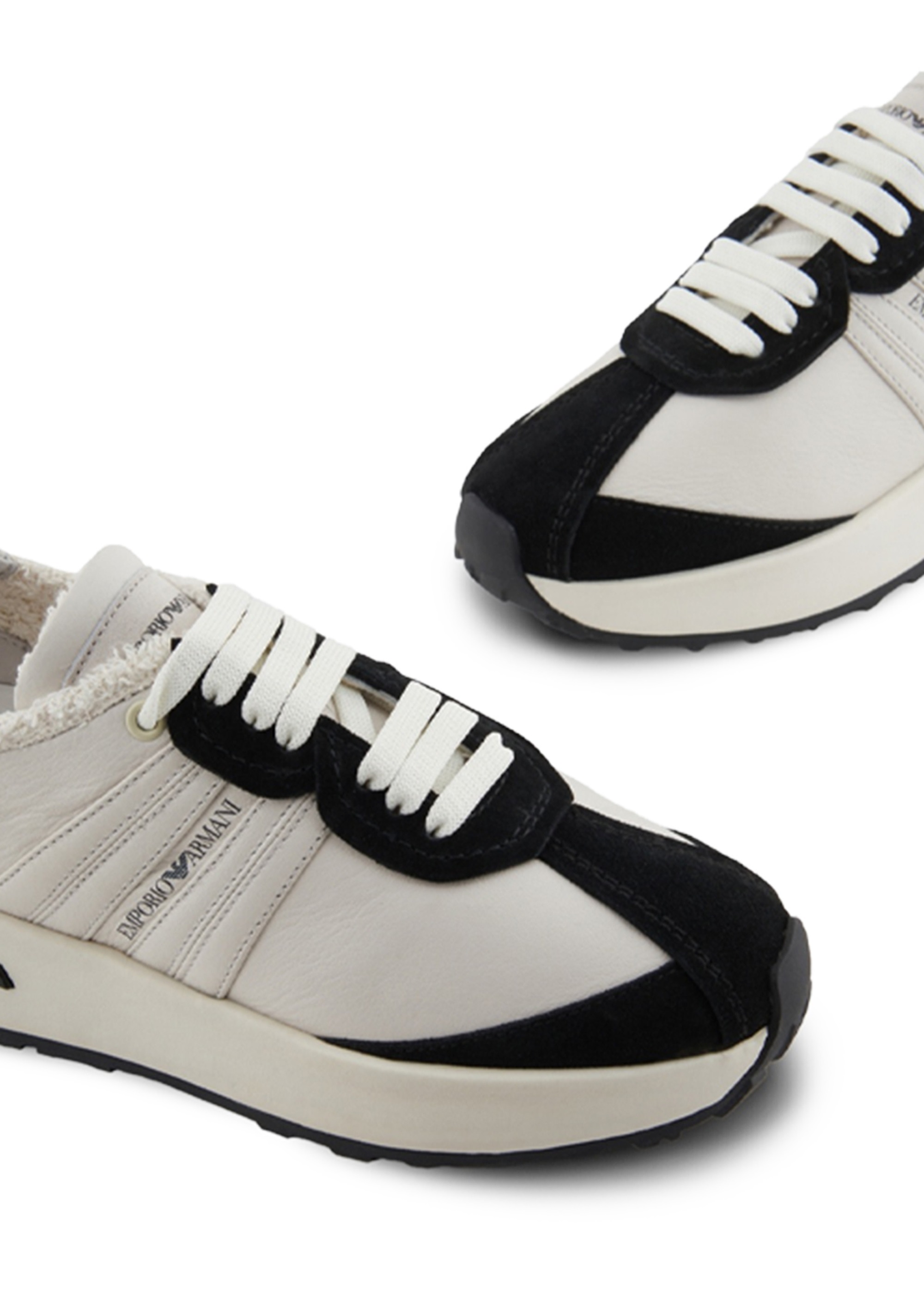 Кроссовки Emporio Armani сочетают спортивную функциональность и премиальный стиль. Модель выполнена из комбинации натуральной кожи и текстиля, что обеспечивает прочность, легкость и комфорт при носке. Контрастные вставки и фирменный логотип на боковой части подчеркивают динамичный характер дизайна. Чёрно-белая цветовая гамма делает пару универсальной. Высокая подошва обеспечивает дополнительную амортизацию. Кроссовки легко сочетаются с джинсами, спортивными брюками или шортами в повседневных и активных образах. Выразительный силуэт и продуманные детали делают модель актуальной для городского ритма.