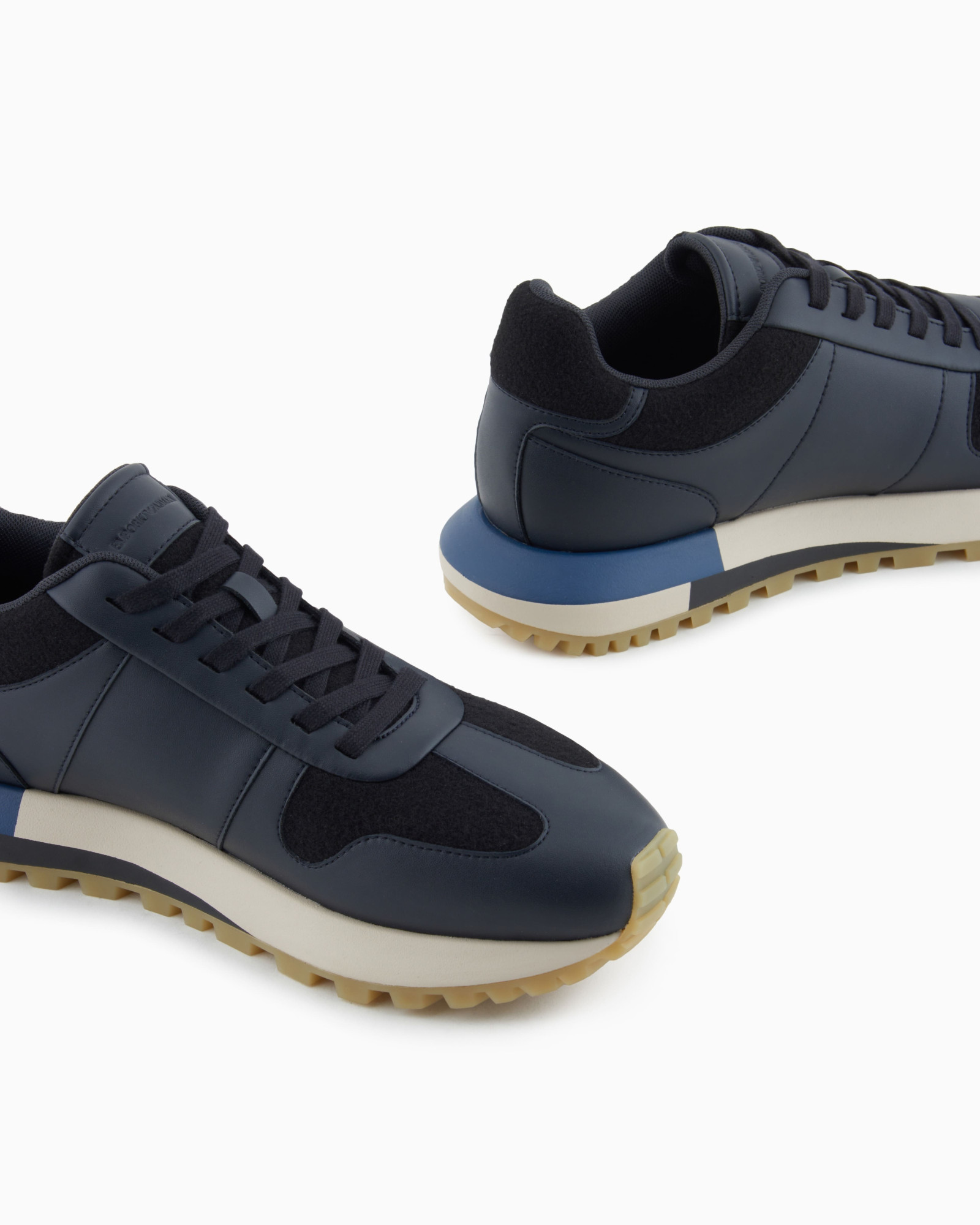 Кожаные кроссовки темно-синего цвета выполнены из мягкой телячьей кожи с эффектными деталями и выразительным боковым логотипом. Внутри — комфортная стелька, которая придаёт обуви дополнительное тепло и уют в холодное время года. Подошва создана из лёгкого переработанного EVA с противоскользящим рисунком, а наружная часть — из прочного термопластичного полиуретана, что обеспечивает отличное сцепление и долговечность. Текстильные вставки из полиэстера и вискозы гармонично дополняют дизайн, делая модель одновременно стильной и практичной. Эти кроссовки легко впишутся в повседневный гардероб, сочетая элегантность классики и комфорт современных технологий.