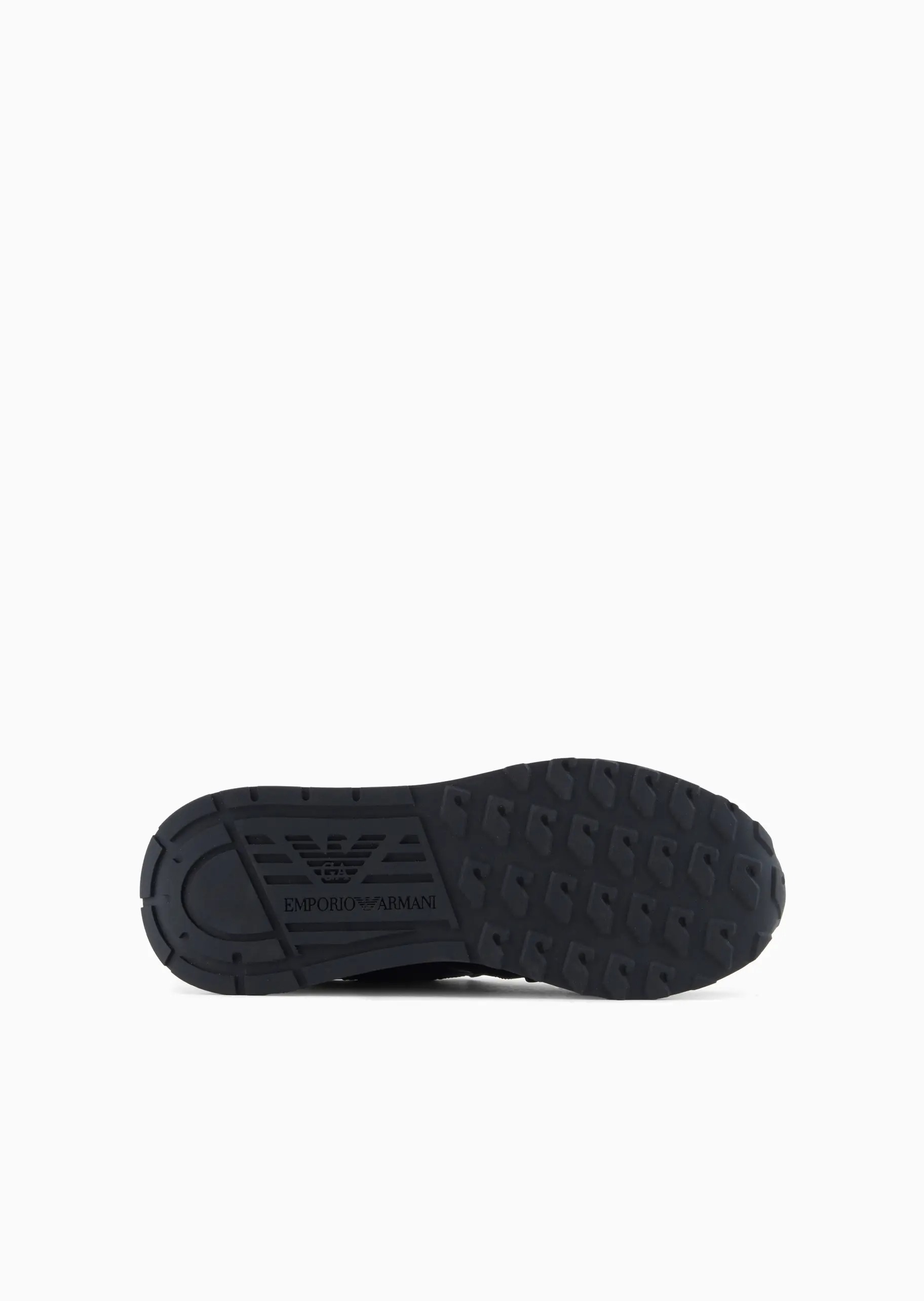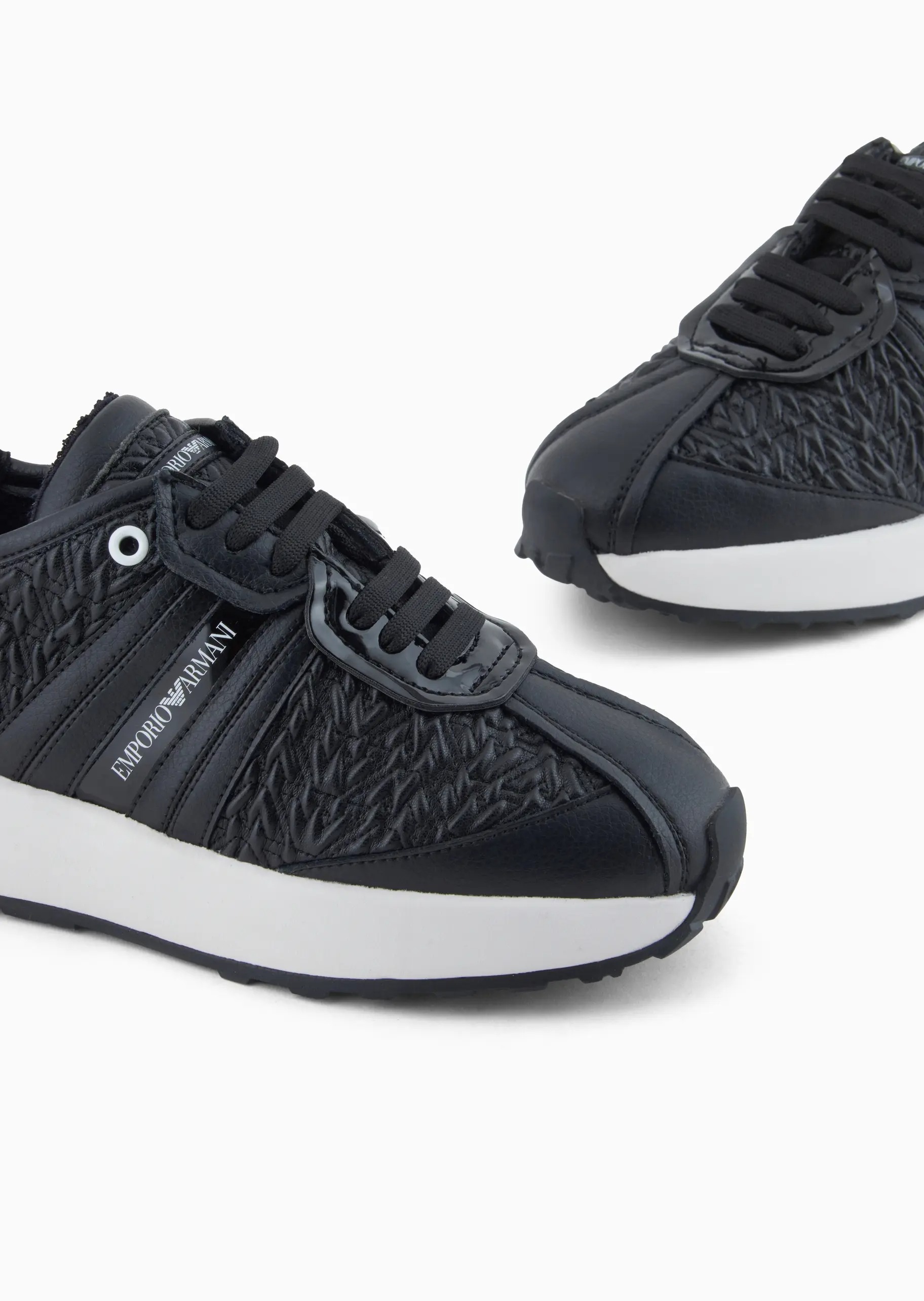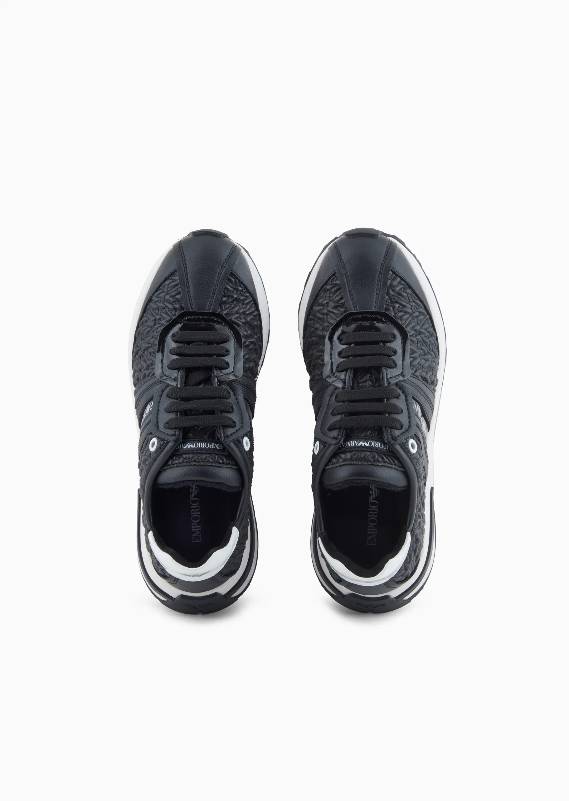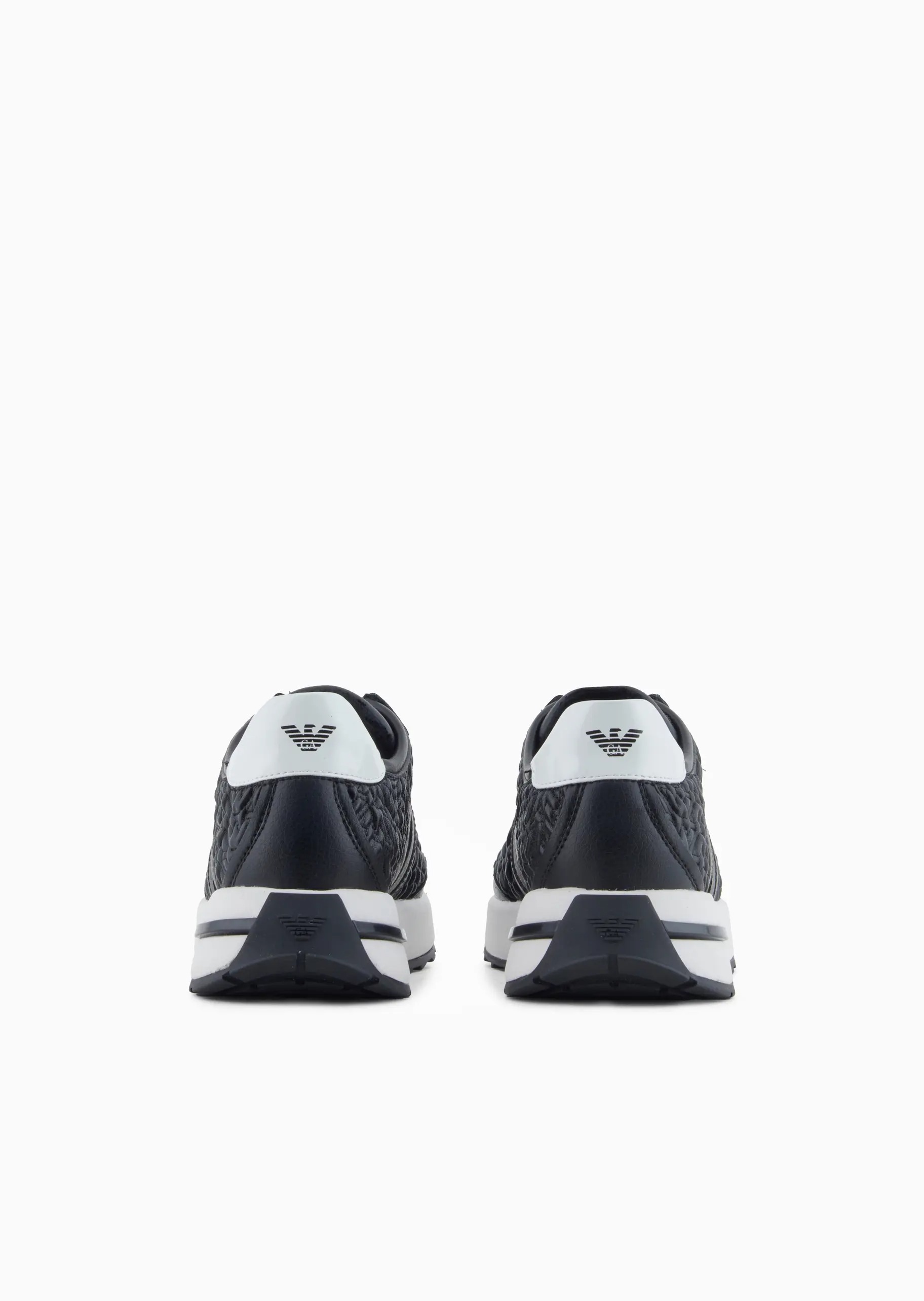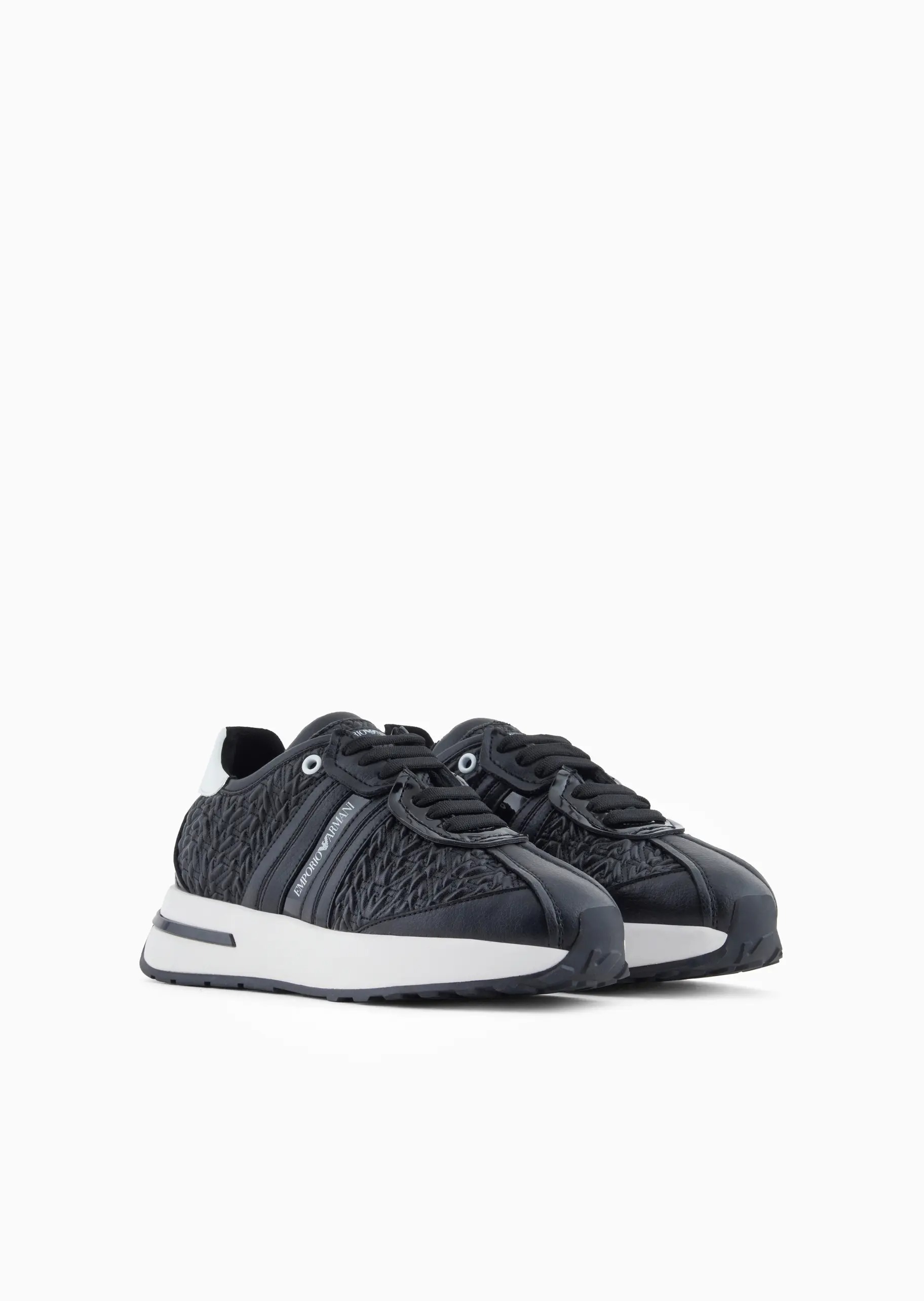 Кроссовки Emporio Armani с классической шнуровкой и рельефным верхом из кожи наппа отличаются продуманной архитектурой формы и объёмной текстурой. Толстая резиновая подошва с логотипом на пятке и контрастным брендингом сбоку придаёт образу динамичность и обеспечивает комфорт при ходьбе и лёгких тренировках. Минималистичный силуэт с акцентами премиум-класса создаёт гармонию стиля и функциональности. Эта пара гармонично сочетается с джинсами, брюками чинос или спортивными комплектами, добавляя образу современную элегантность. Эта обувь станет отличным дополнением к гардеробу, предлагая сочетание комфорта и фирменного стиля Emporio Armani.