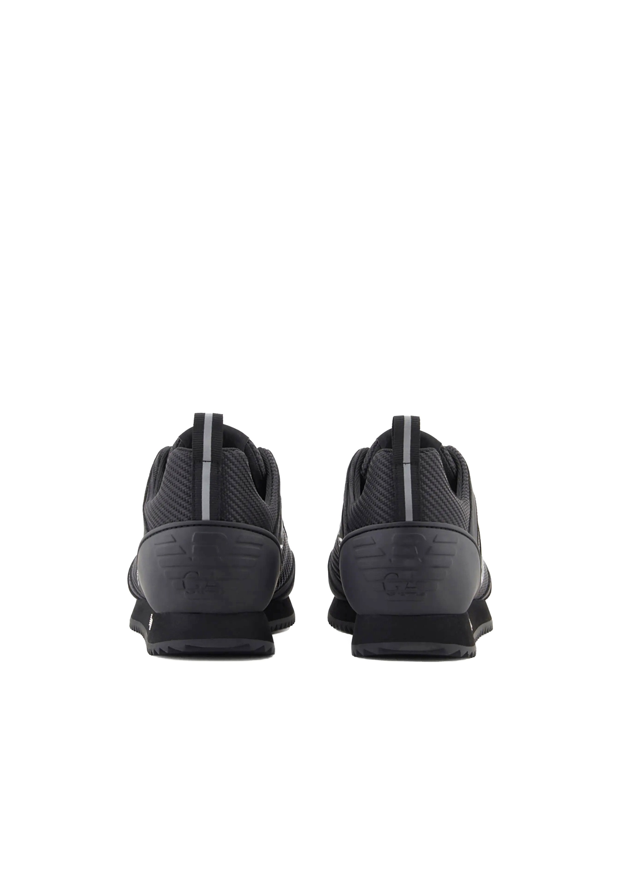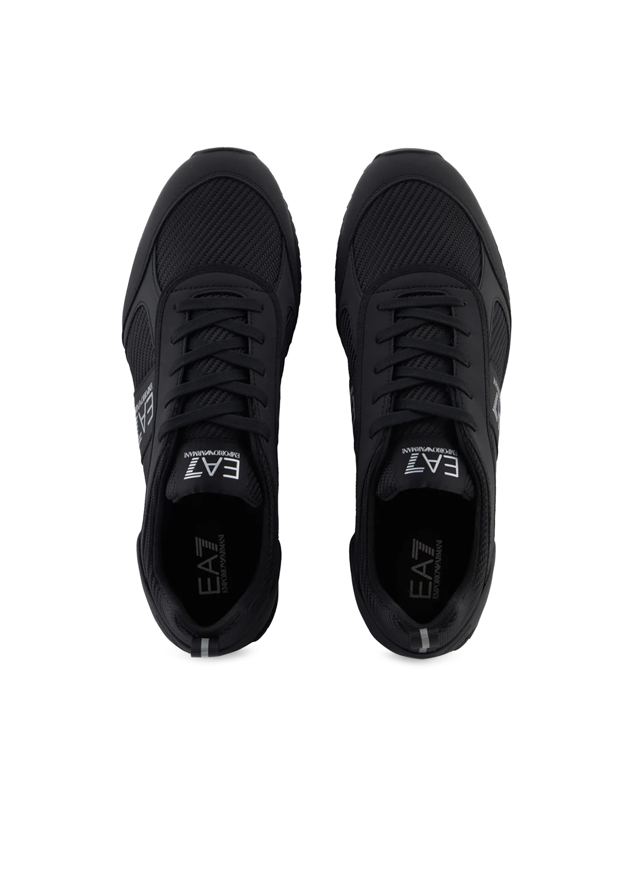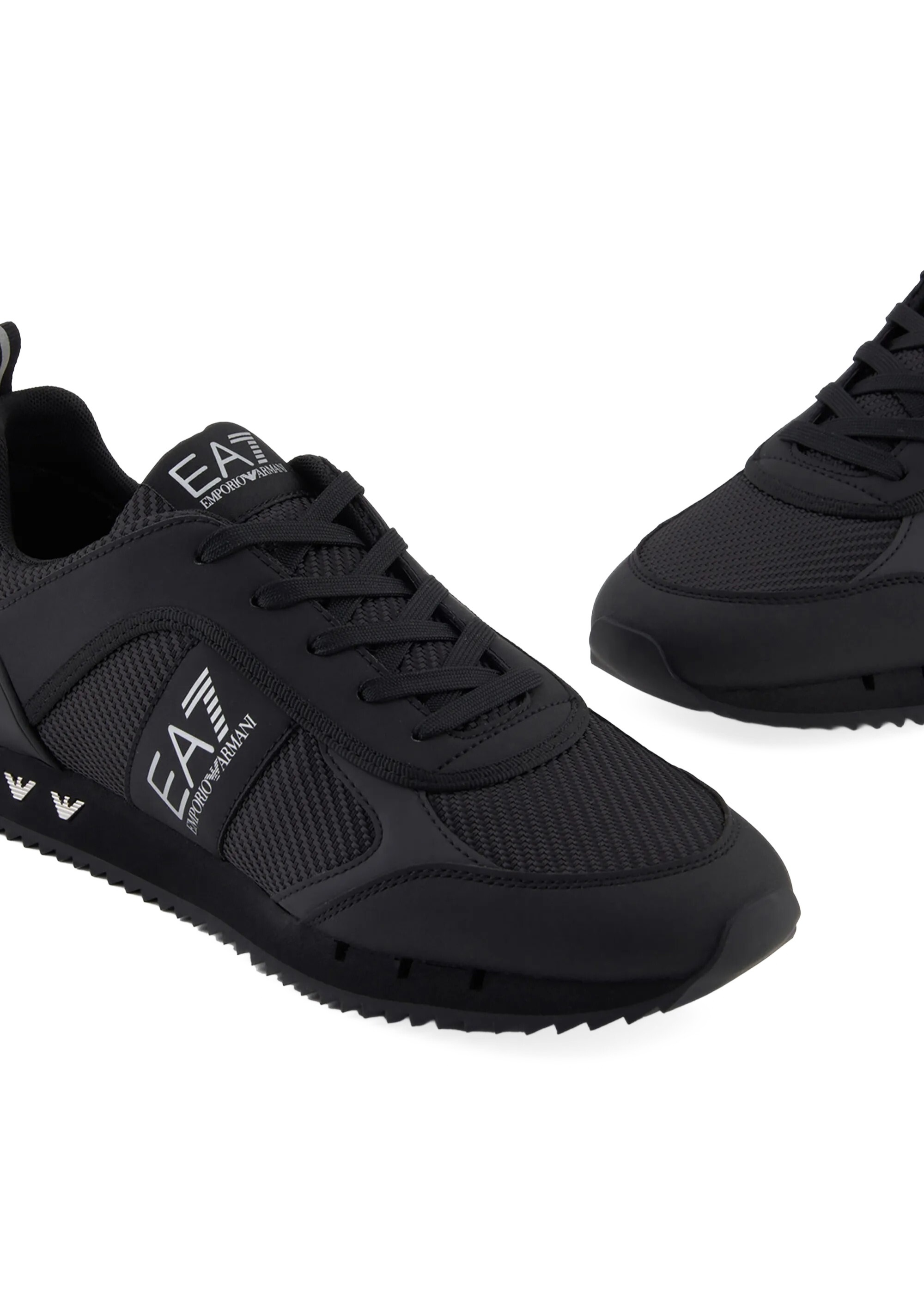 Мужские кроссовки EA7 Emporio Armani в чёрном оттенке выполнены из высококачественного полиуретана с гладкой фактурой, напоминающей кожу. Лаконичный силуэт с динамичными линиями подчёркивает спортивный характер модели, а прочная подошва гарантирует комфорт и долговечность при ежедневной носке. Универсальный чёрный цвет делает пару базовой: кроссовки гармонично сочетаются с джоггерами, спортивными костюмами и повседневными образами. Эта модель EA7 Emporio Armani становится практичным и стильным элементом мужского гардероба, объединяя удобство и актуальный дизайн.