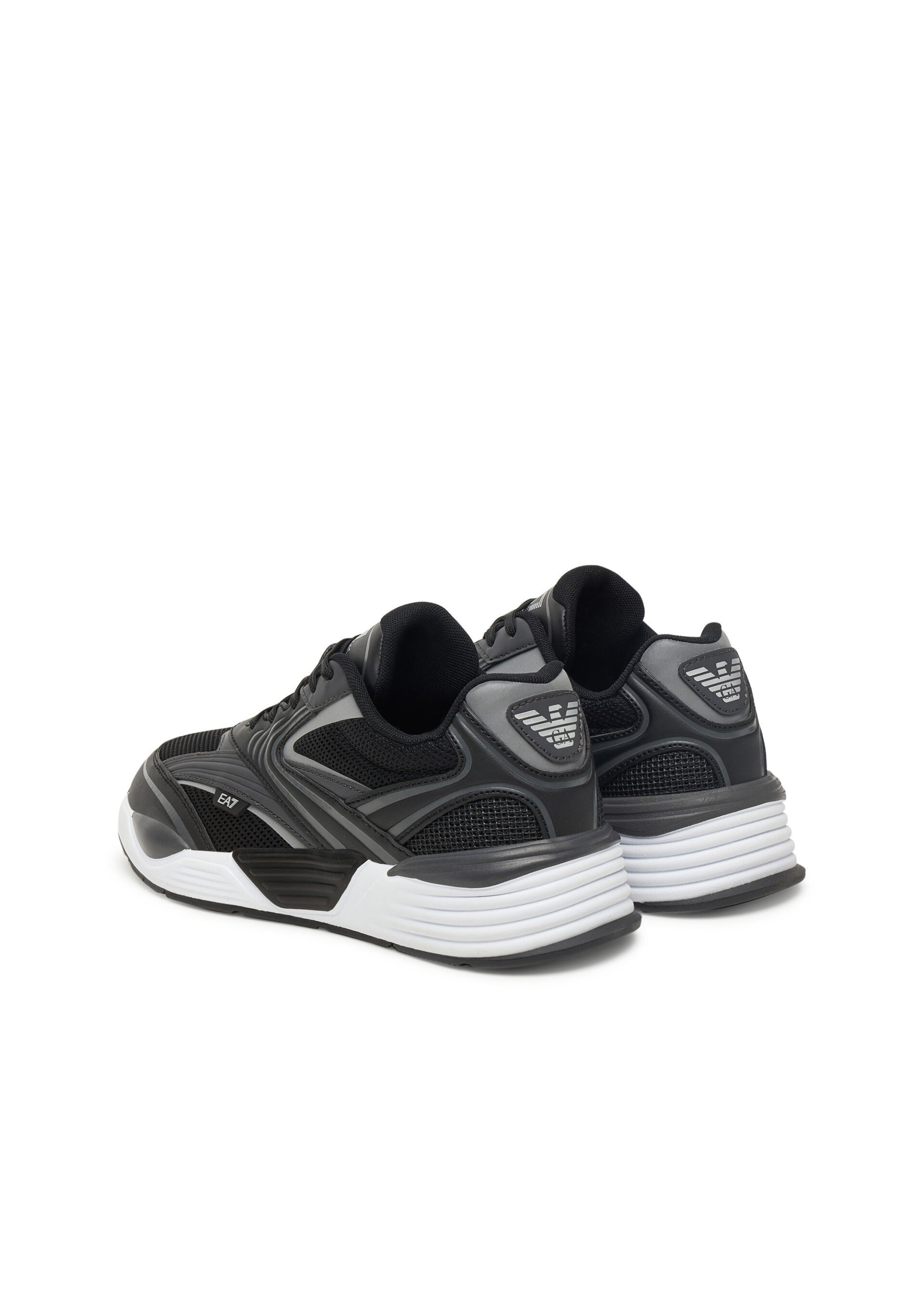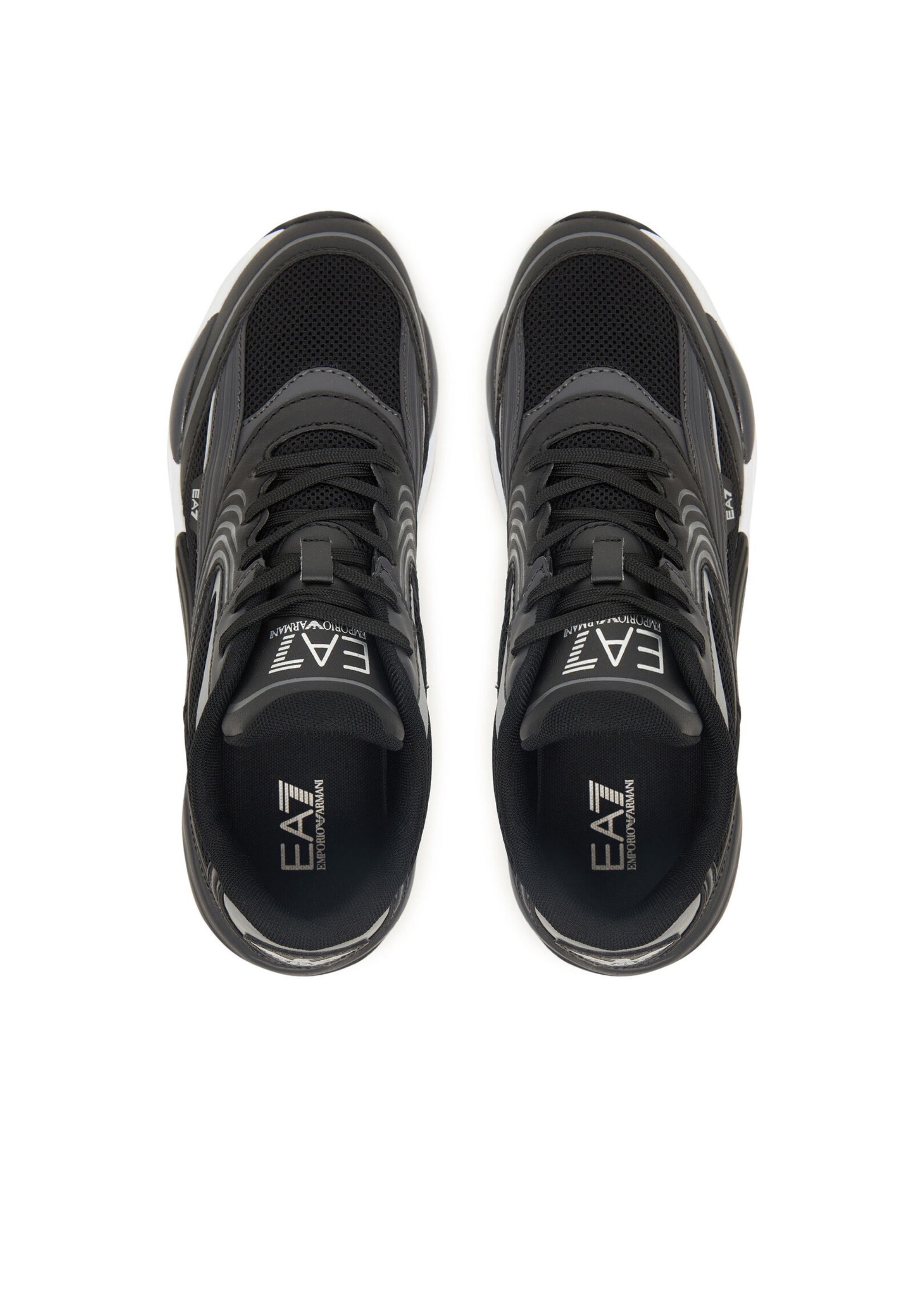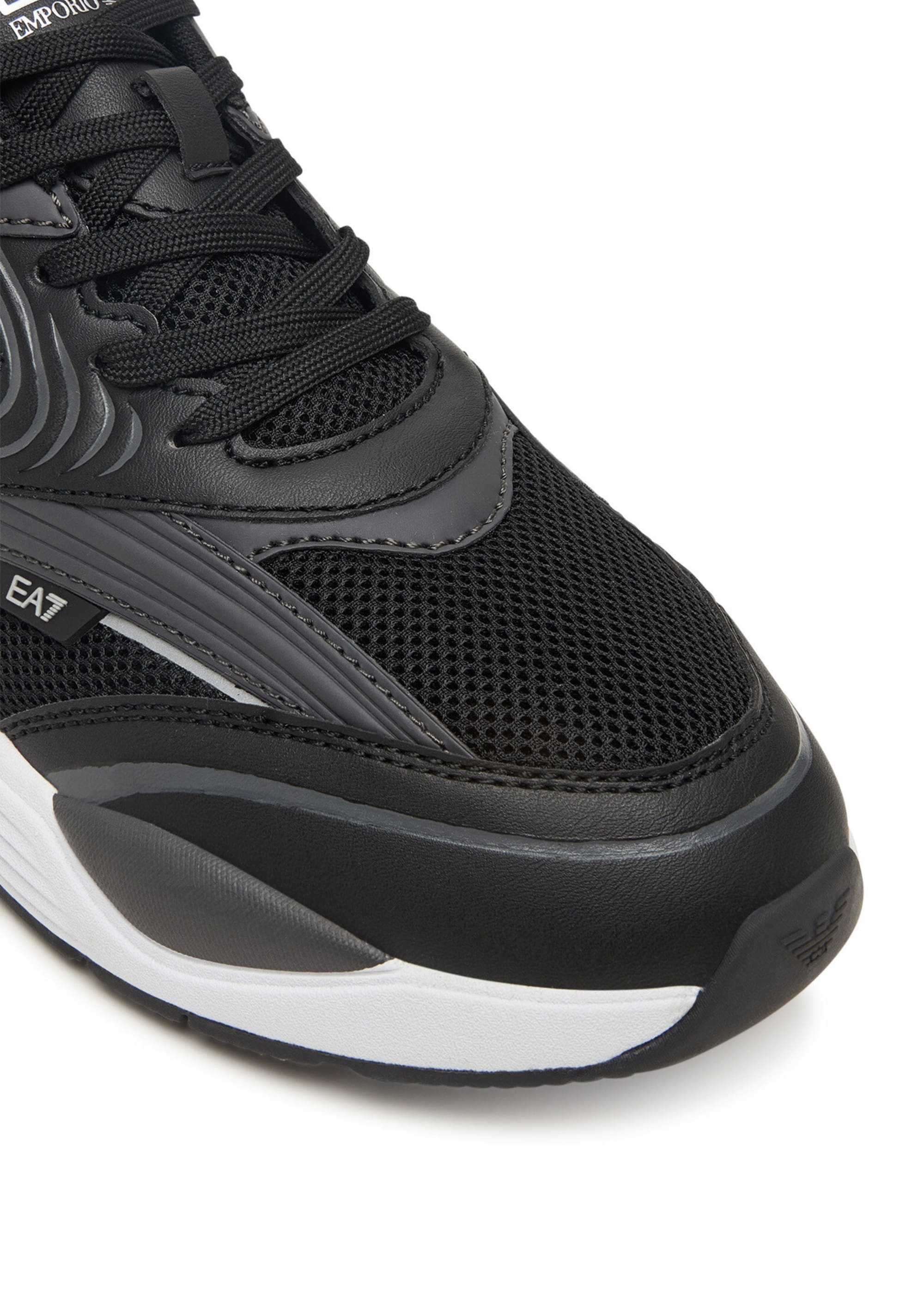 Женские кроссовки EA7 Emporio Armani в чёрном оттенке выполнены из лёгкого и прочного полиэстера, который обеспечивает воздухопроницаемость и комфорт при движении. Лаконичный силуэт с динамичными линиями подчёркивает спортивный характер модели, а гибкая подошва гарантирует удобство при повседневной носке. Фирменный логотип добавляет узнаваемый акцент бренда. Универсальный чёрный цвет делает кроссовки базовой парой, которая легко сочетается с джоггерами, леггинсами и повседневными образами. Эта модель EA7 Emporio Armani становится практичным и стильным решением для активного ритма города.