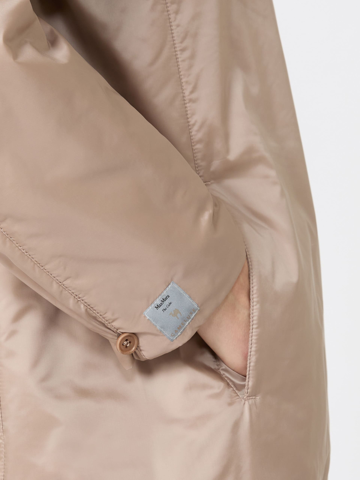 Прямая куртка Max Mara Cube в коричневом оттенке из водоотталкивающего канваса с утеплённой подкладкой Cameluxe и капюшоном на кулиске. Застёжка на молнию с кожаным пуллером, прорезные боковые карманы и длинные рукава формируют лаконичный повседневный образ. Сочетается с джинсами, брюками-карго или спортивными штанами. Тёплая и функциональная вещь для прохладного сезона — объединяет практичность и премиальные материалы.