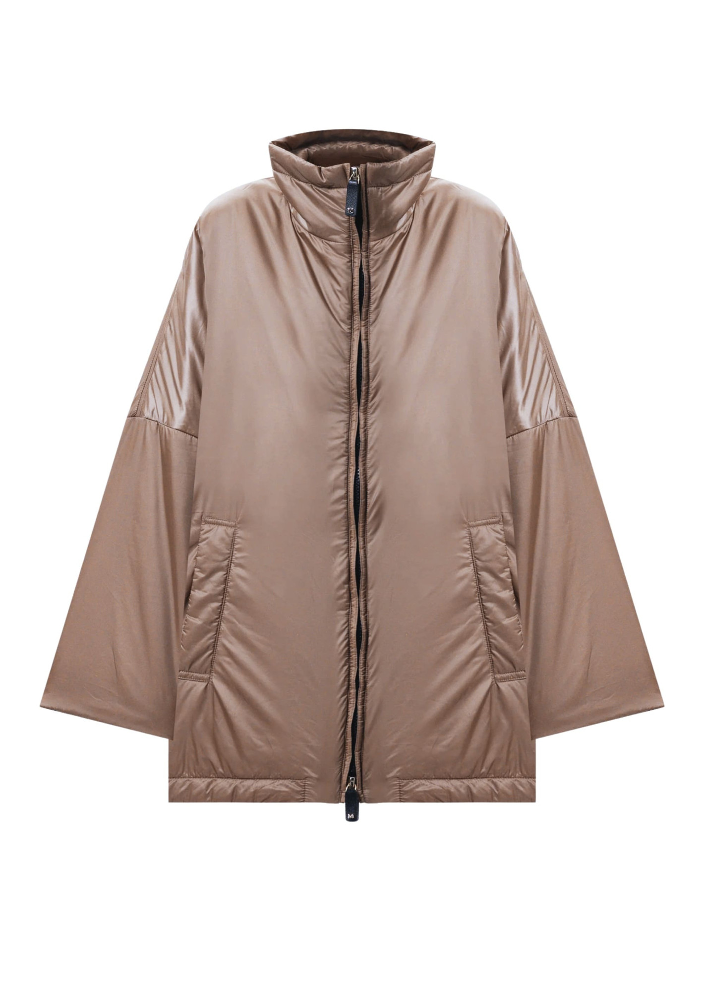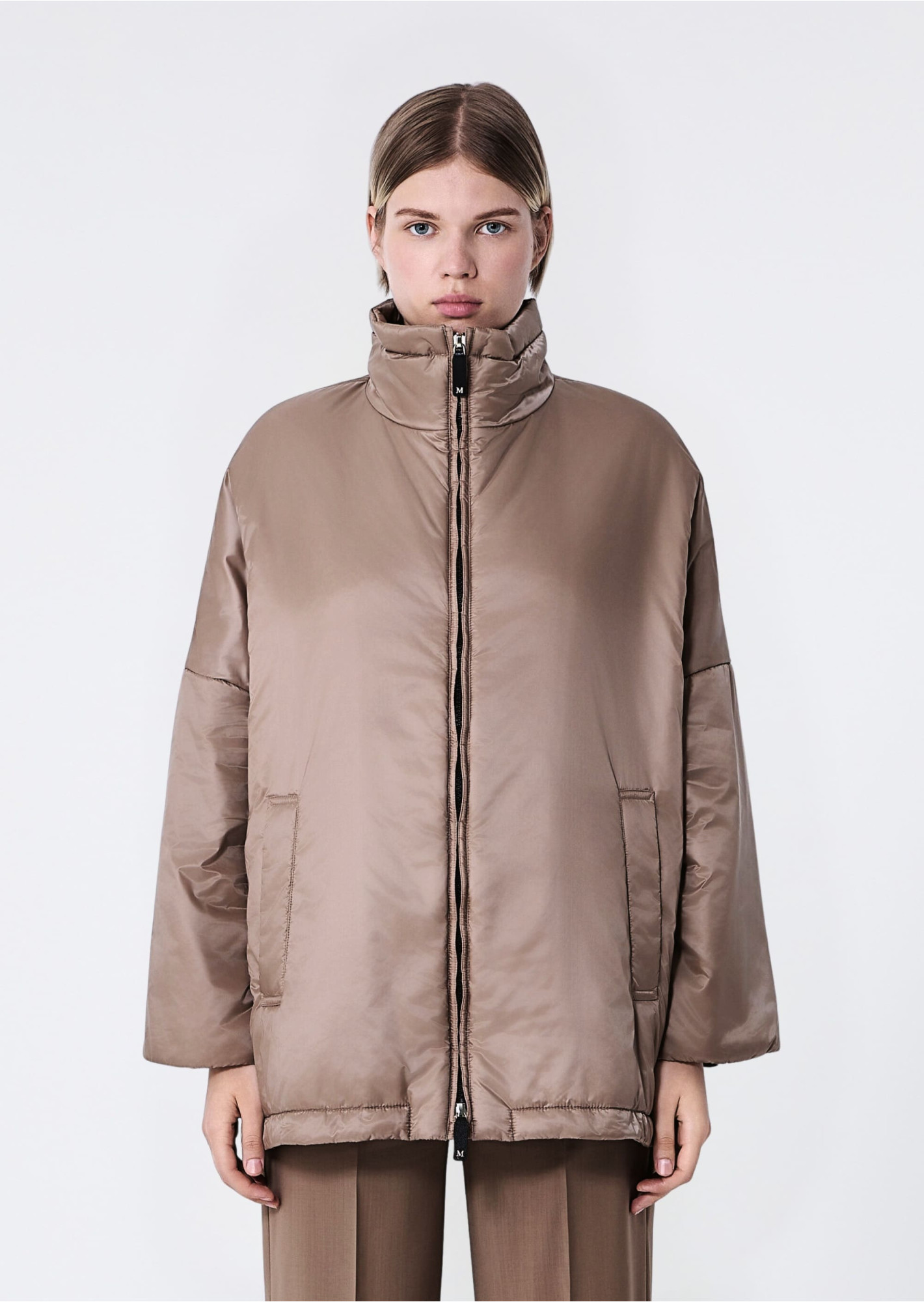 Куртка Max Mara Cube в насыщенном шоколадном оттенке выполнена из гладкого полиэстера с лёгким блеском. Прямой силуэт создаёт элегантный и современный образ. Сочетается с классическими и повседневными комплектами — от брюк до трикотажа. Универсальный элемент для прохладного сезона: лёгкая, тёплая и практичная.