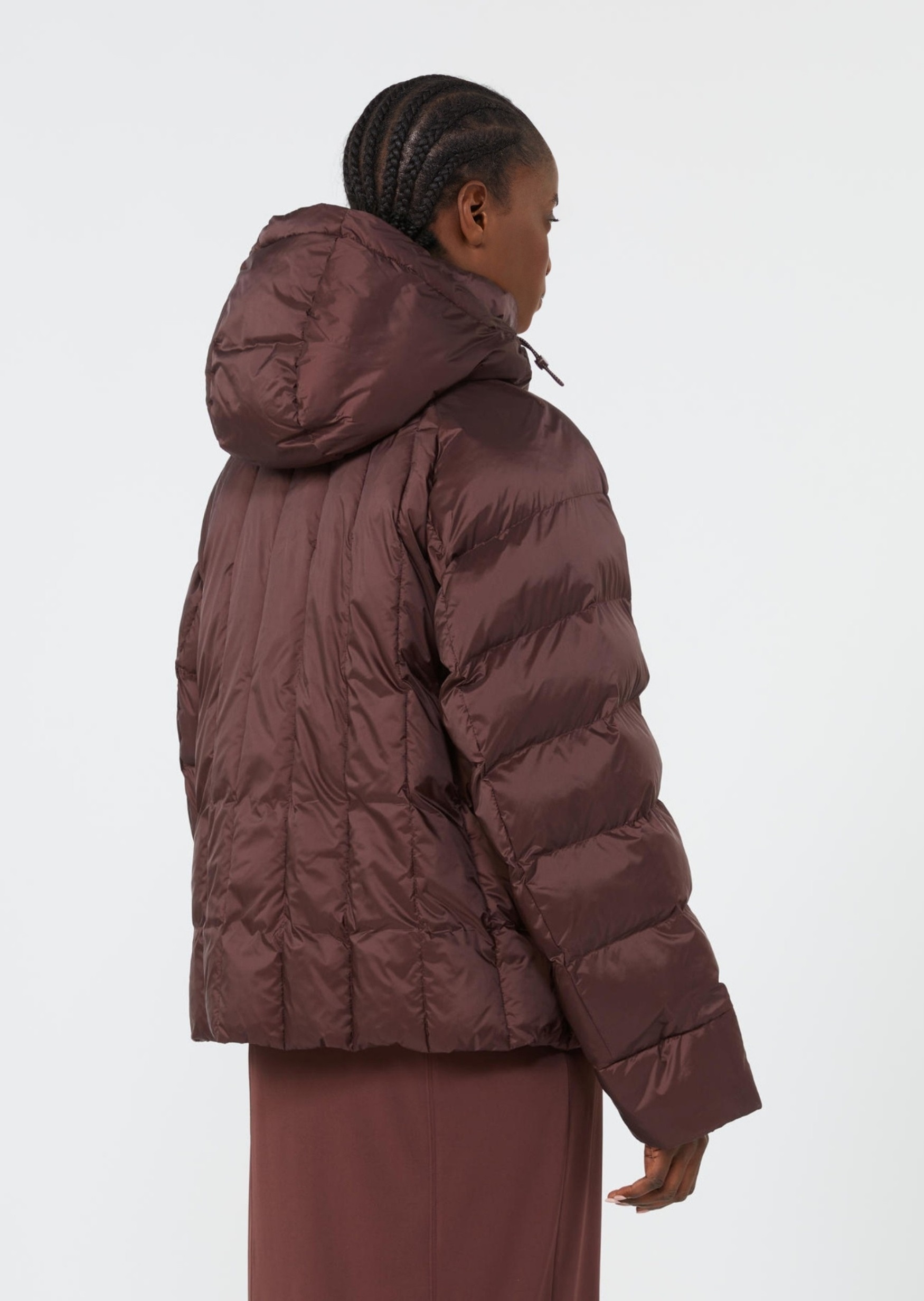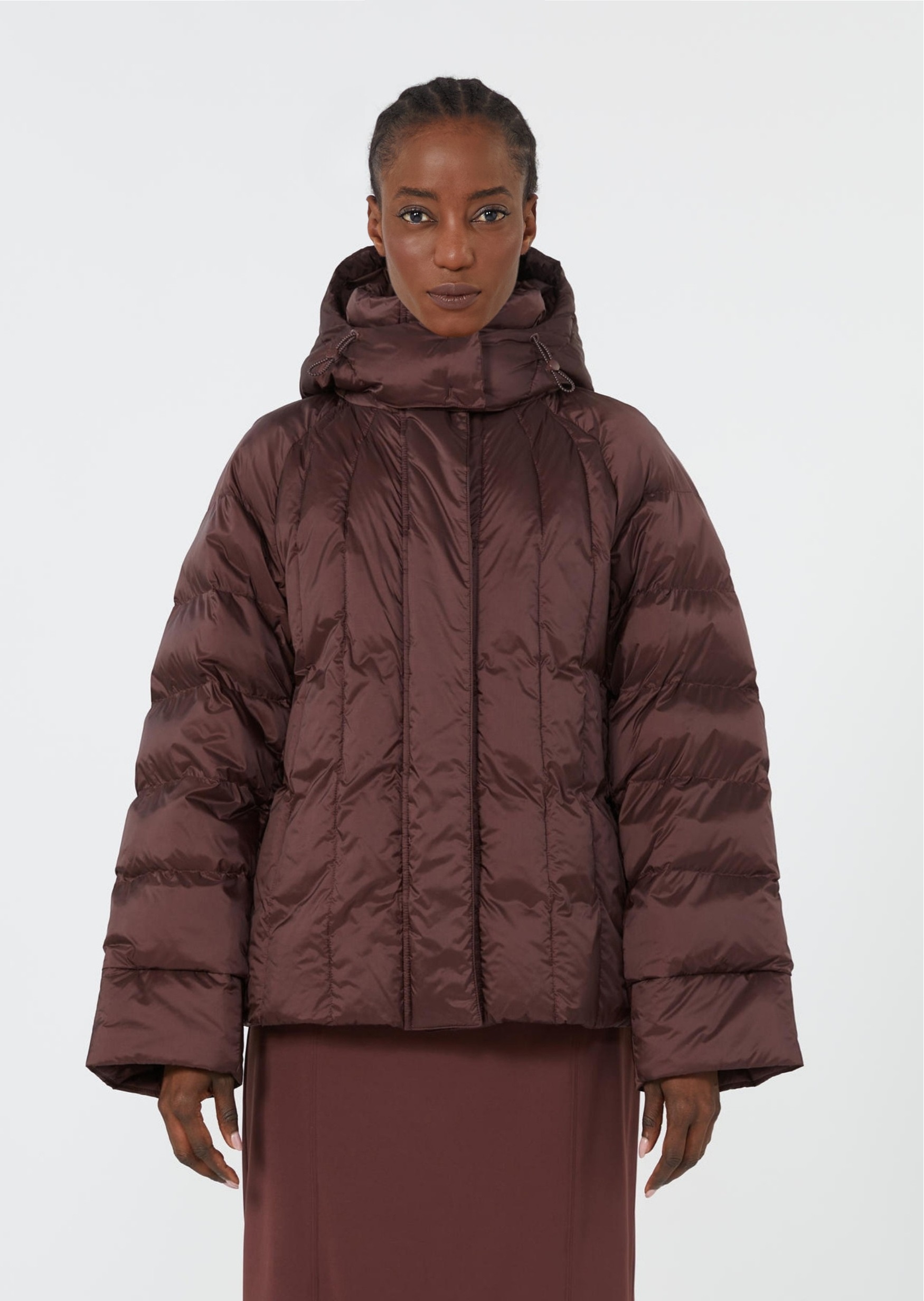 Куртка из линии Max Mara Leisure выполнена из лёгкого гладкого полиамида с матовой текстурой. Прямой крой, лаконичный капюшон, скрытая застёжка и прорезные карманы подчёркивают функциональный минимализм модели. Благодаря лёгкости и универсальному дизайну изделие легко вписывается в повседневный гардероб. Сочетается с трикотажем, джоггерами, брюками свободного кроя и городской обувью.