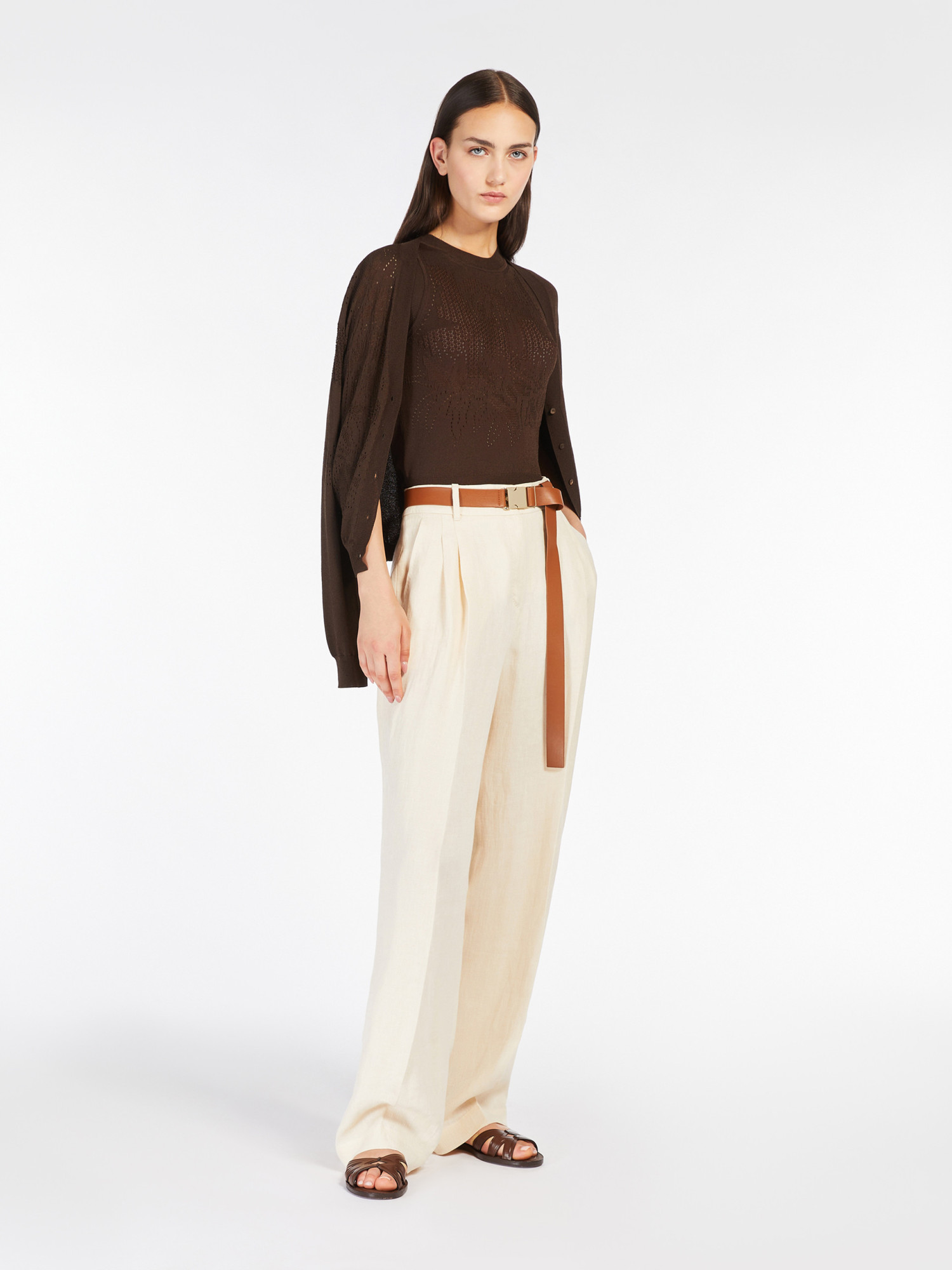 Коричневая майка Max Mara Studio выполнена из мягкого трикотажа с добавлением эластана, обеспечивая комфорт и эластичность. Модель без рукавов с круглым вырезом горловины и облегающим силуэтом подчёркивает фигуру. Гладкая текстура и лаконичный дизайн делают майку универсальной для сочетания с различными элементами гардероба — от юбок до жакетов. Идеальна для создания как повседневных, так и более формальных образов.