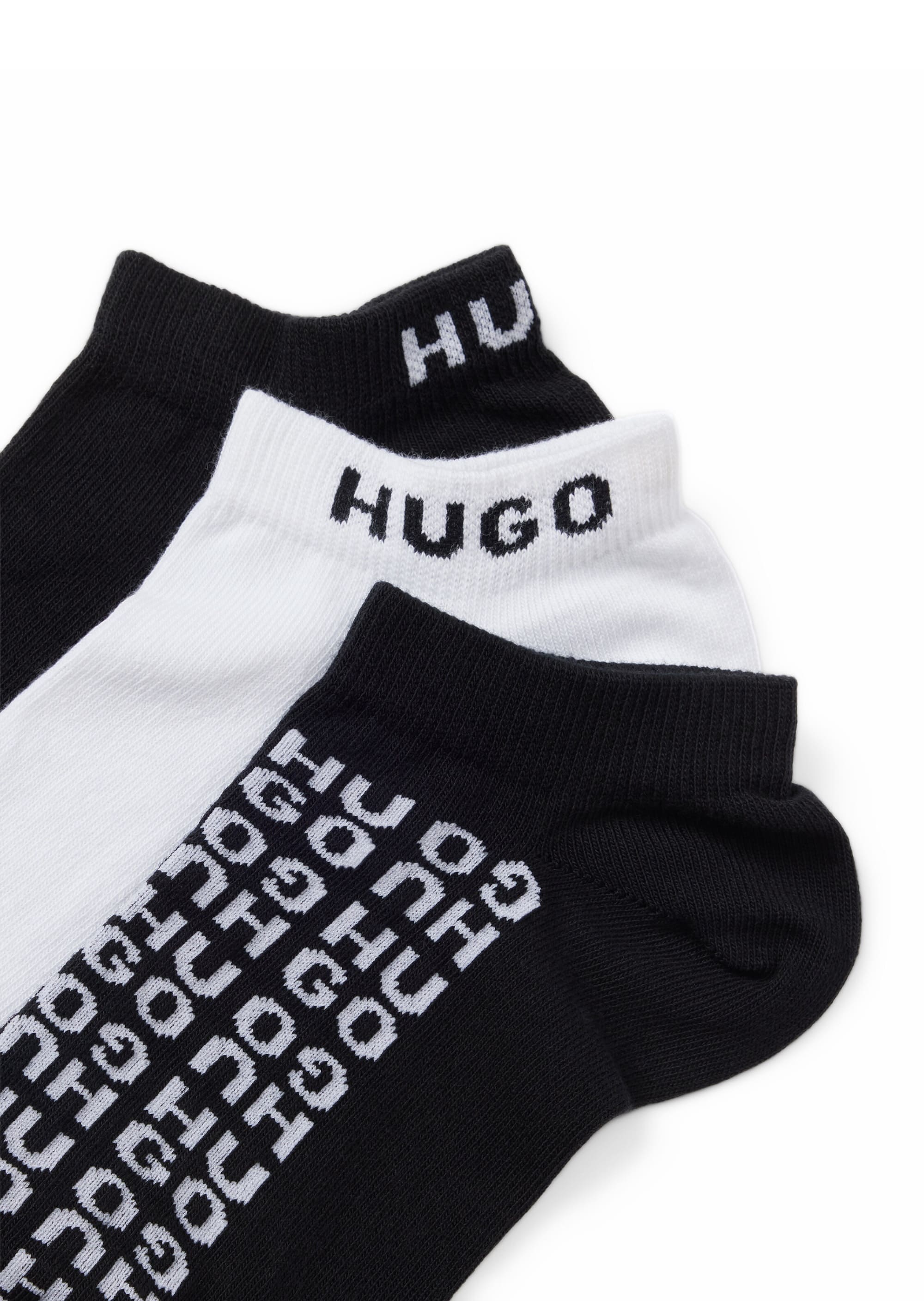 Носки выполнены из эластичной хлопковой ткани, что обеспечивает комфорт и долговечность. Они идеально подходят для повседневного ношения благодаря щиколоточной длине. Каждая пара украшена контрастным логотипом HUGO, который придаёт изделию стильный акцент. Отличный выбор для ценителей практичных и модных аксессуаров.