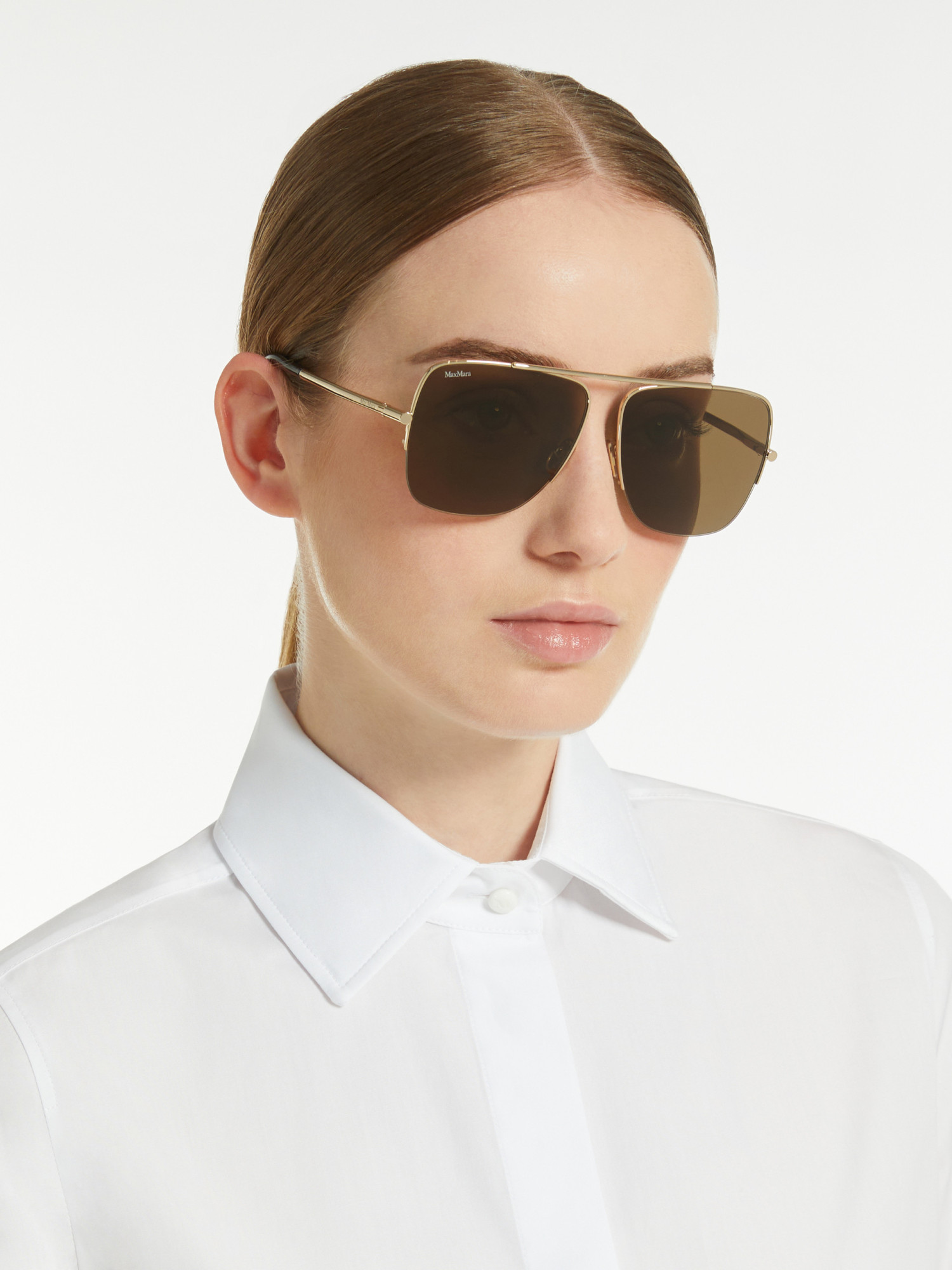 Солнцезащитные очки с передней частью в стиле Авиатор и современными тонкими профилями. Аксессуар от Max Mara надежно защитит от солнца и придаст изысканность образу.