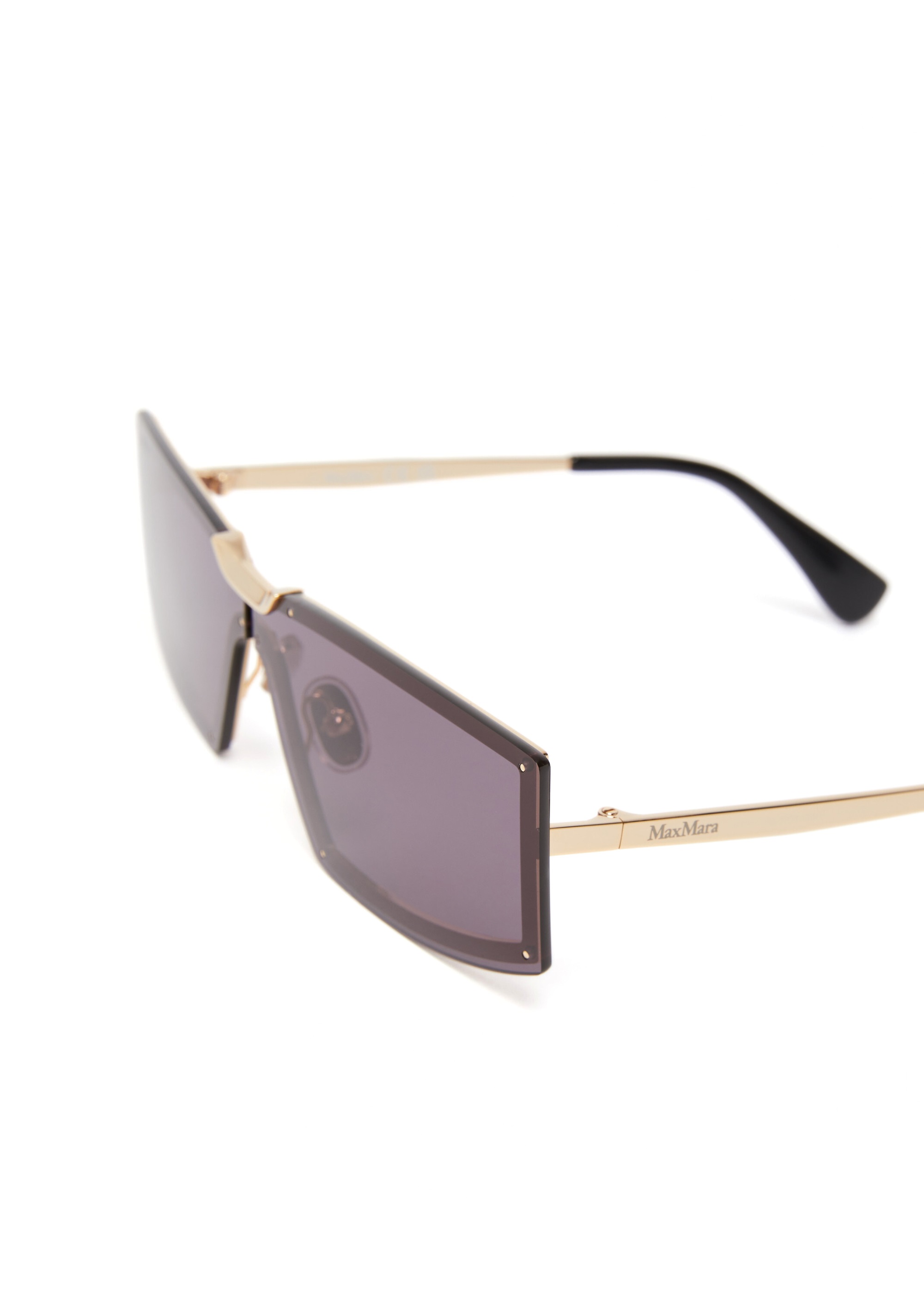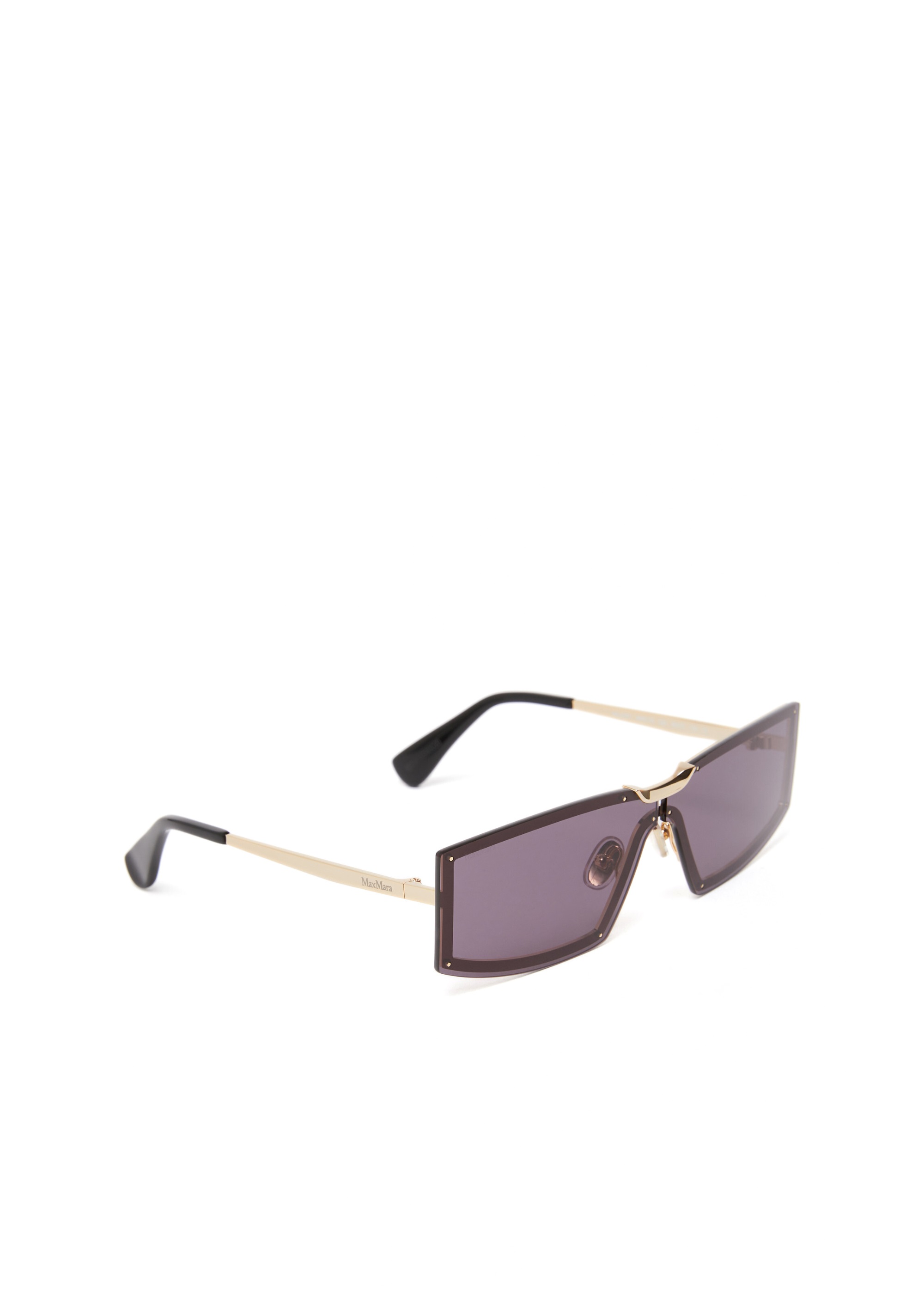 Стильные очки от Мax Mara прямоугольной формы. Оправа полностью выполнена из металла, дополнена металлической деталью на переносице и логотипом на заушниках.