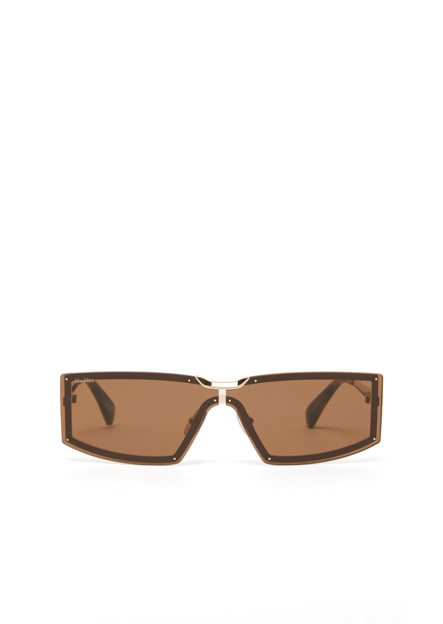 Очки от Мax Mara прямоугольной формы, с комфортной посадкой. Оправа полностью выполнена из металла, дополнена металлической деталью и логотипом. Прекрасный выбор для стильных женщин, ищущих надежные очки.