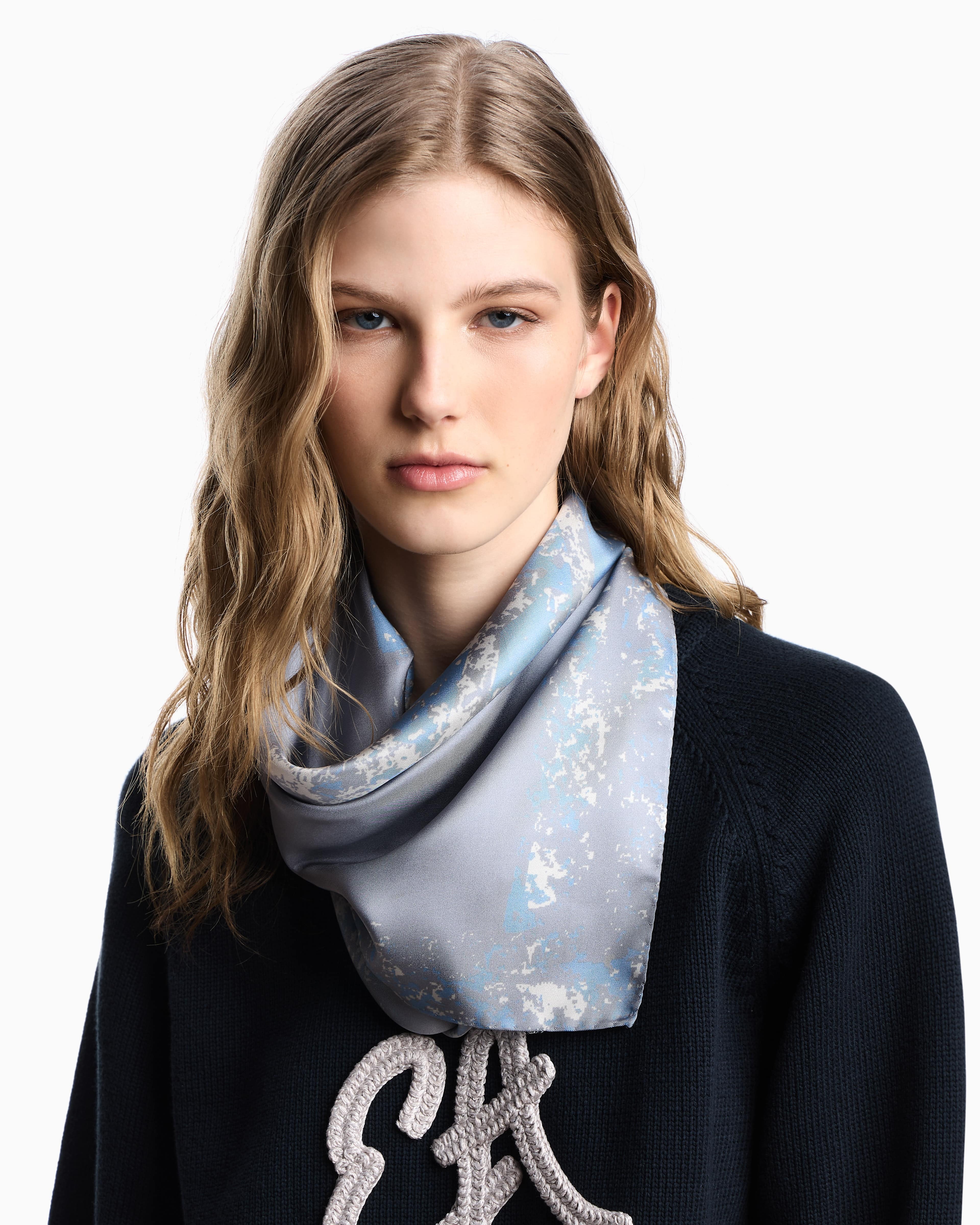 Платок из чистого шелка. Этот изысканный, элегантный аксессуар с эксклюзивным декоративным принтом с эффектом градиента. Аксессуар, который добавляет утонченности и завершённости всему образу.