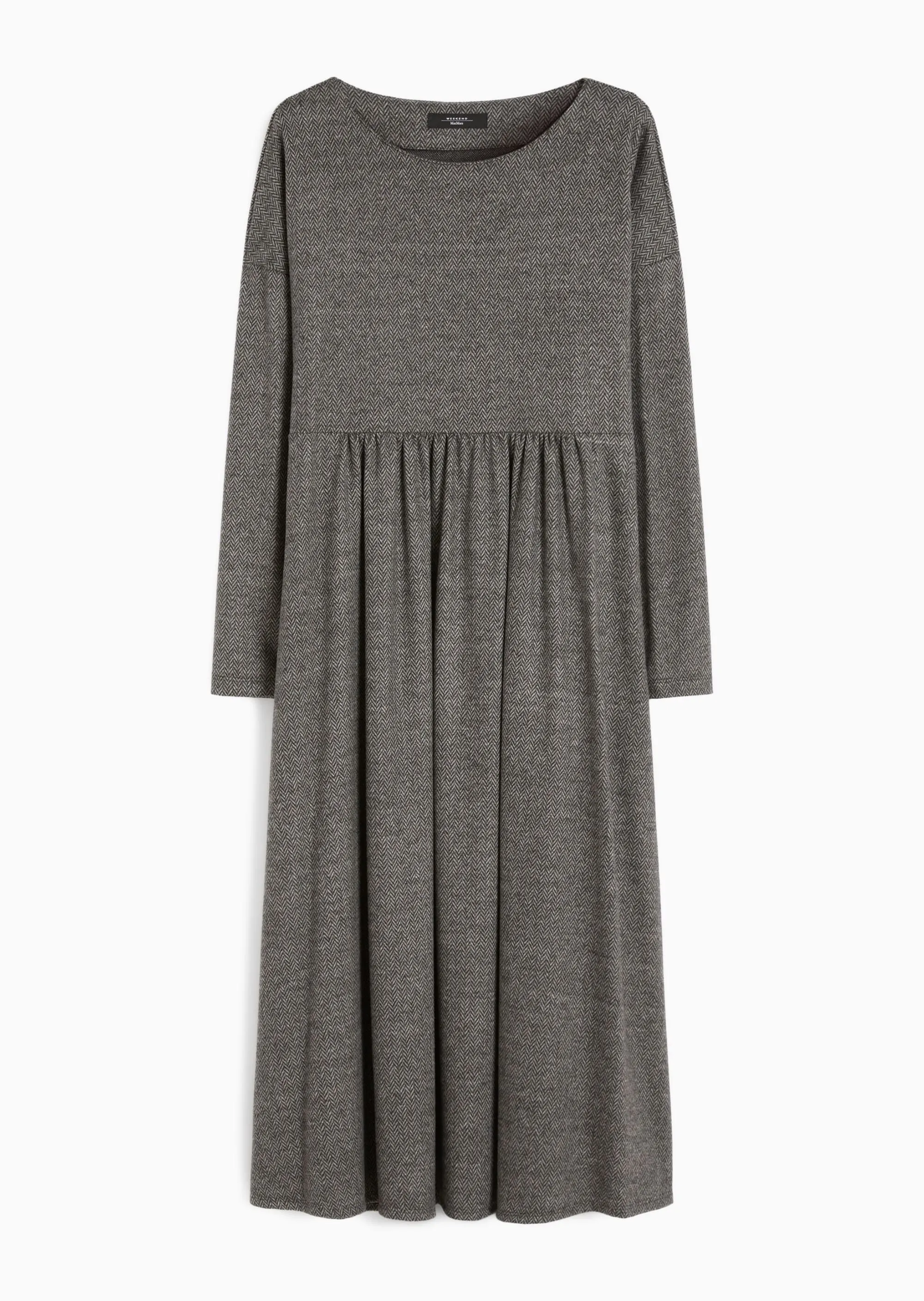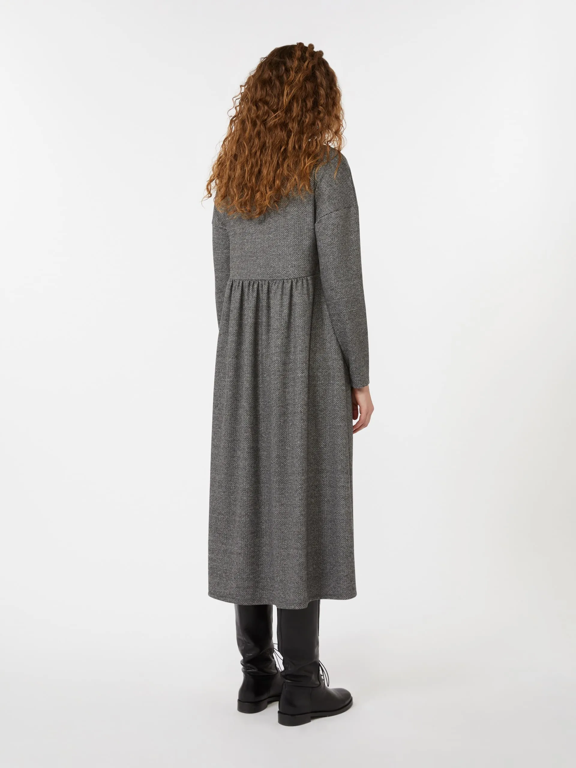 Элегантное платье Max Mara Weekend выполнено из мягкой вискозной ткани с добавлением полиэстера и эластана для комфорта и лёгкой эластичности. Прямой силуэт с аккуратной посадкой, минималистичный дизайн и лаконичная отделка создают универсальную базу для разнообразных образов. Нейтральный серый оттенок подчёркивает сдержанность и подходит для сочетания с различными аксессуарами и обувью. Идеальный выбор для повседневных и деловых образов, объединяющий комфорт и стиль.