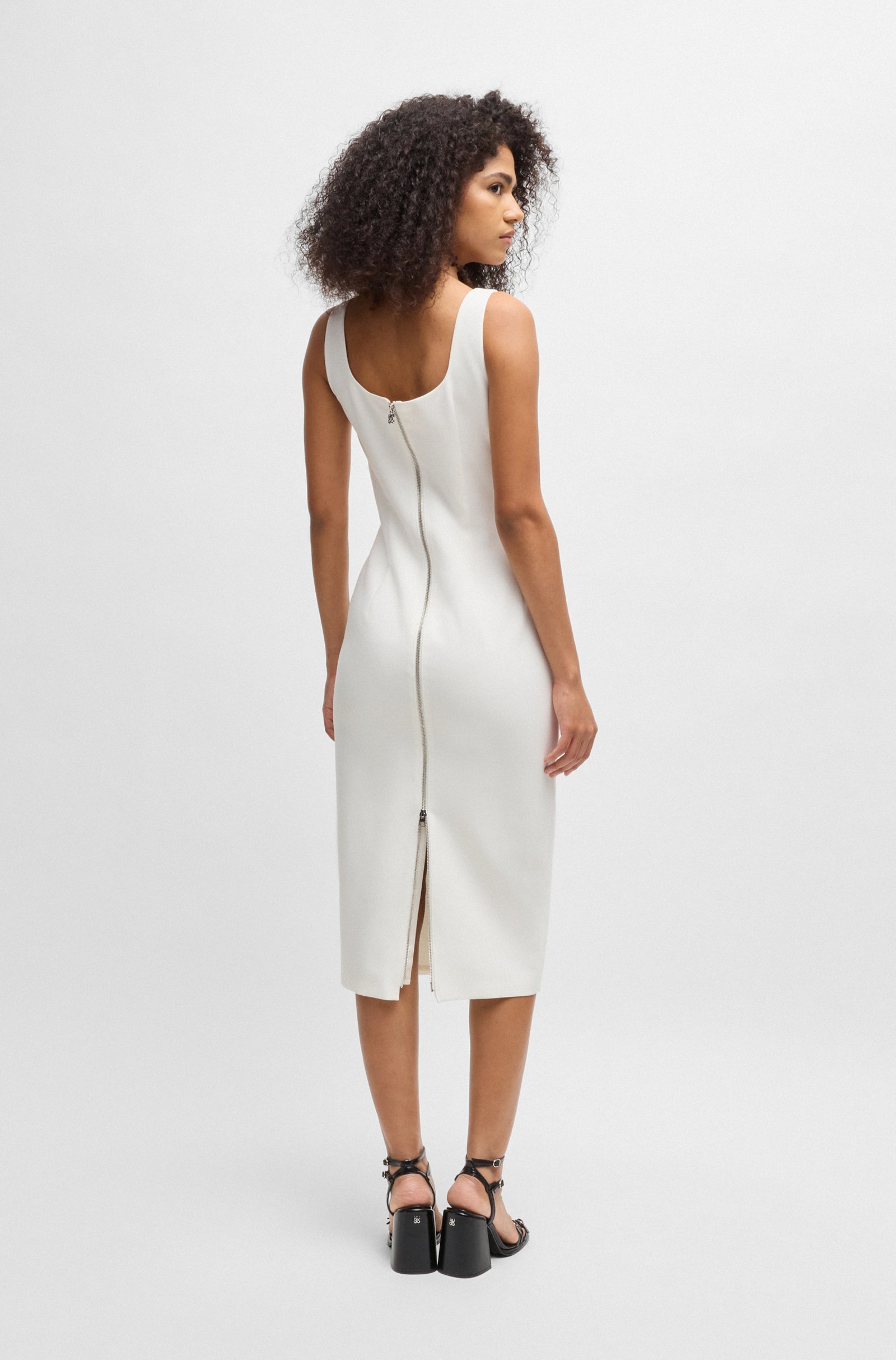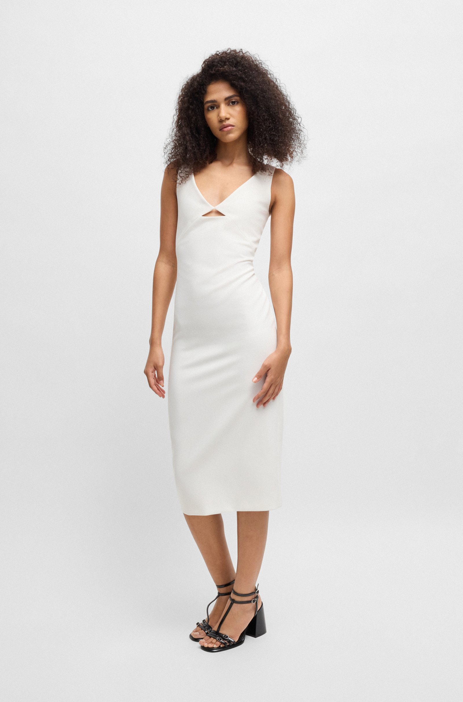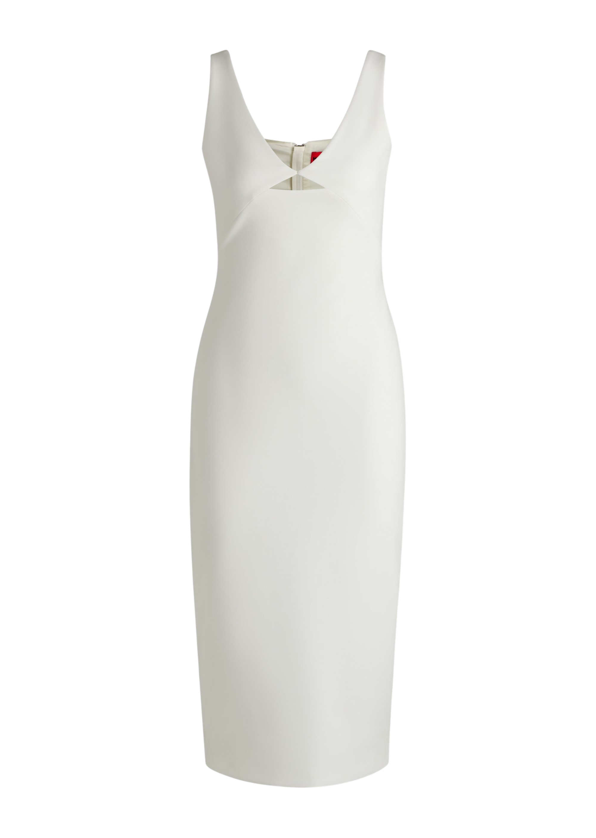 Облегающее платье-миди от HUGO. Модель с молнией сзади. Элегантность придает вырез спереди. Платье очень удобное и создает привлекательный, женственный силуэт.