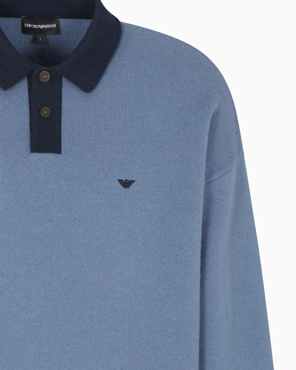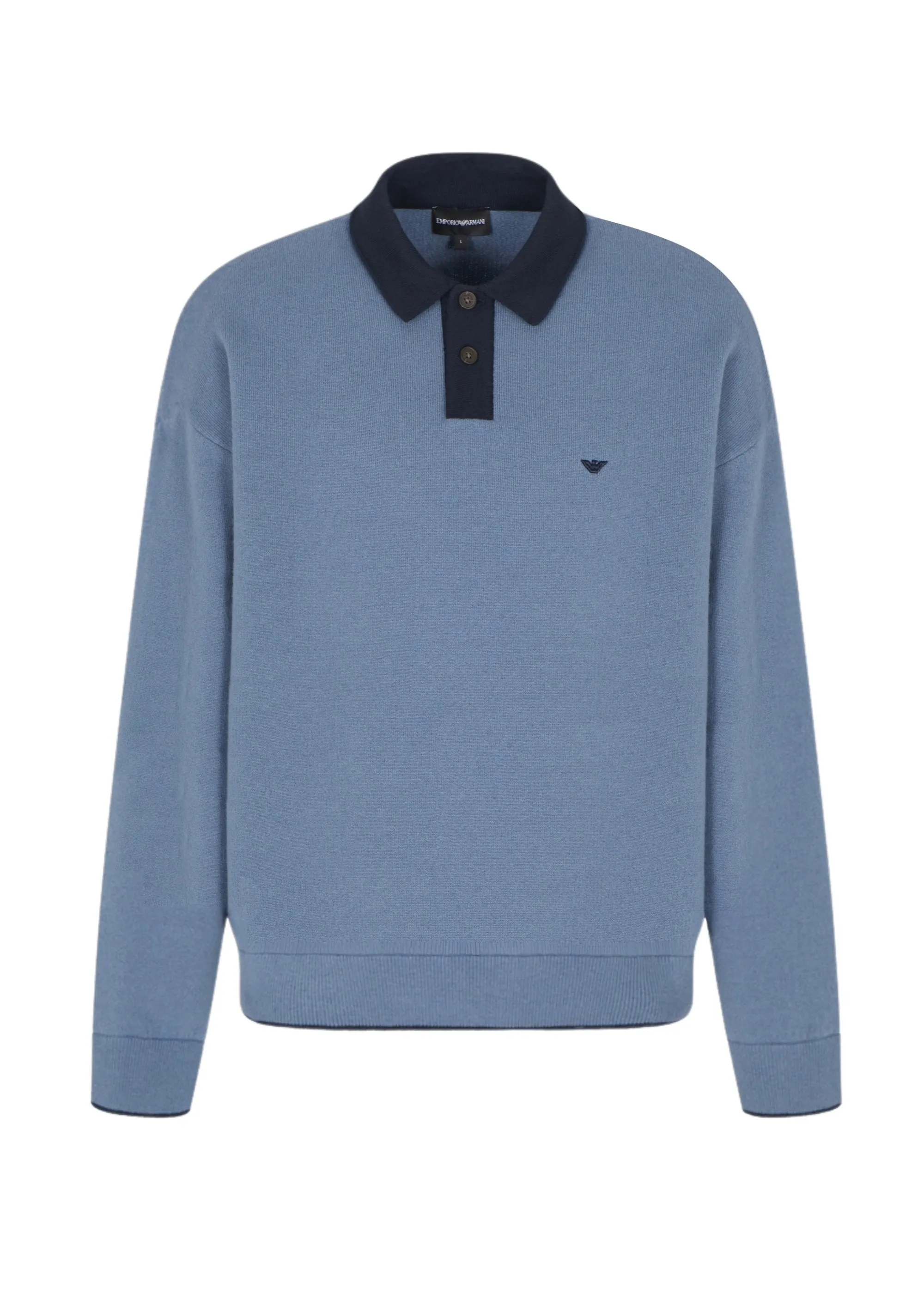 Поло с длинным рукавом Slim Fit для мужчин (480878), цвет Синий купить по цене 18270 грн. | Palmira Fashion