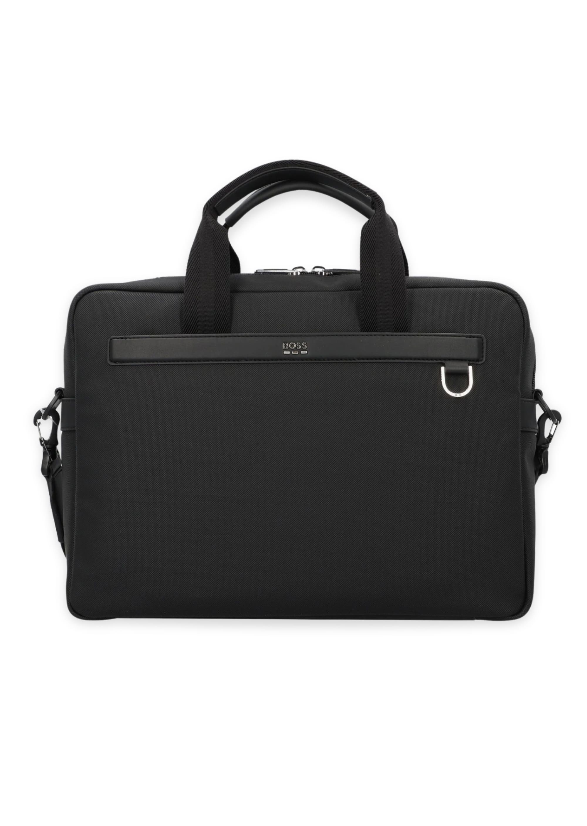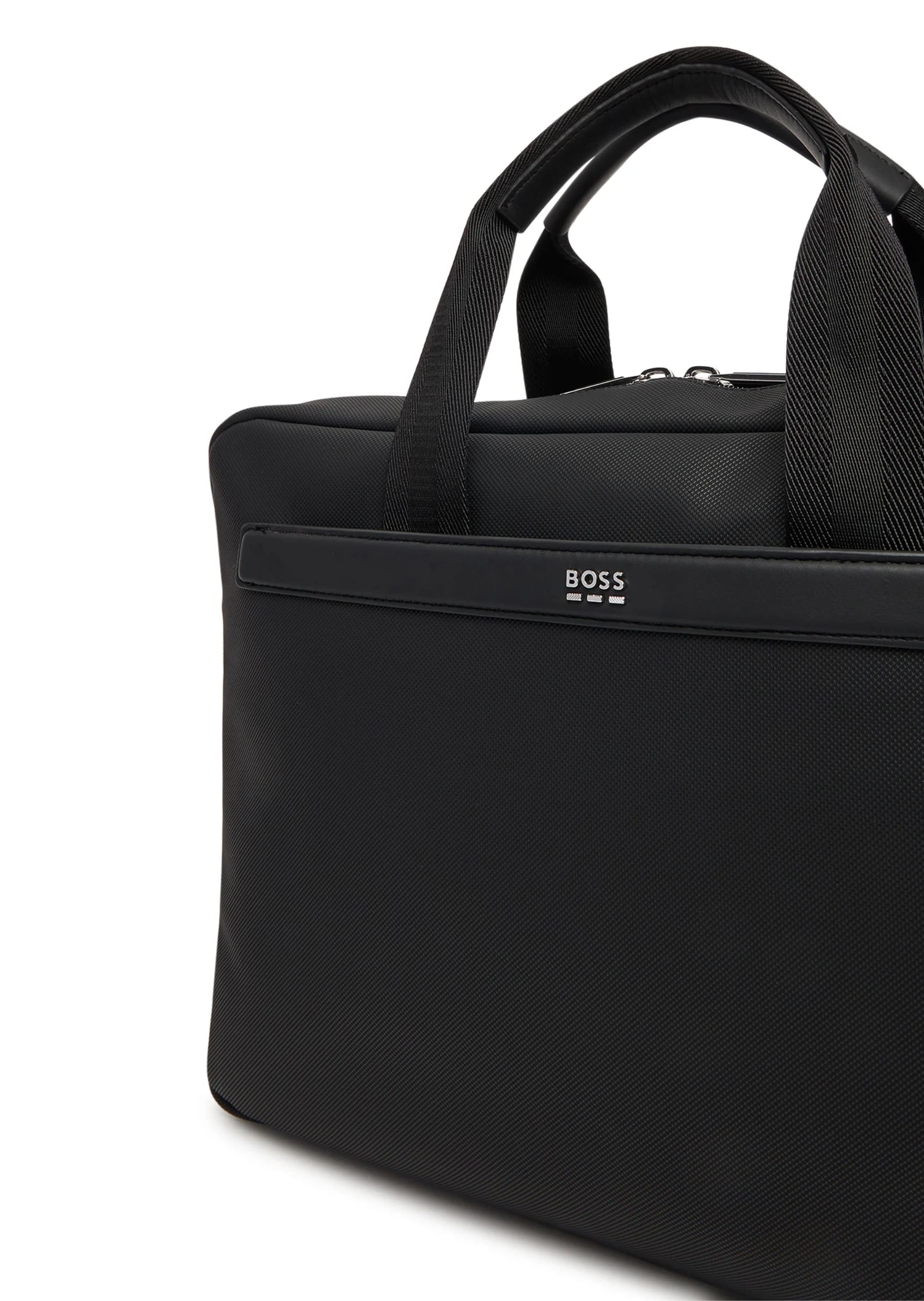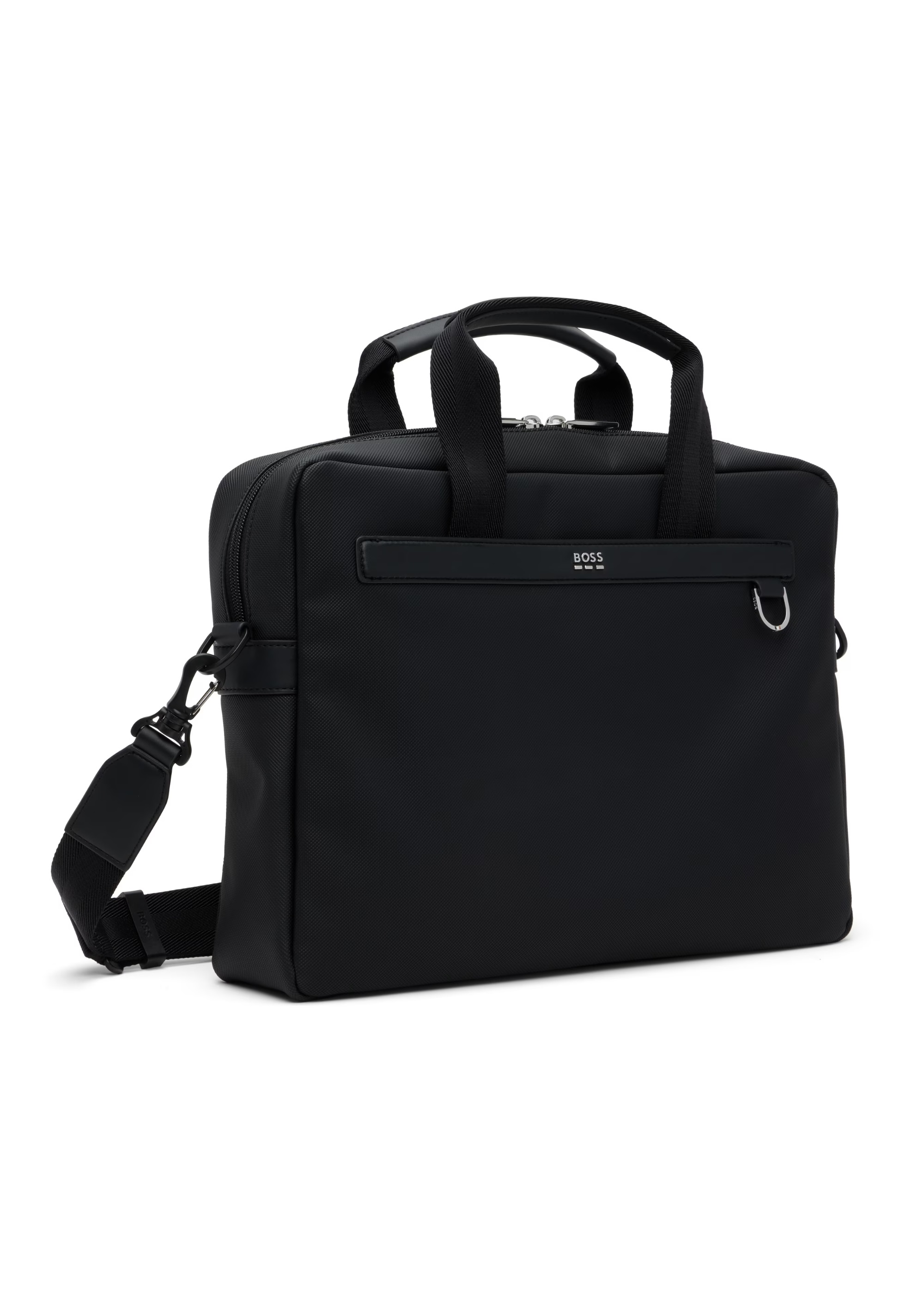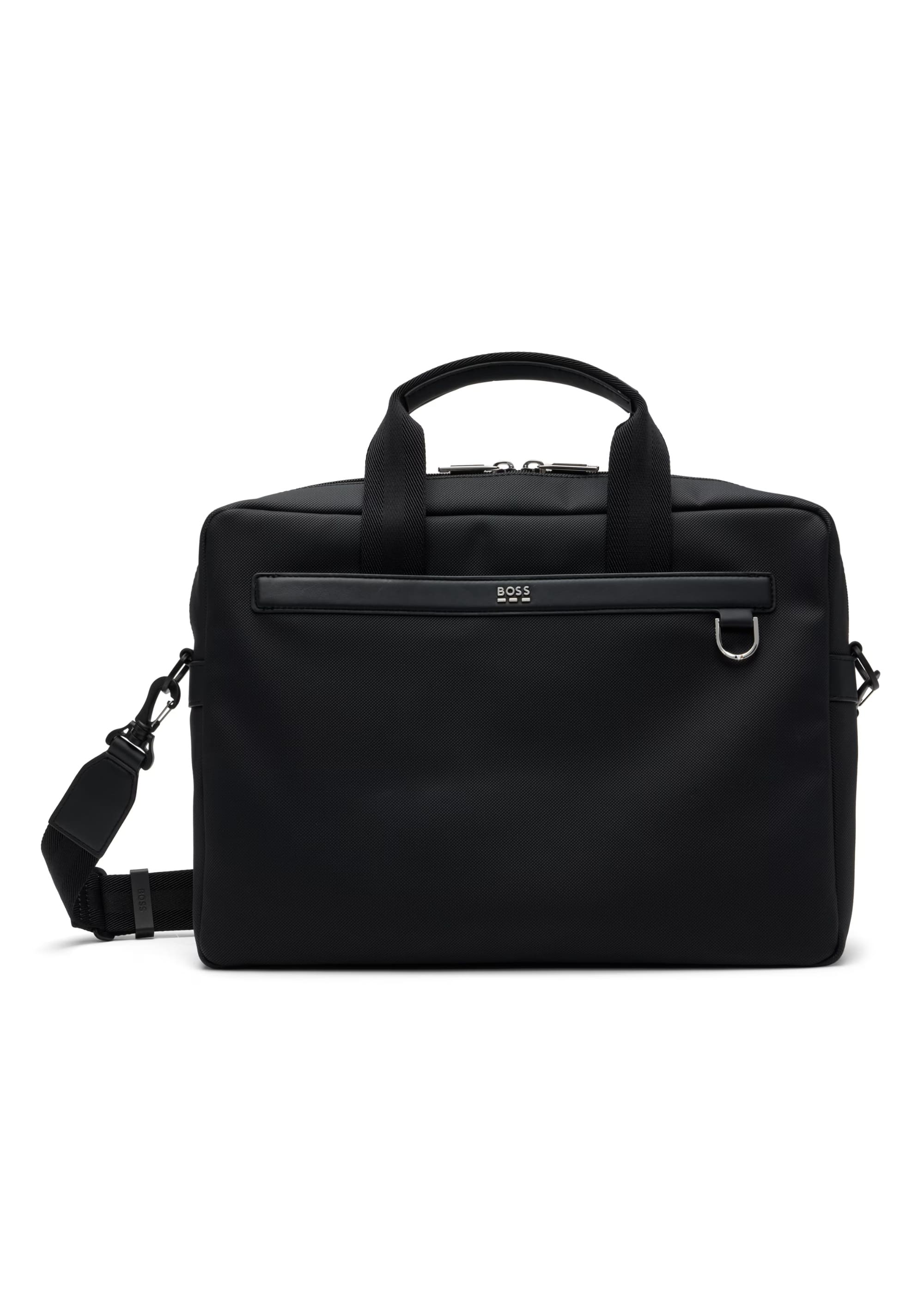 Портфель BOSS выполнен в чёрном цвете из структурированной эко-кожи, объединяющей прочность полиуретана и лёгкость полиэстера. Сдержанный дизайн подчёркивает магнитный карман спереди, заднее отделение на молнии и продуманное внутреннее наполнение — мягкий отсек для ноутбука (до 14), карманы‑органайзеры и защита документов. Элегантные ручки и съёмный регулируемый ремень добавляют универсальности: носится как в руке, так и через плечо. Размеры 40 × 29 × 9 см создают компактный и деловой силуэт. Портфель прекрасно сочетается с костюмами, строгими пальто или полупальто, превращаясь в продуманный акцент офисного гардероба. Эта сумка станет надёжным компаньоном стиля, предлагая мастерство бренда и функциональность.