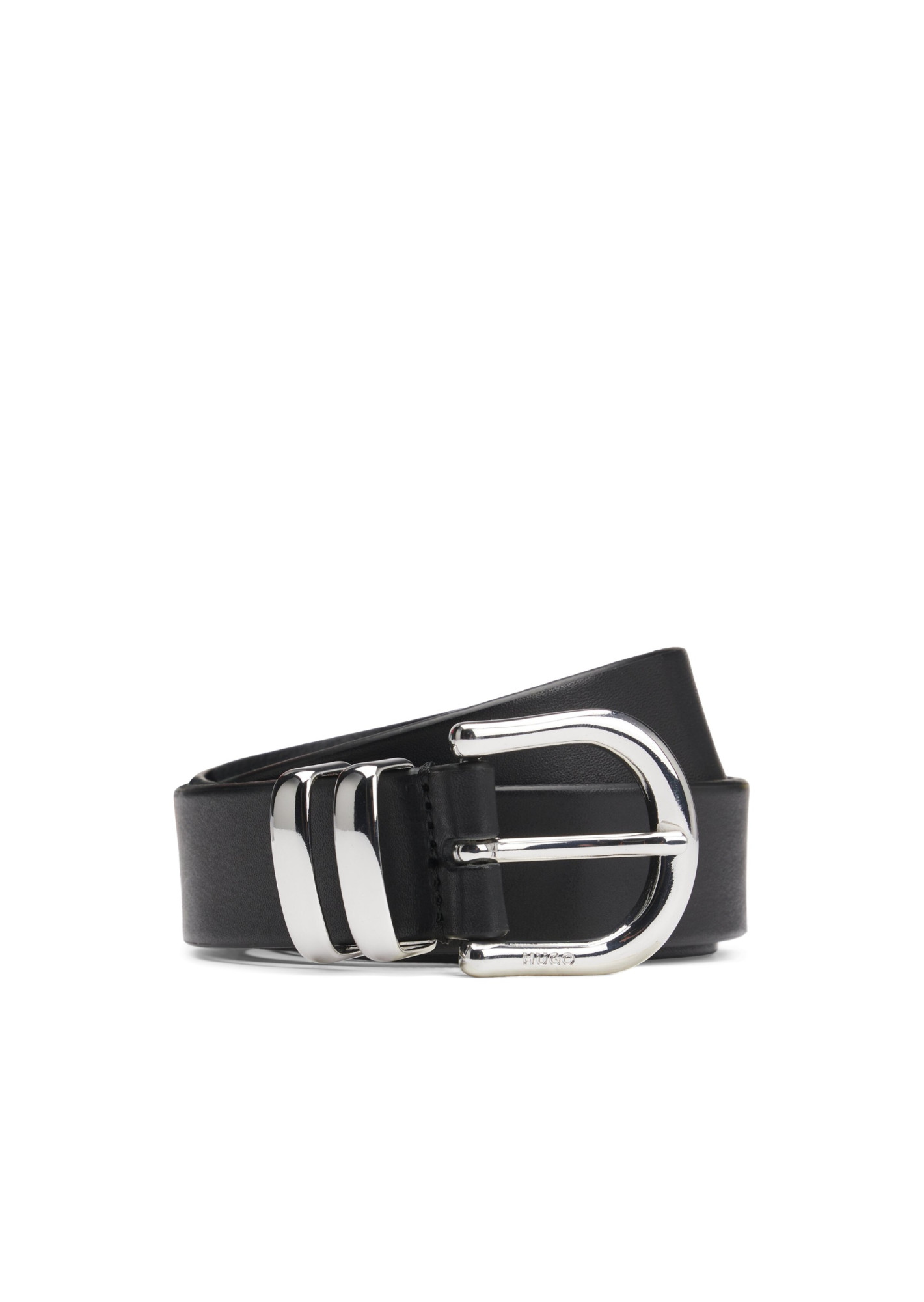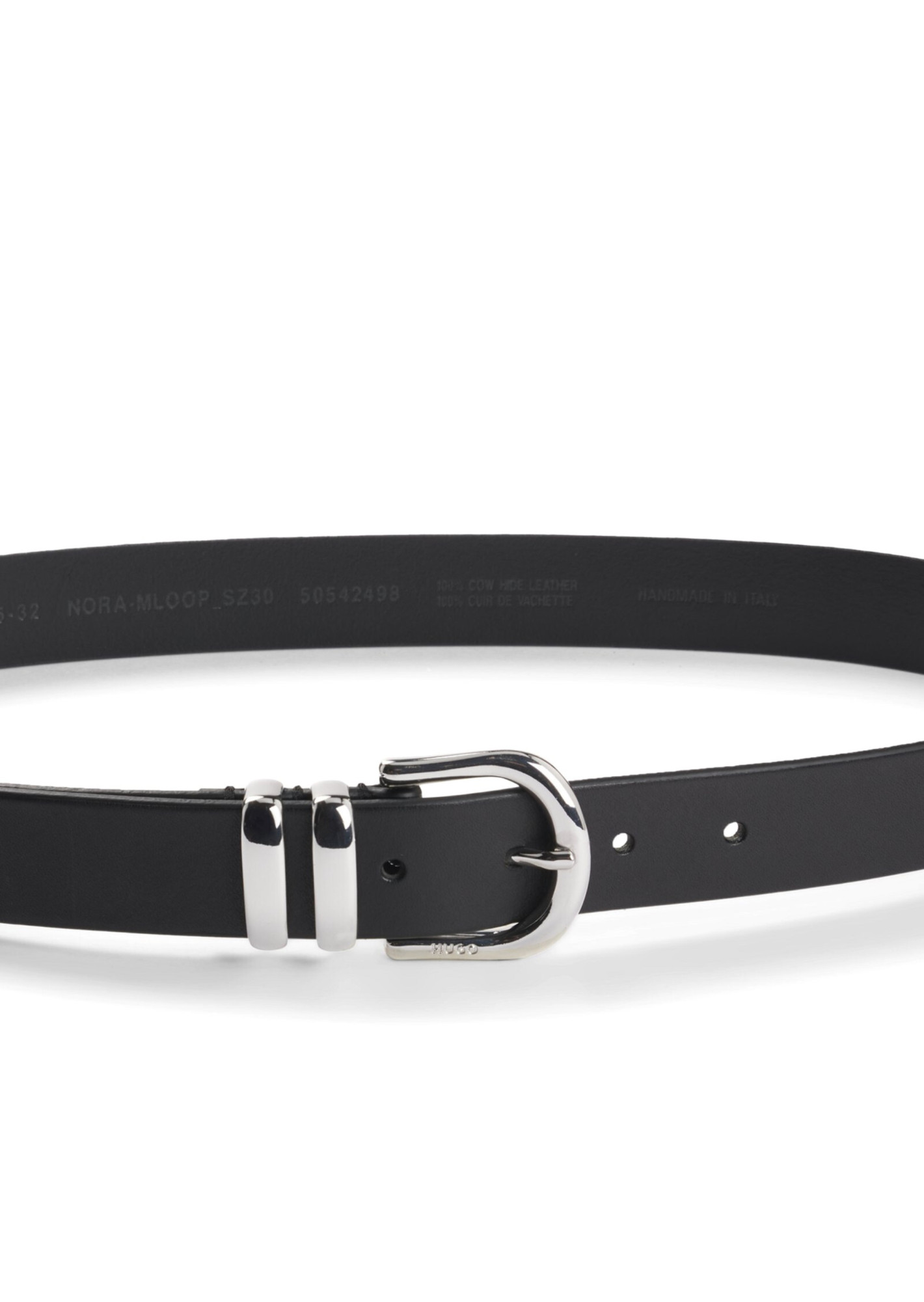Женский ремень HUGO из натуральной кожи. Аксессуар имеет двойной фиксатор и закругленную пряжку. Стильное решение, чтобы подчеркнуть фигуру и придать более утонченный вид образу.