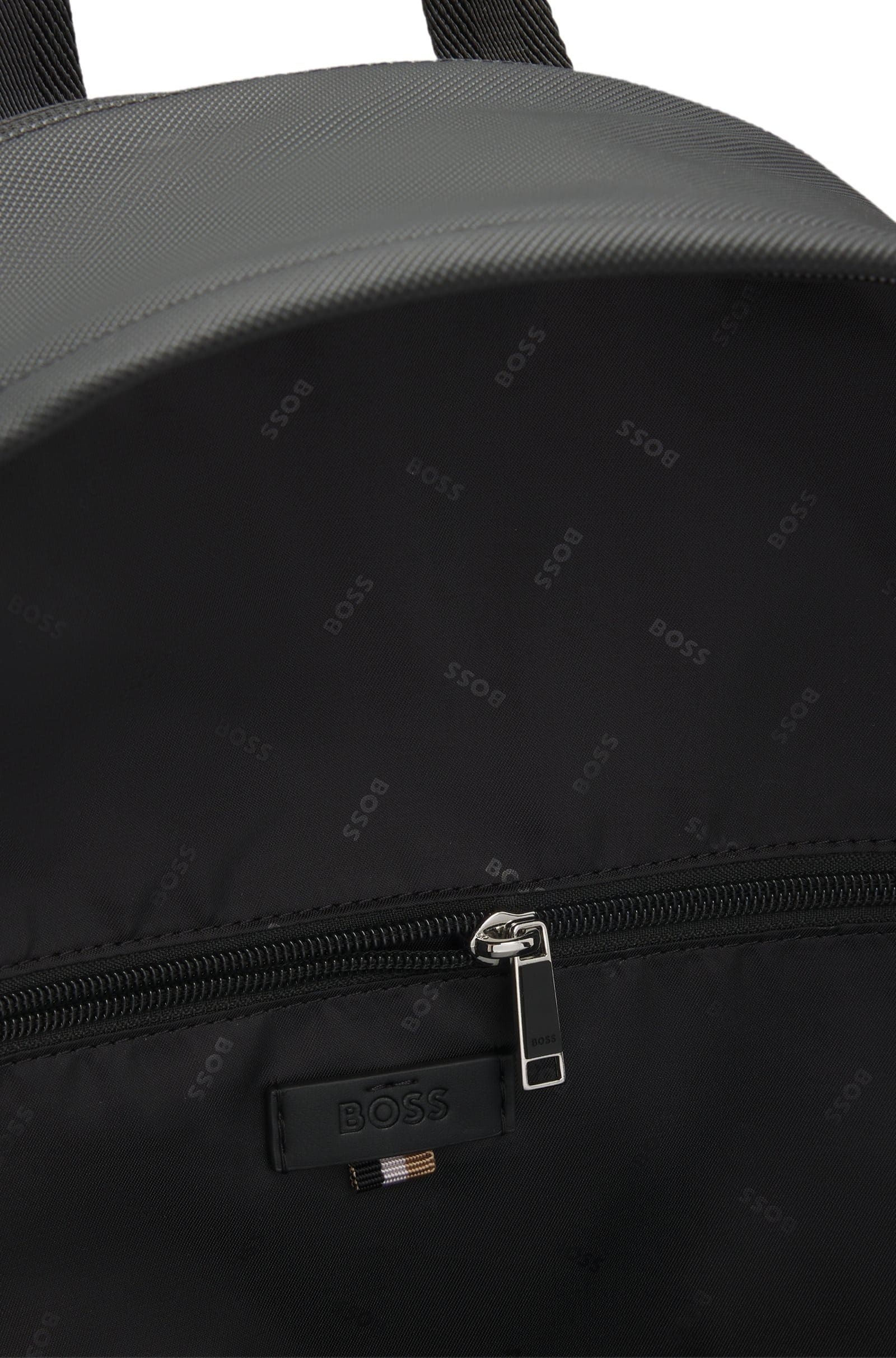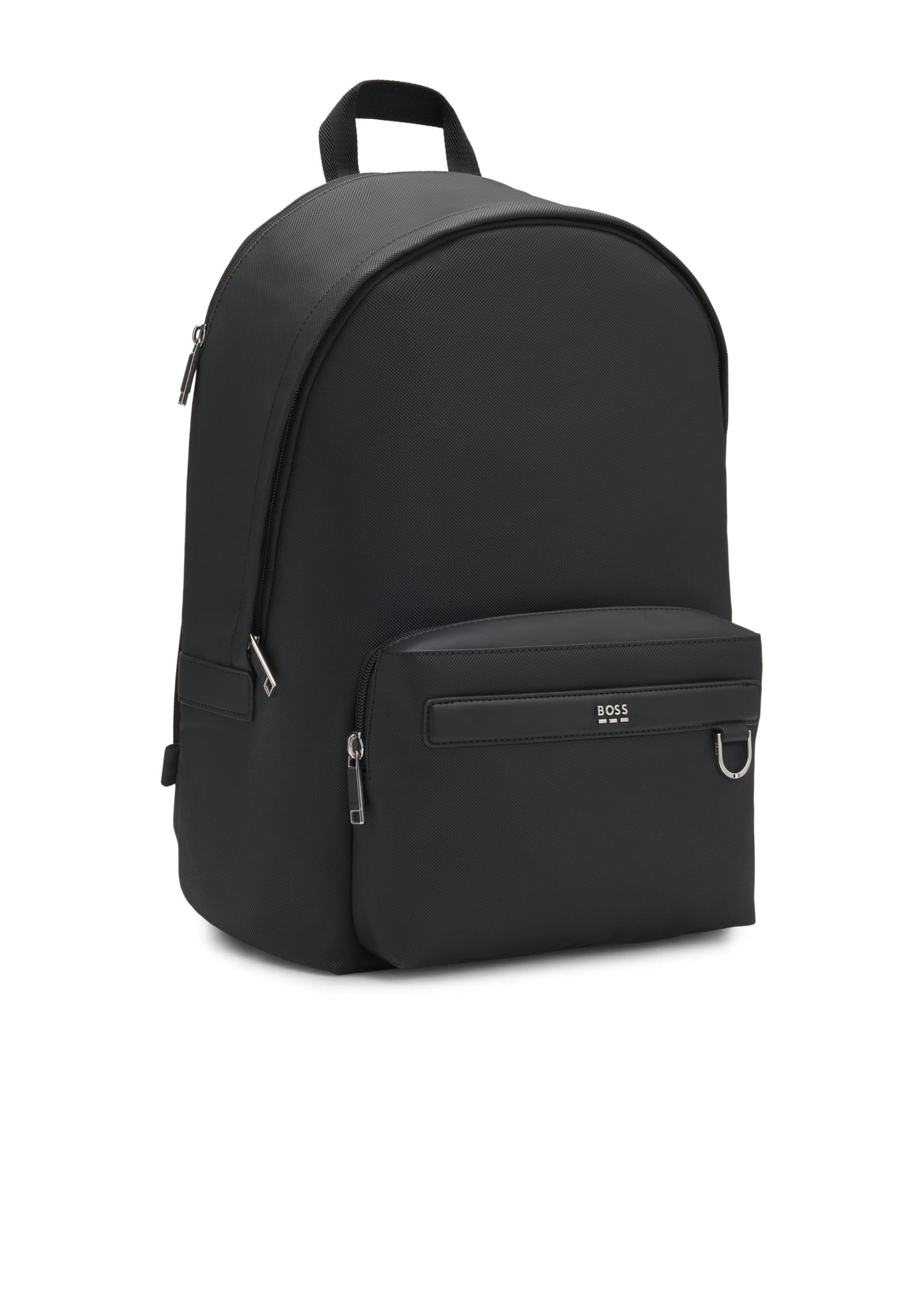 Рюкзак BOSS Menswear в чёрном цвете сочетает современный стиль и функциональность. Выполнен из прочного материала на основе полиуретана и полиэстера с чёткой структурой, он оснащён отделением для ноутбука, обеспечивая безопасность и удобство. Логотип бренда и D-образное кольцо добавляют изысканные акценты, подчёркивающие премиальную эстетику. Этот рюкзак идеально дополняет деловые и повседневные образы, сочетаясь с классическими пальто и стильными куртками. Он станет надёжным и стильным спутником, предлагая баланс практичности и фирменного дизайна.