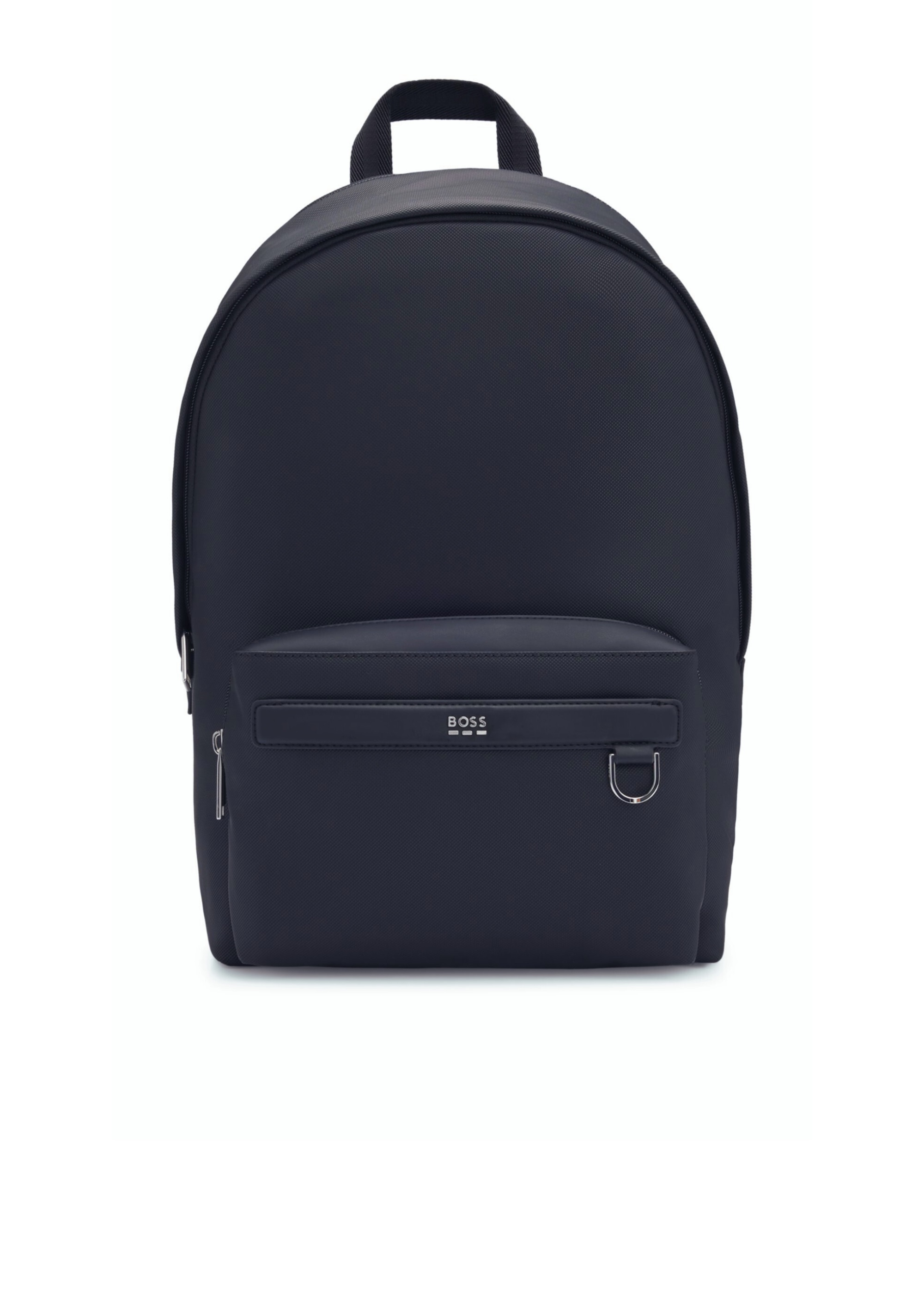 Рюкзак BOSS темно-синего цвета выполнен из полиуретана с сочетанием гладкой и структурированной отделки, что подчёркивает премиальный характер изделия. Вместительное основное отделение на молнии включает внутренний карман на молнии и открытый карман для мелочей, а внешний карман на молнии обеспечивает быстрый доступ к необходимым вещам. Регулируемые плечевые ремни и верхняя ручка создают удобство в использовании и комфорте ношения. Гармонично сочетается с повседневной и деловой одеждой, добавляя образу современную функциональность. Универсальное решение, объединяющее практичность и изысканный дизайн.