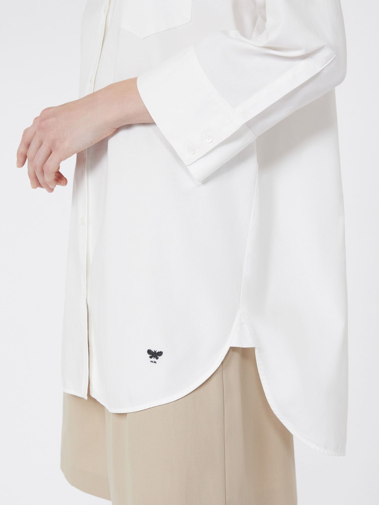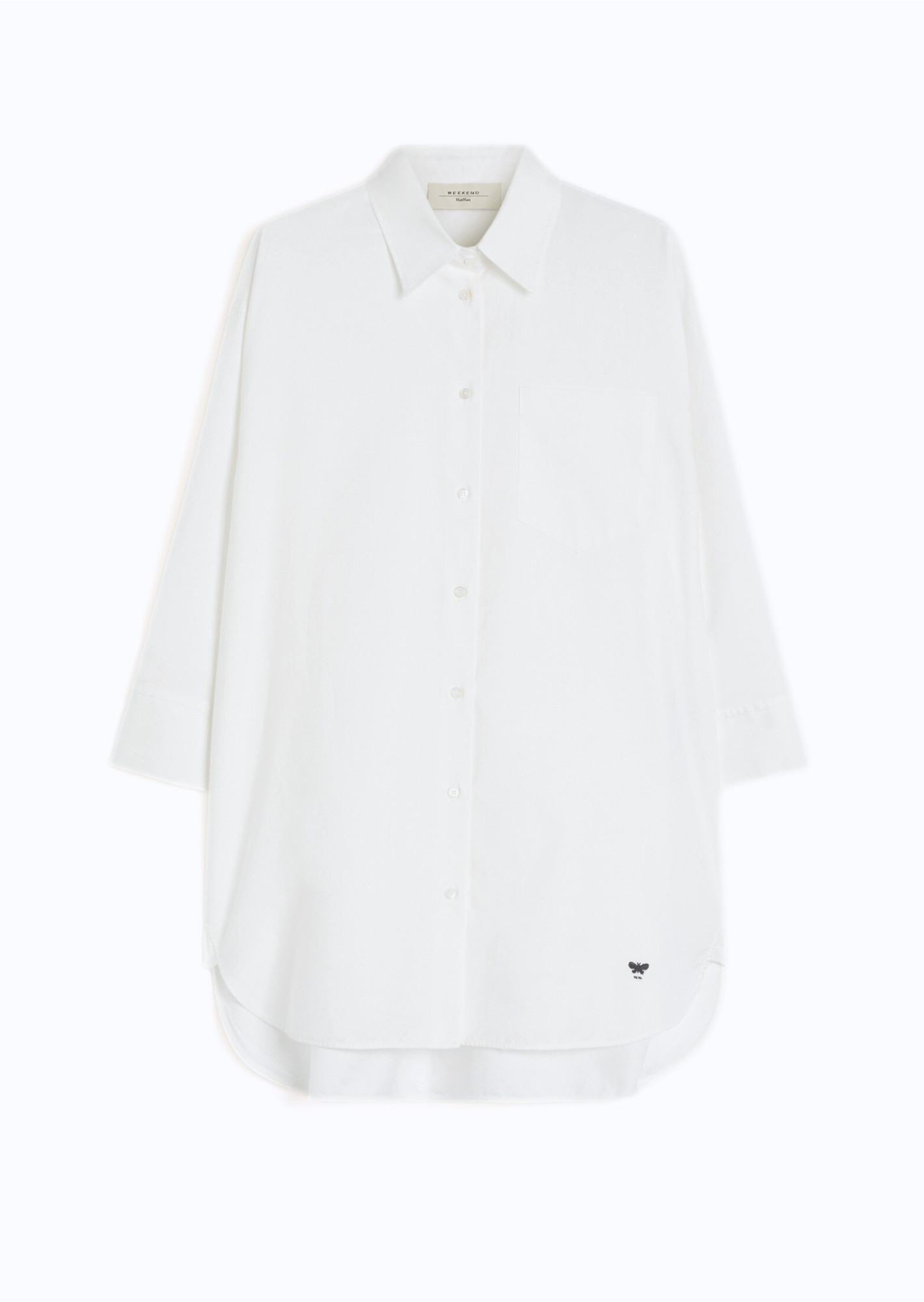 Рубашка Max Mara Weekend в белом цвете из 100% хлопка. Модель прямого кроя с классическим воротником и длинными рукавами на манжетах. Чистый силуэт и натуральный материал подчёркивают лёгкость и универсальность. Сочетается с костюмными брюками, джинсами, жилетами и юбками. Базовая рубашка для многослойных образов в деловом и повседневном стиле.