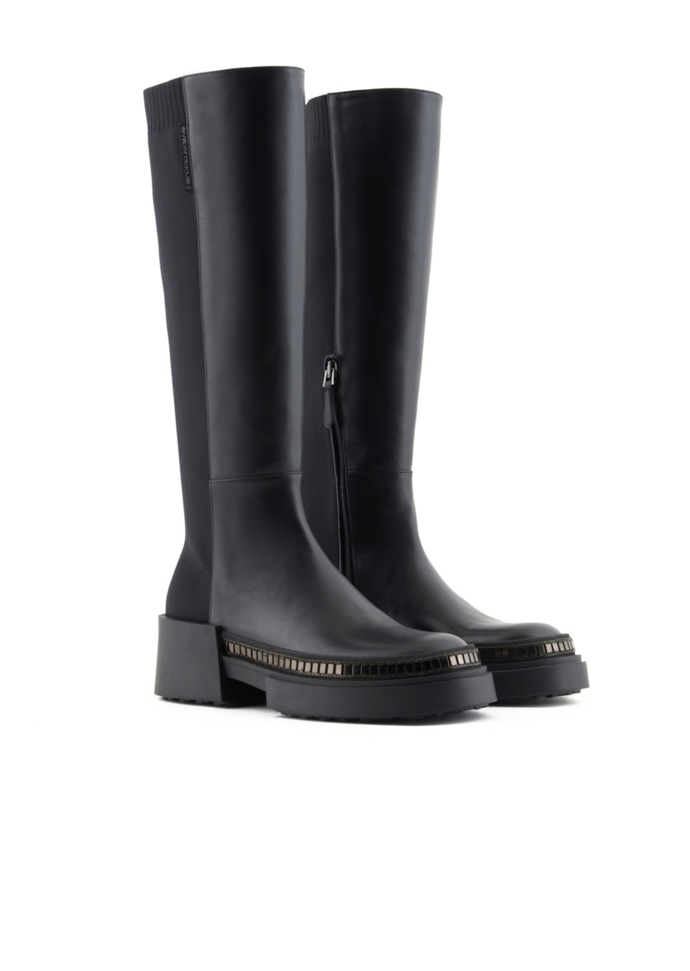 Сапоги из коллекции Emporio Armani. Модель выполнена из натуральной кожи, застегиваются на молнию, имеют круглый, уплотненный носок. Жесткий задник обеспечивает отличную поддержку лодыжки и пятки, резиновая подошва, удобная внутренняя часть.