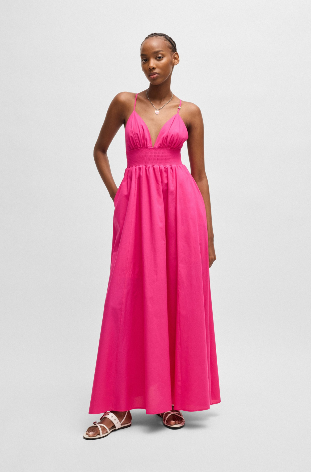 Сарафан кораллового цвета выполнен из лёгкой и приятной к телу ткани, обеспечивающей комфорт в жаркую погоду. Свободный крой создаёт эффект воздушности и подчеркивает женственность силуэта. Изделие украшено аккуратными деталями, которые добавляют изысканности образу. Отлично сочетается с легкой обувью и аксессуарами в натуральных оттенках. Идеальный выбор для летних прогулок и повседневного стиля.