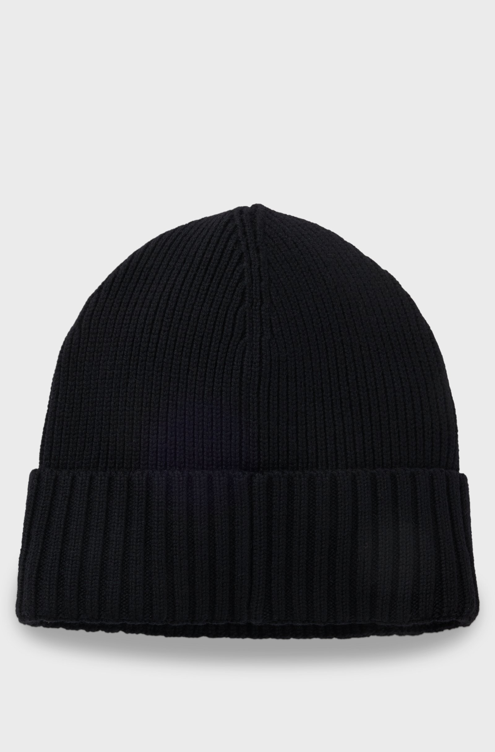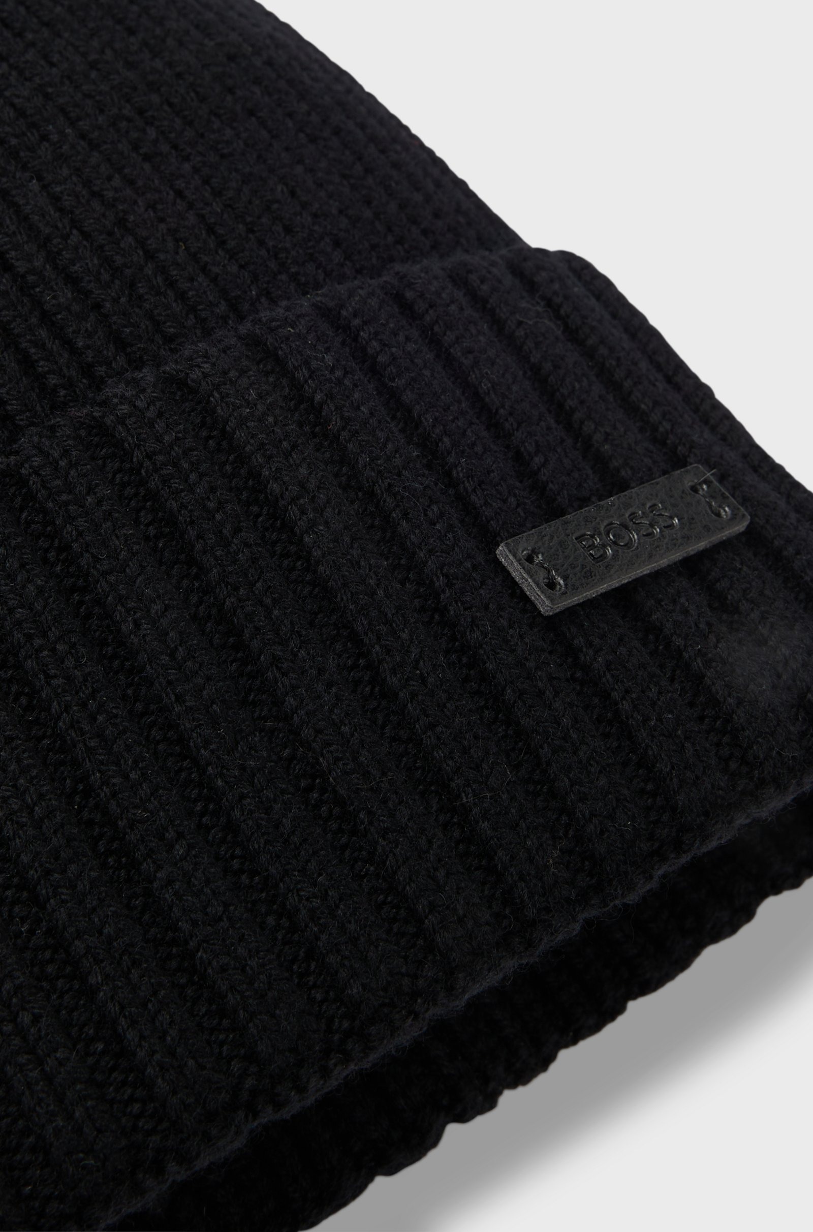 Шапка-beanie BOSS чёрного цвета выполнена из мягкой шерсти (virgin wool) с выразительной резинкой, создающей премиальный фактурный акцент. Лаконичный логотип-плашка из искусственной кожи подчёркивает принадлежность к бренду. Натуральная шерсть надёжно удерживает тепло и дарит комфорт в холодную погоду. Универсальный дизайн легко сочетается с классическим пальто или пуховиком BOSS. Шапка придаёт образу завершённость и современную элегантность.