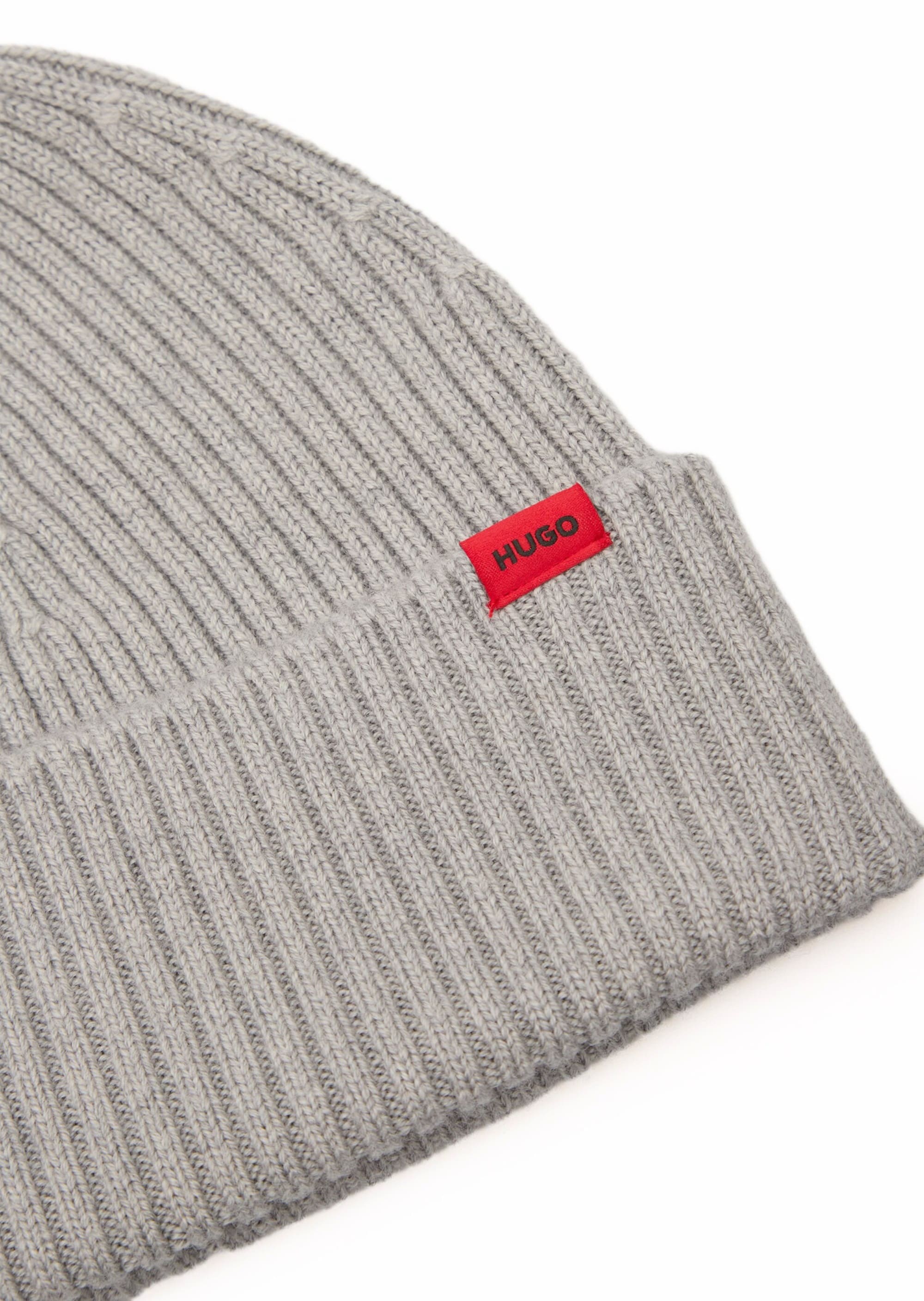 Шапка-бини HUGO в оттенке темно-серого выполнена из virgin wool, что придаёт ткани тепло и мягкость. Рёбристое вязание формирует плотную фактуру, а фирменный красный логотип усиливает узнаваемость. Модель сочетается с куртками, пальто или повседневным верхом, служит акцентом базового гардероба в прохладную погоду.