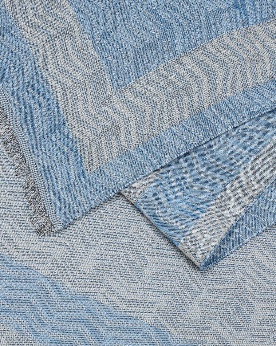 Палантин изготовлен из смеси модала и хлопка. Шарф с жаккардовым абстрактным мотивом на всей площади аксессуара. Также изделие украшено бахромой на краях. Изысканный элемент гардероба завершит стильный образ и придаст ему роскошь.