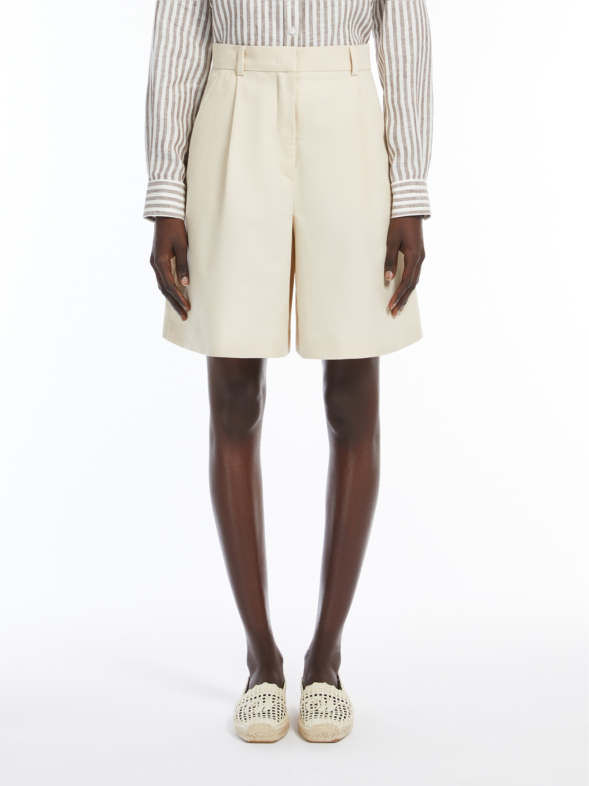 Бежевые шорты Weekend Max Mara выполнены из мягкого хлопкового материала с добавлением эластана, что обеспечивает комфорт при движении. Прямой крой, средняя посадка и длина до середины бедра формируют лаконичный силуэт. Изделие оснащено шлёвками для ремня, застёжкой на молнию и пуговицу, а также косыми карманами спереди. Шорты сочетаются с базовыми футболками, лёгкими рубашками или трикотажными топами. Оптимальный выбор для создания непринуждённых летних образов.