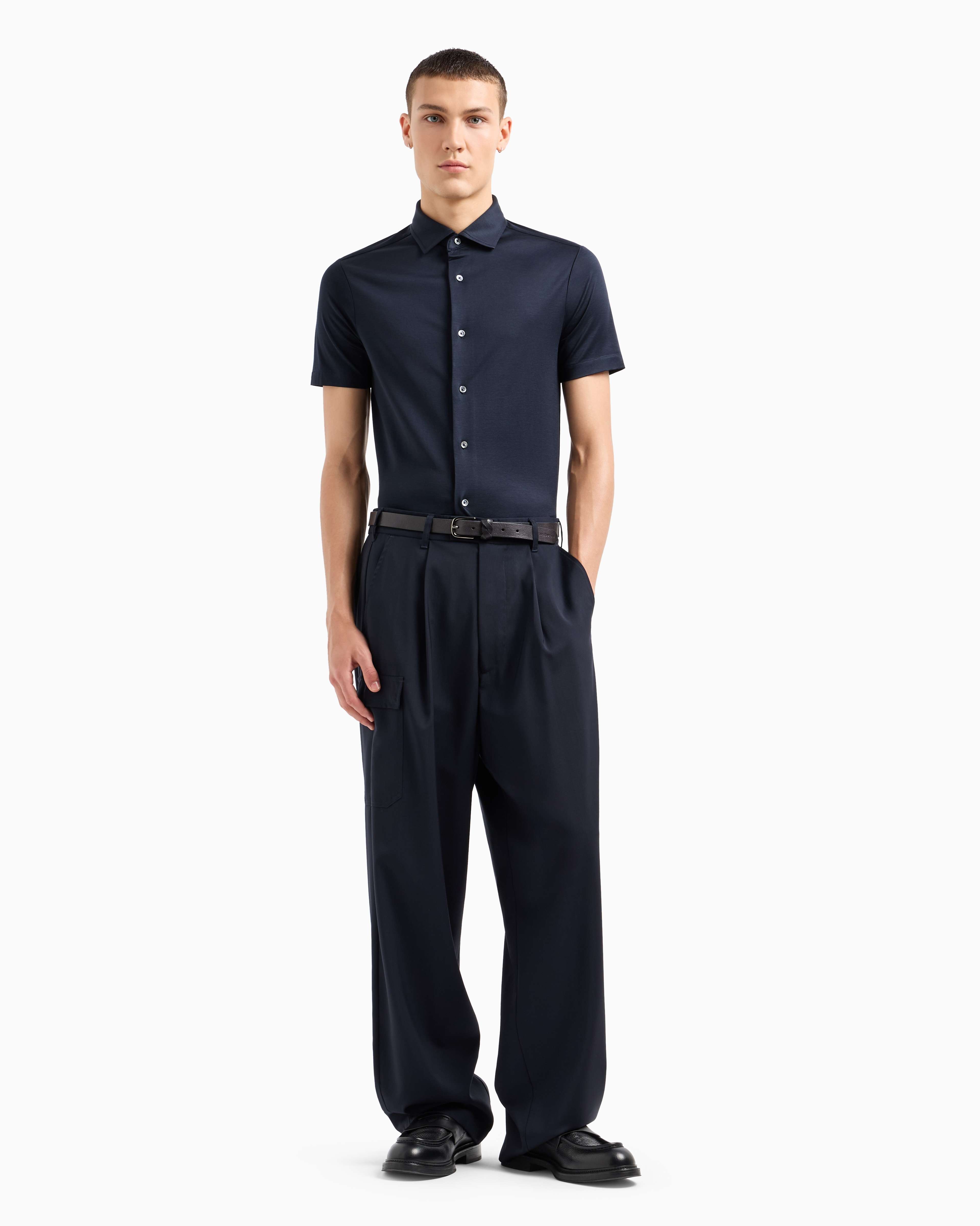 Сорочка повседневная с коротким рукавом Slim Fit для мужчин (478934), цвет Синий купить по цене 5095 грн. | Palmira Fashion