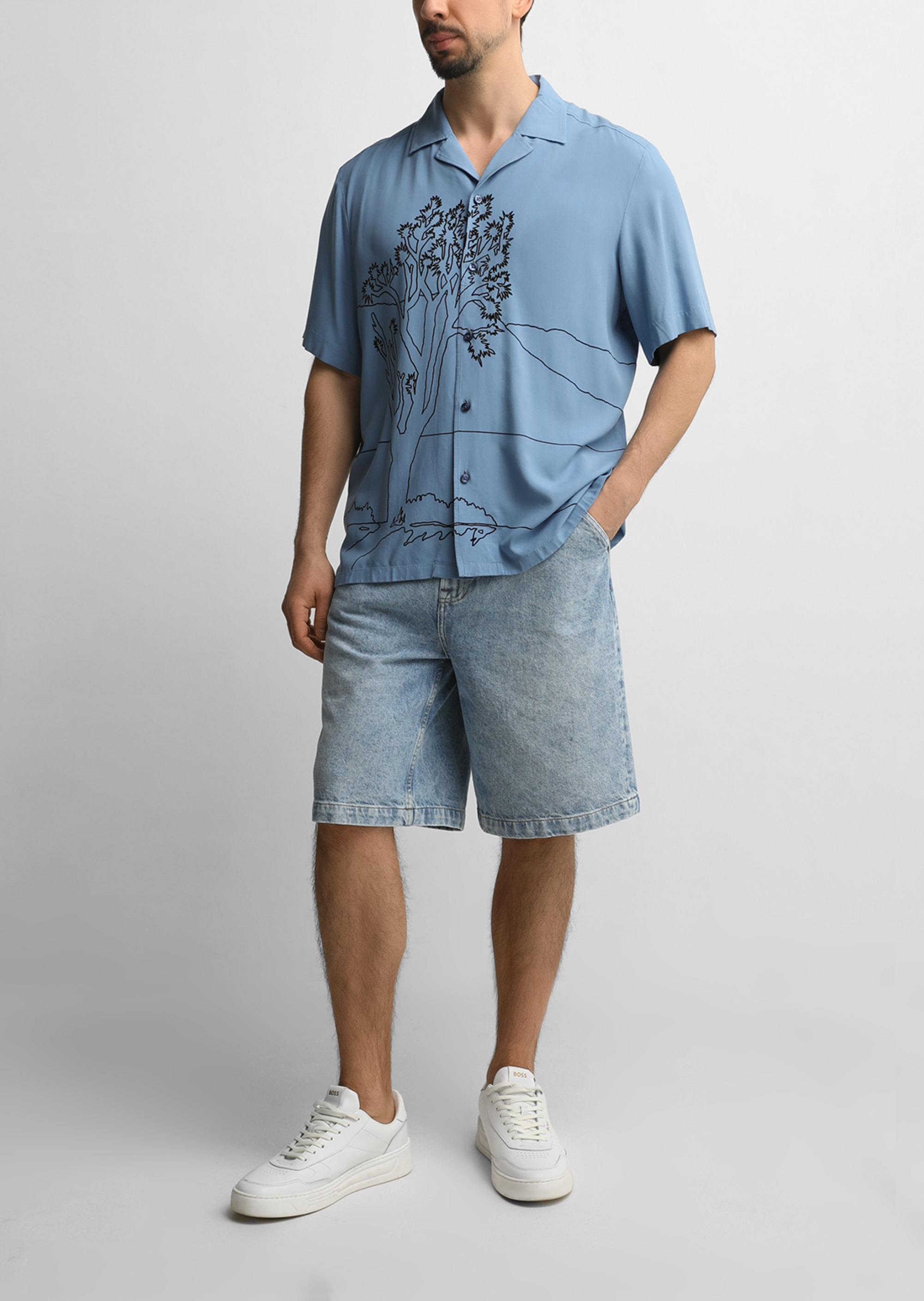 Сорочка повседневная с коротким рукавом Regular Fit для мужчин (479583), цвет Синий купить по цене 3355 грн. | Palmira Fashion
