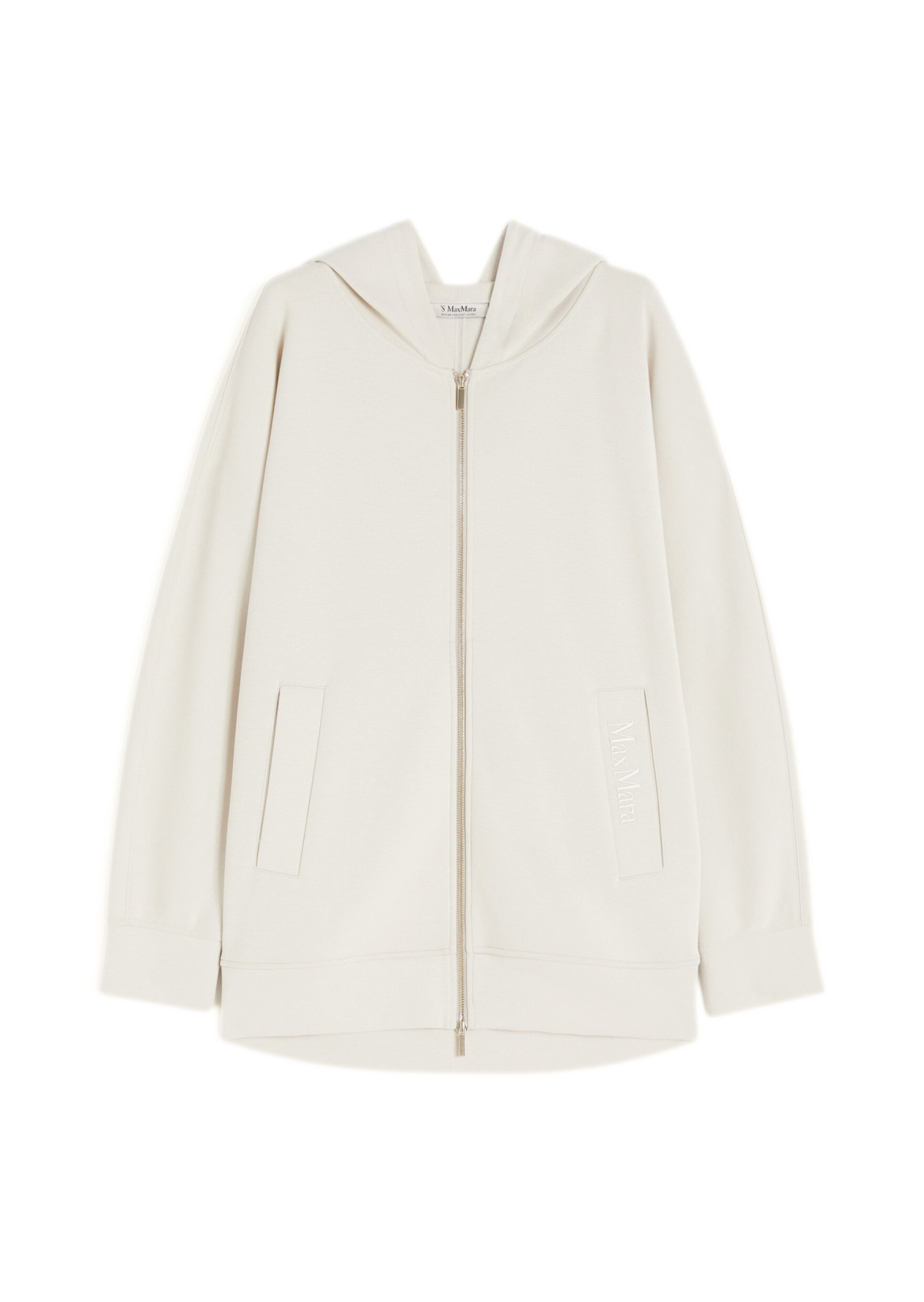 Спортивная кофта Max Mara S из хлопка и полиэстера в молочном оттенке. Прямой крой, мягкий трикотаж, длинные рукава создают комфортную посадку и чистый силуэт. Сочетается с джоггерами, леггинсами, джинсами и спортивной обувью. Универсальный элемент базового гардероба — подойдёт для прогулок, отдыха и динамичных образов в стиле casual.