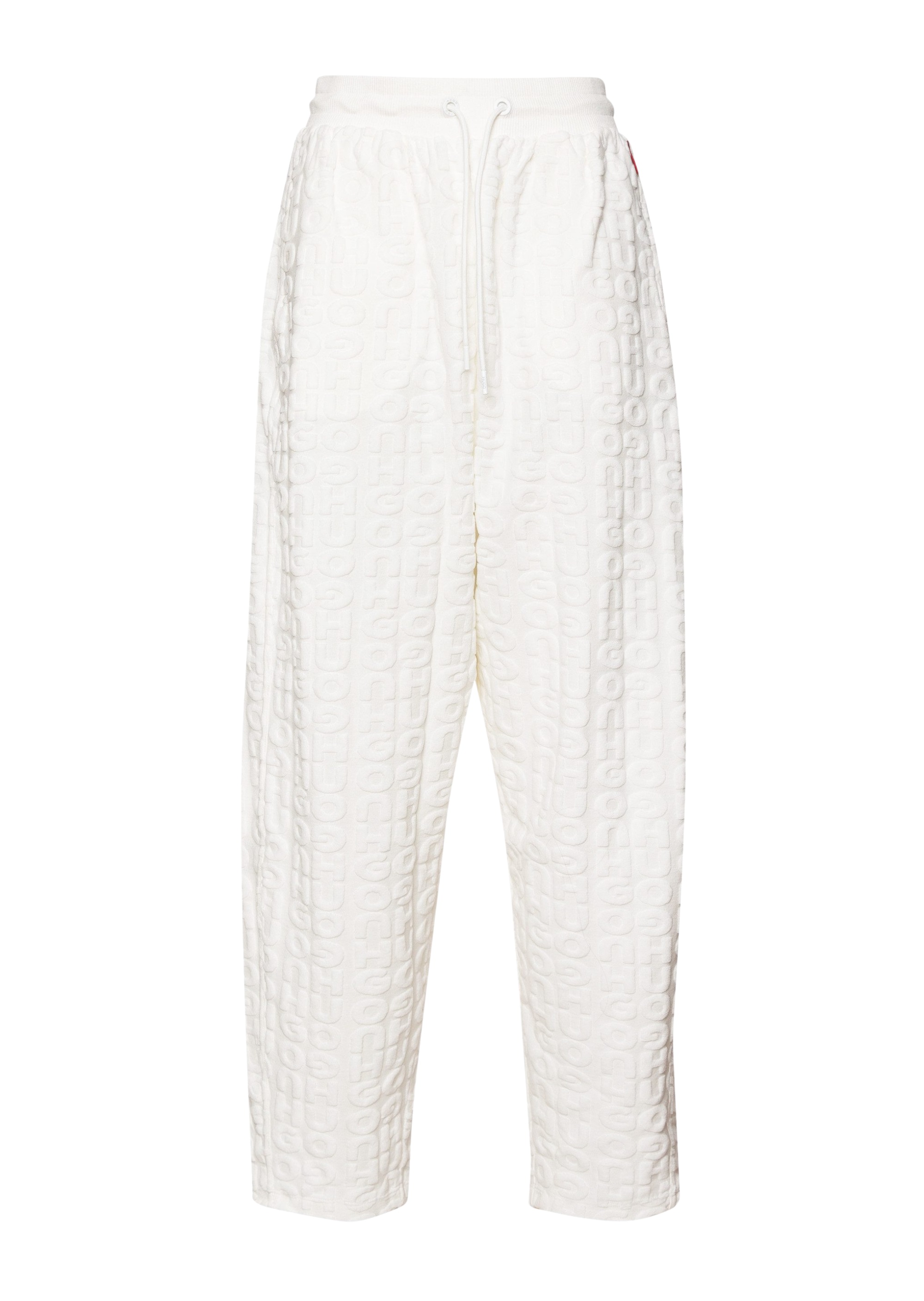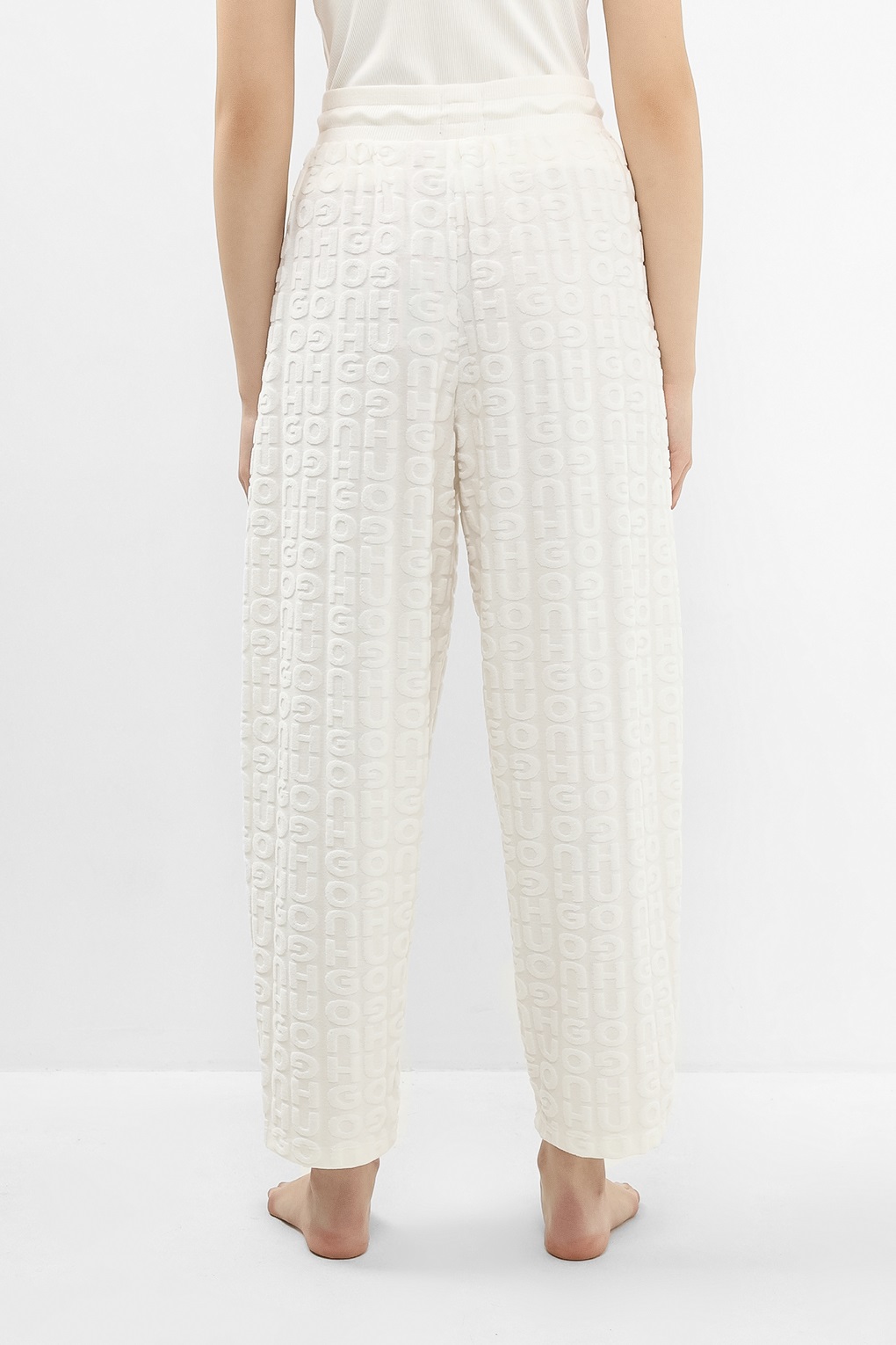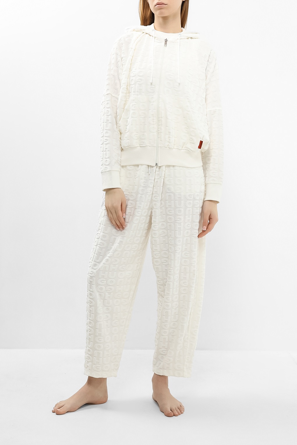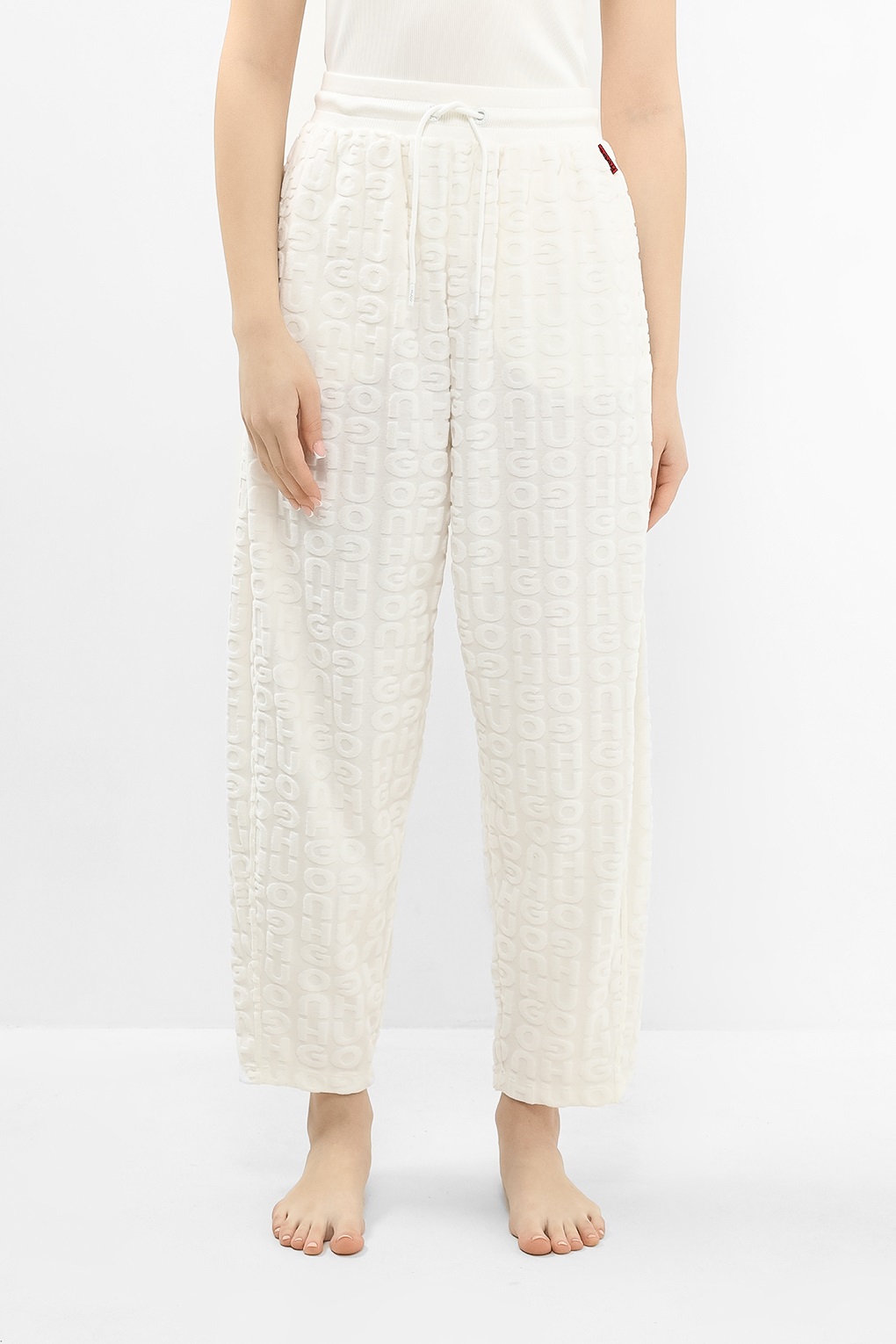 Домашние брюки женские от HUGO Womenswear свободного кроя с логотипом бренда. Изготовлены из мягкого хлопкового трикотажа, имеют эластичный пояс, который регулируется шнурком.