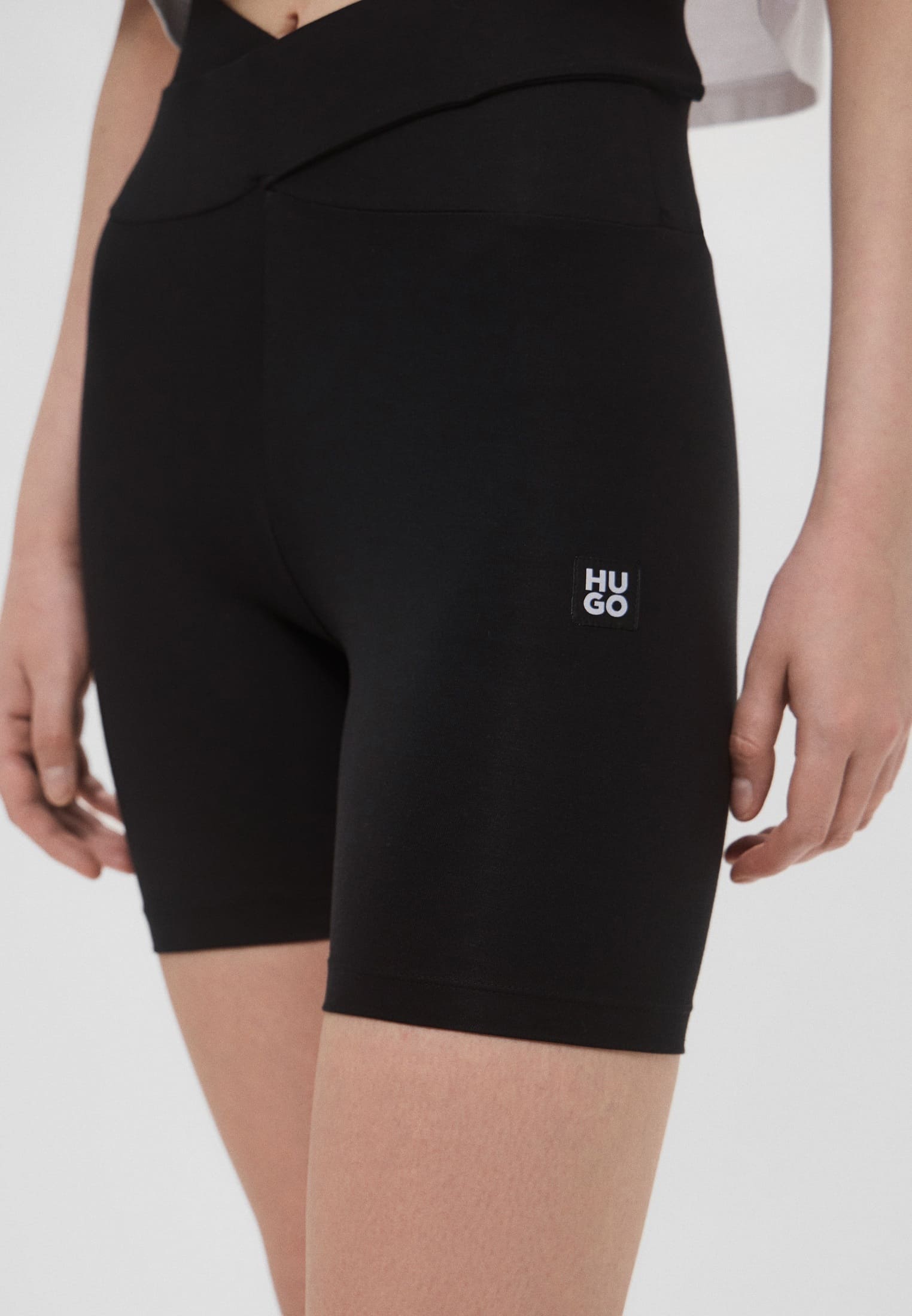 Домашние шорты HUGO — это женские шорты, выполненные из эластичного хлопкового материала, обеспечивающего комфорт и свободу движений. Черный цвет придает изделию универсальность и стильный вид. Шорты имеют узкий крой, подчеркивающий фигуру, и эластичный пояс для удобной посадки. Они идеально подходят для домашнего использования или активного отдыха.